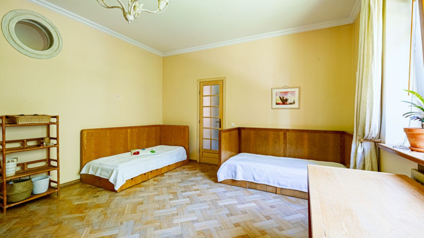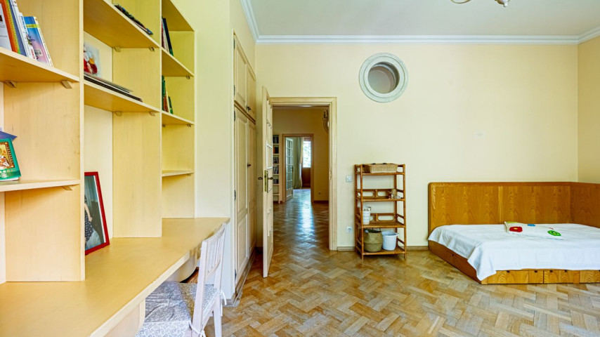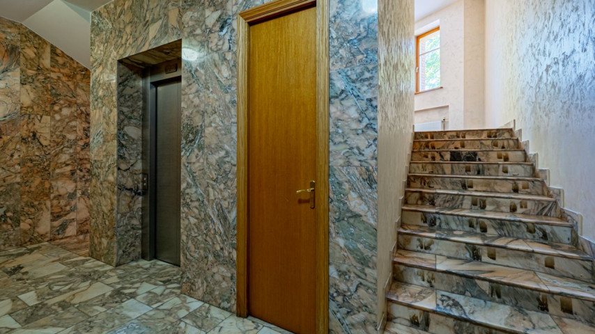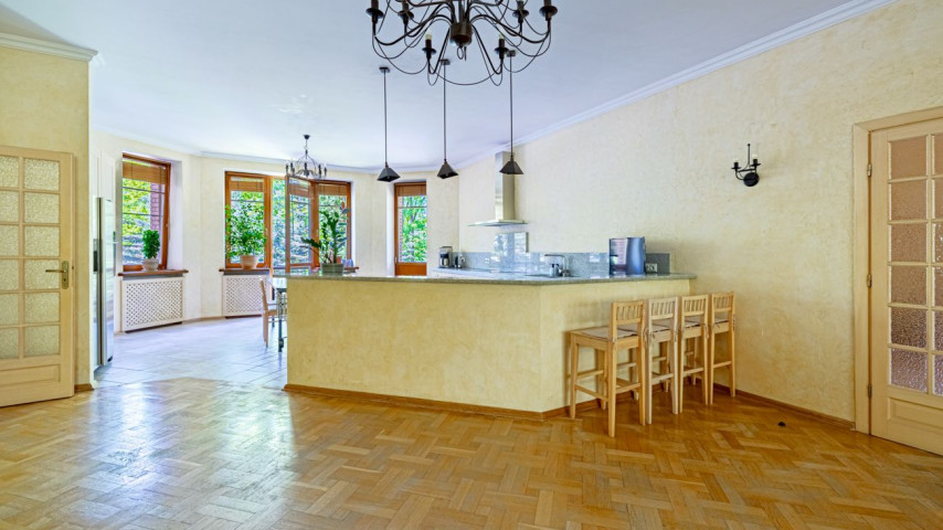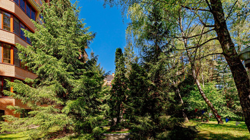 Светлая просторная квартира на половину этажа, окна на сосны на 3 стороны. Планировка: холл с окном, просторная гостиная с камином и 3 эркерами на восток и запад, превосходное освещение в квартире в течение всего дня, обеденной и кухонной зонами и зимним садом, 3 спальни, 3 ванные комнаты (две c окнами), игровая, сауна, постирочная. Возможна несложная перепланировка с добавлением еще 2-3 комнат. Высота потолков 3,3 м. Теплые полы.