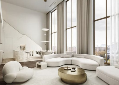 Самый большой пентхаус в «Тессинском, 1», площадью 442 кв.м с потолками 7,1 м и окнами 6,6 м многим отличается от обычной квартиры: