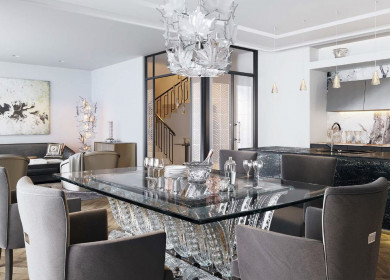 В ЖК Кuznetsky Most 12 by Lalique различные изделия бренда встречаются на каждом шагу. Хрустальные изделия использованы в оформлении лобби, лестничных пролетов, лифтов, холлов и входных групп. В квартирах ими украшены ванные. Витражи, мебель и арт-объекты бренда, расположенные в апартаментах, выполнены в стиле ар-деко и ар-нуво. Многие изделия Lalique создала эксклюзивно для этого жилого комплекса. Повышенное внимание уделяется свету – хрустальные элементы дизайна отражают свет, создавая оригинальные оптические эффекты. При взгляде с другого ракурса или при изменении освещения меняется и образ предмета, что создает ощущение фантастического мира, сосредоточенного в хрустале.