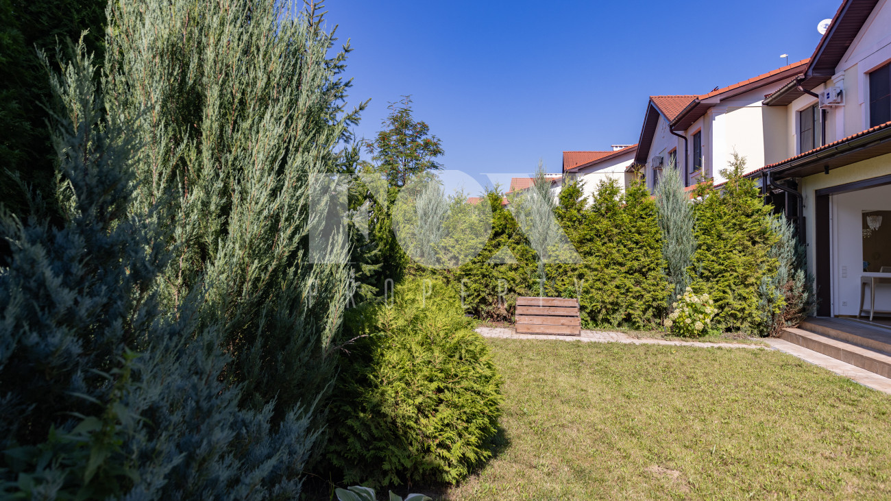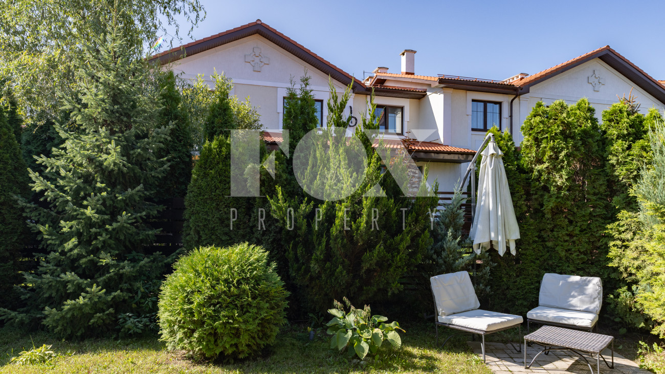 Сердцем дома стала просторная гостиная с камином, объединённая единым пространством с кухней-столовой с удобным островом. Кроме того, планировка включает 3 уютные спальни и вместительные гардеробные. Оставить машину можно на открытой парковке. На приватном участке засеян аккуратный газон, вымощены дорожки, высажены деревья, кустарники и цветы, а благодаря уличной подсветке вечерние посиделки у зоны отдыха станут еще более романтичными.