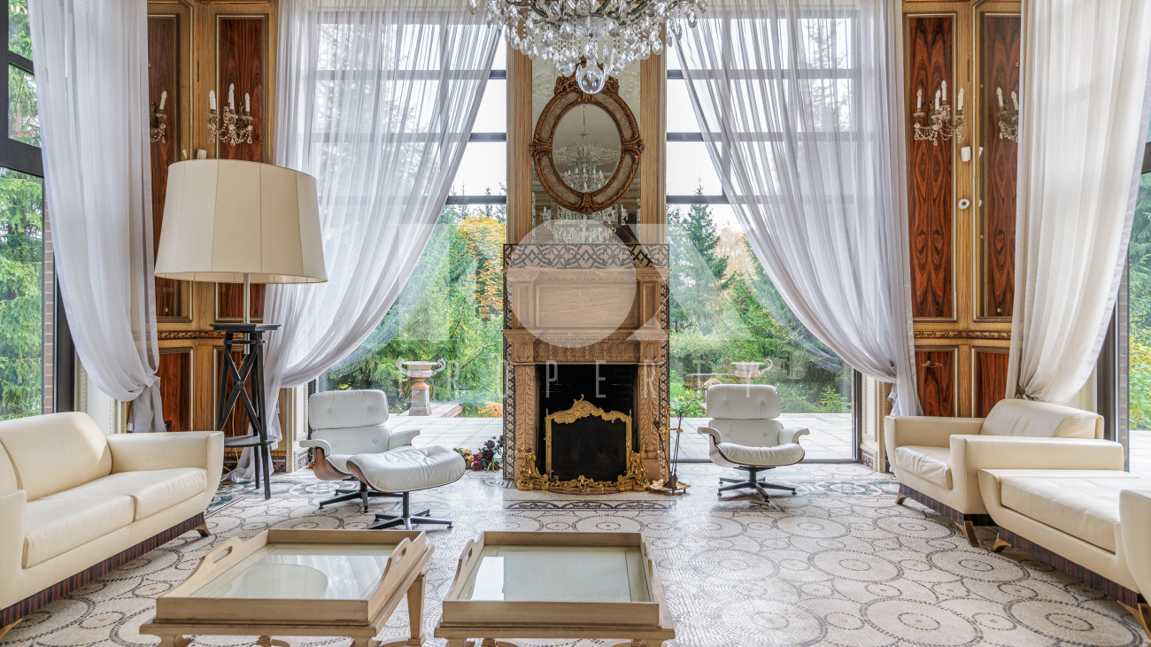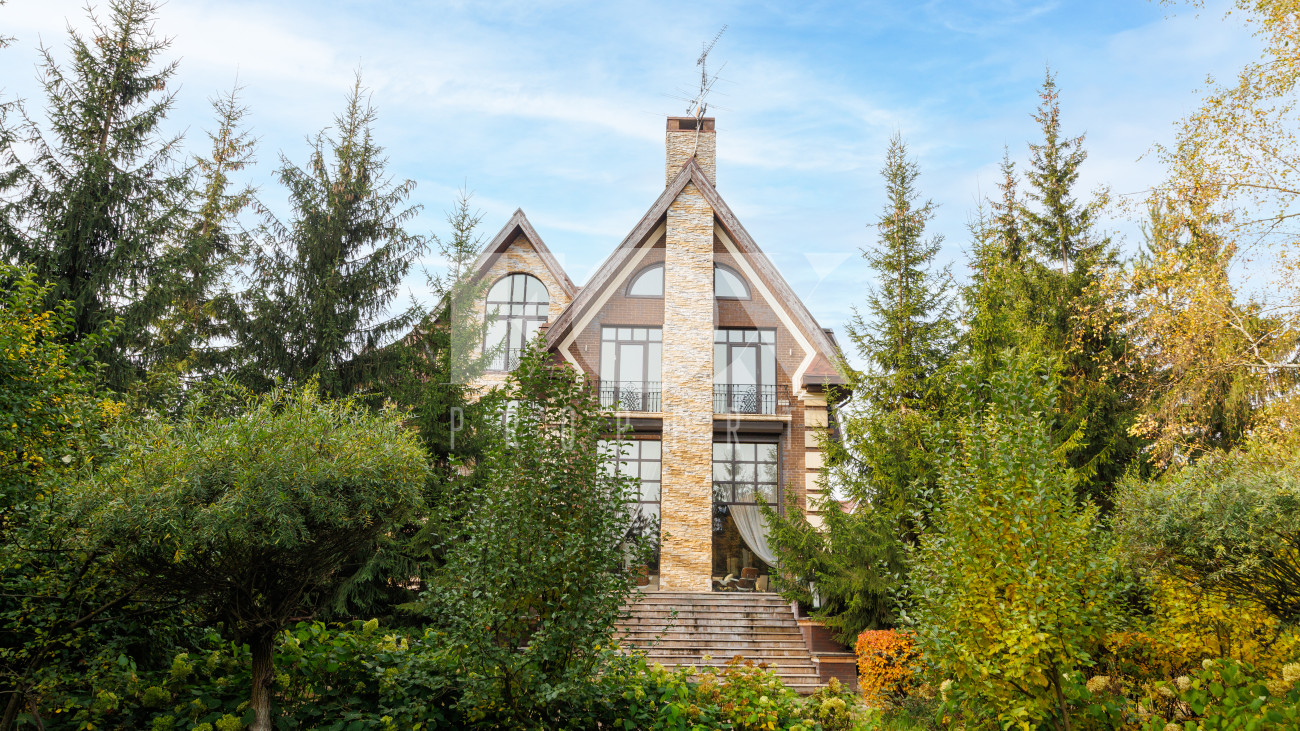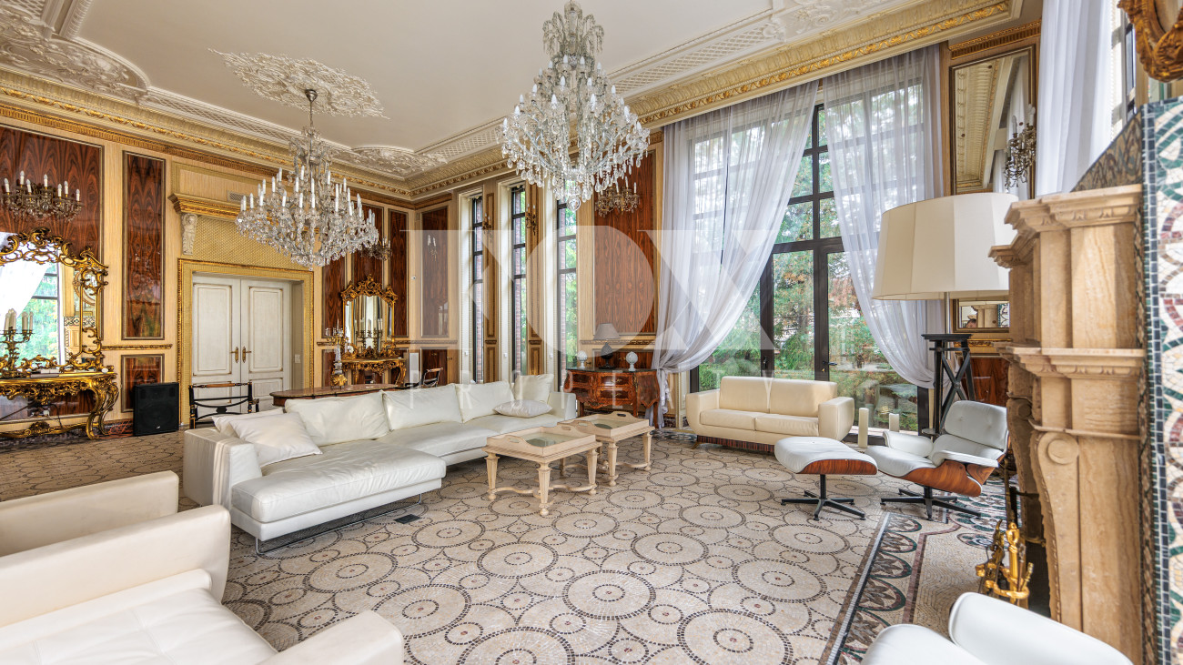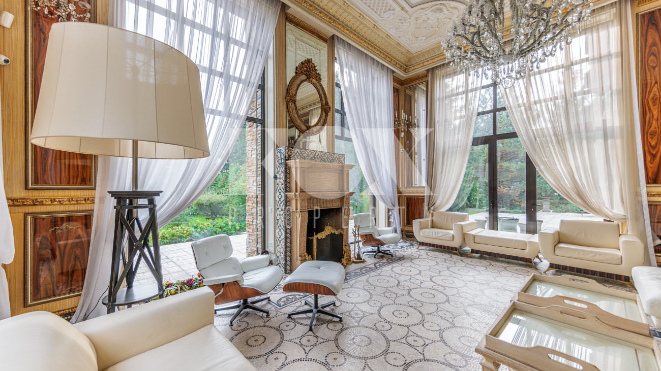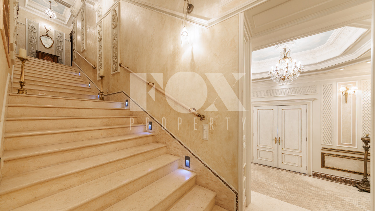 Дом площадью 860 кв.м + гараж с посещением для персонала на 2-м этаже площадью 140 кв.м Расположен на берегу Москвы-реки с великолепным видом на Лохин остров и заповедные ландшафты, на участке 35 соток, утопающем в соснах, фруктовых деревьях и зарослях гортензий. Интерьер дома погружает вас в аутентичную атмосферу мебели и предметов интерьера XVIII–XIX веков с элегантным мостиком к лучшим образцам итальянского дизайна в области мебели, создавая неповторимый ансамбль изысканности и уюта. Первый этаж дома включает просторную гостиную с камином, две кухни, два входа, бассейн, турецкую баню, отдельную комнату свободного назначения и лифт. На втором и третьем этажах расположены 7 комнат и 6 ванных комнат, а также 5 просторных гардеробных, которые могут быть использованы как спальни или для иных целей. Дом оборудован современной системой внутреннего видеонаблюдения, сигнализацией «Гольфстрим» и высокоскоростным оптоволоконным интернетом МГТС. На участке находится отдельный дом с гаражом на две машины, кухней и двумя спальнями, идеально подходящий для гостей или персонала.