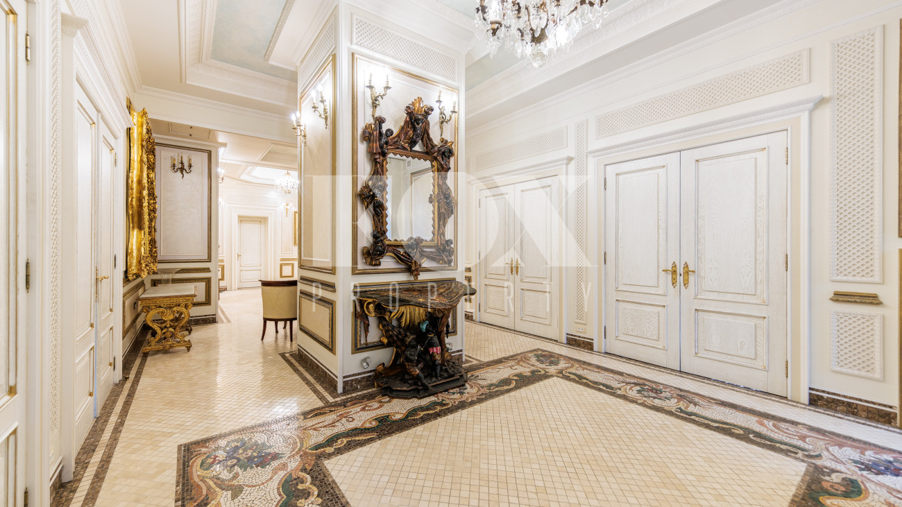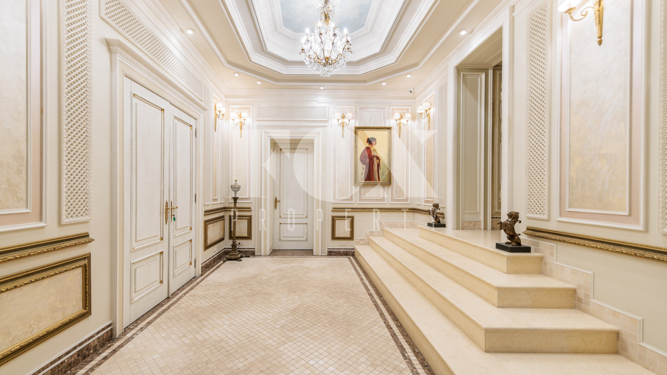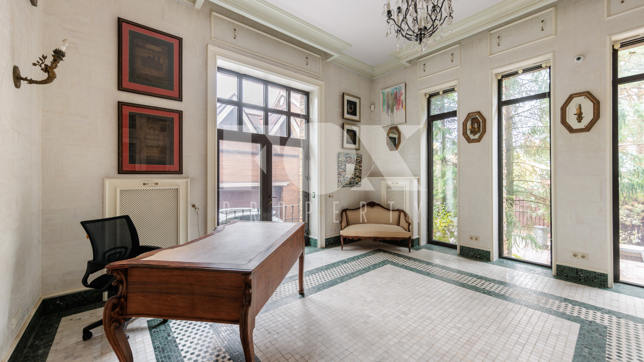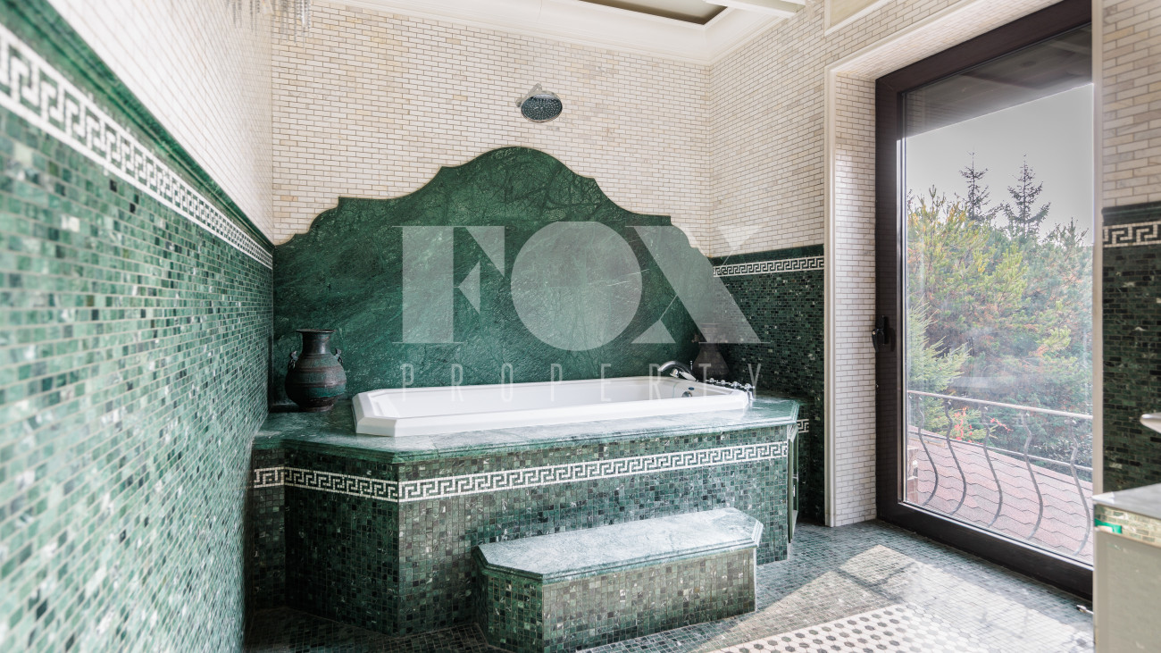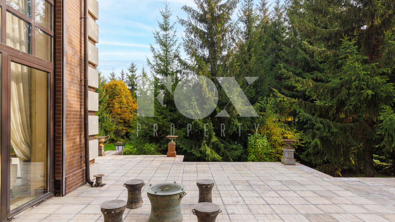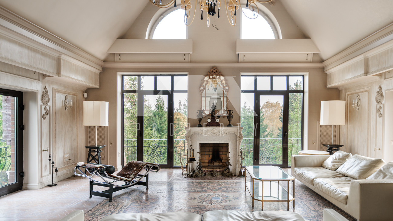 Дом площадью 860 кв.м + гараж с посещением для персонала на 2-м этаже площадью 140 кв.м Расположен на берегу Москвы-реки с великолепным видом на Лохин остров и заповедные ландшафты, на участке 35 соток, утопающем в соснах, фруктовых деревьях и зарослях гортензий. Интерьер дома погружает вас в аутентичную атмосферу мебели и предметов интерьера XVIII–XIX веков с элегантным мостиком к лучшим образцам итальянского дизайна в области мебели, создавая неповторимый ансамбль изысканности и уюта. Первый этаж дома включает просторную гостиную с камином, две кухни, два входа, бассейн, турецкую баню, отдельную комнату свободного назначения и лифт. На втором и третьем этажах расположены 7 комнат и 6 ванных комнат, а также 5 просторных гардеробных, которые могут быть использованы как спальни или для иных целей. Дом оборудован современной системой внутреннего видеонаблюдения, сигнализацией «Гольфстрим» и высокоскоростным оптоволоконным интернетом МГТС. На участке находится отдельный дом с гаражом на две машины, кухней и двумя спальнями, идеально подходящий для гостей или персонала.