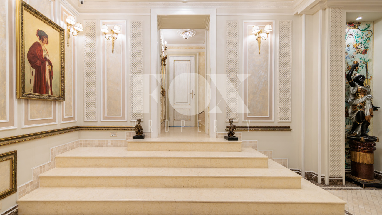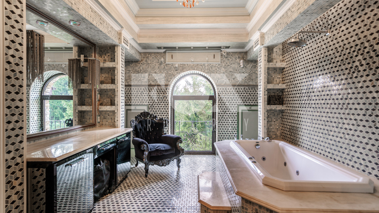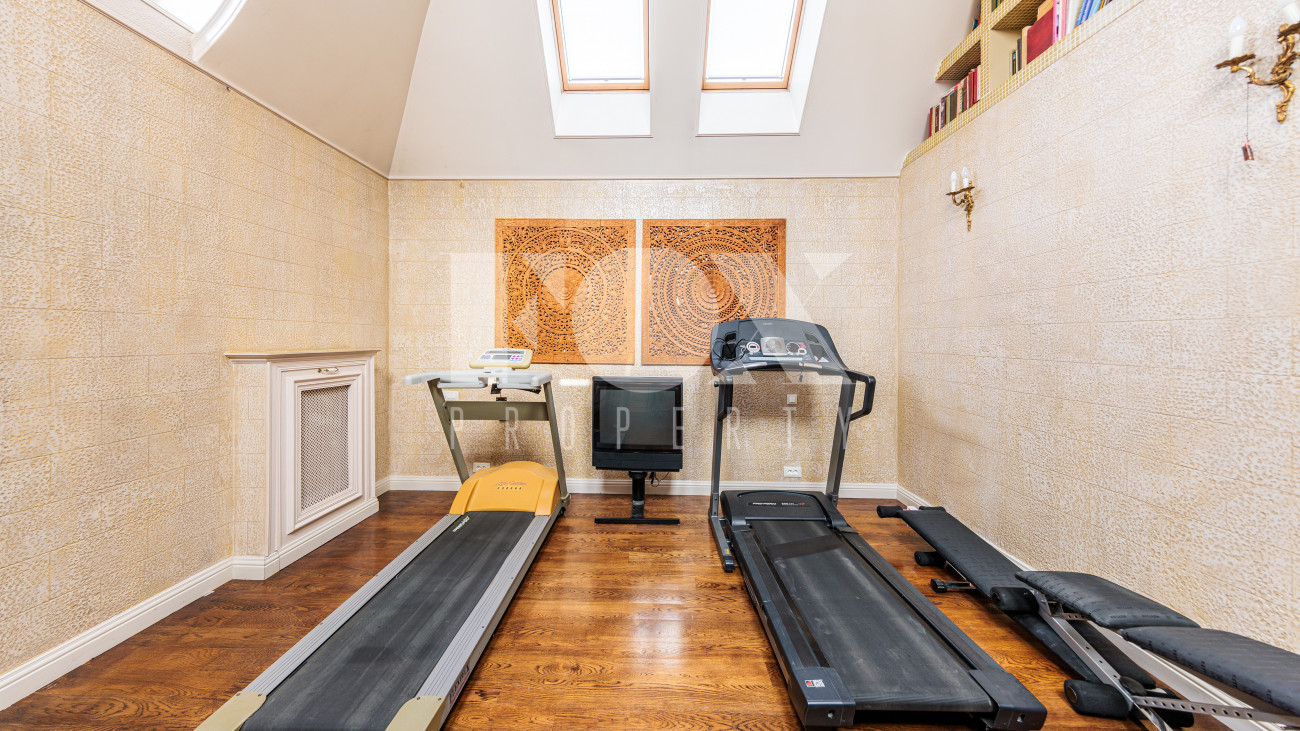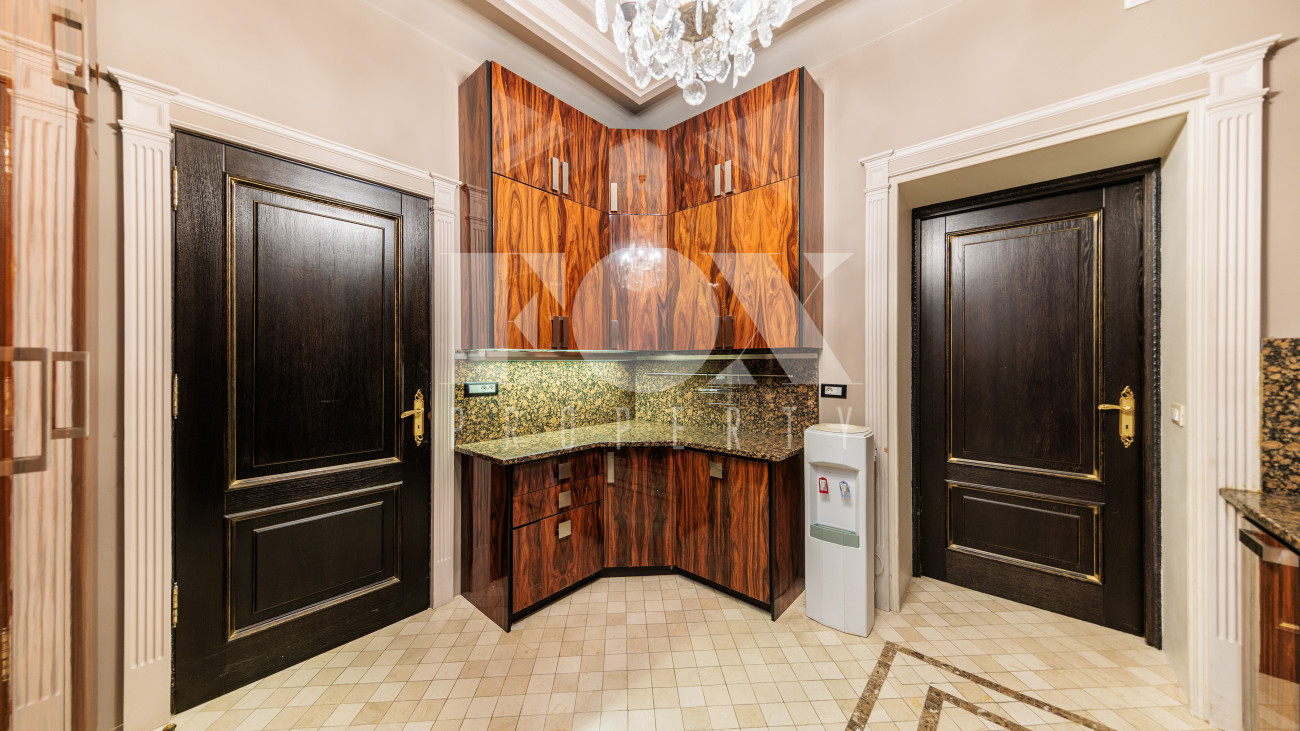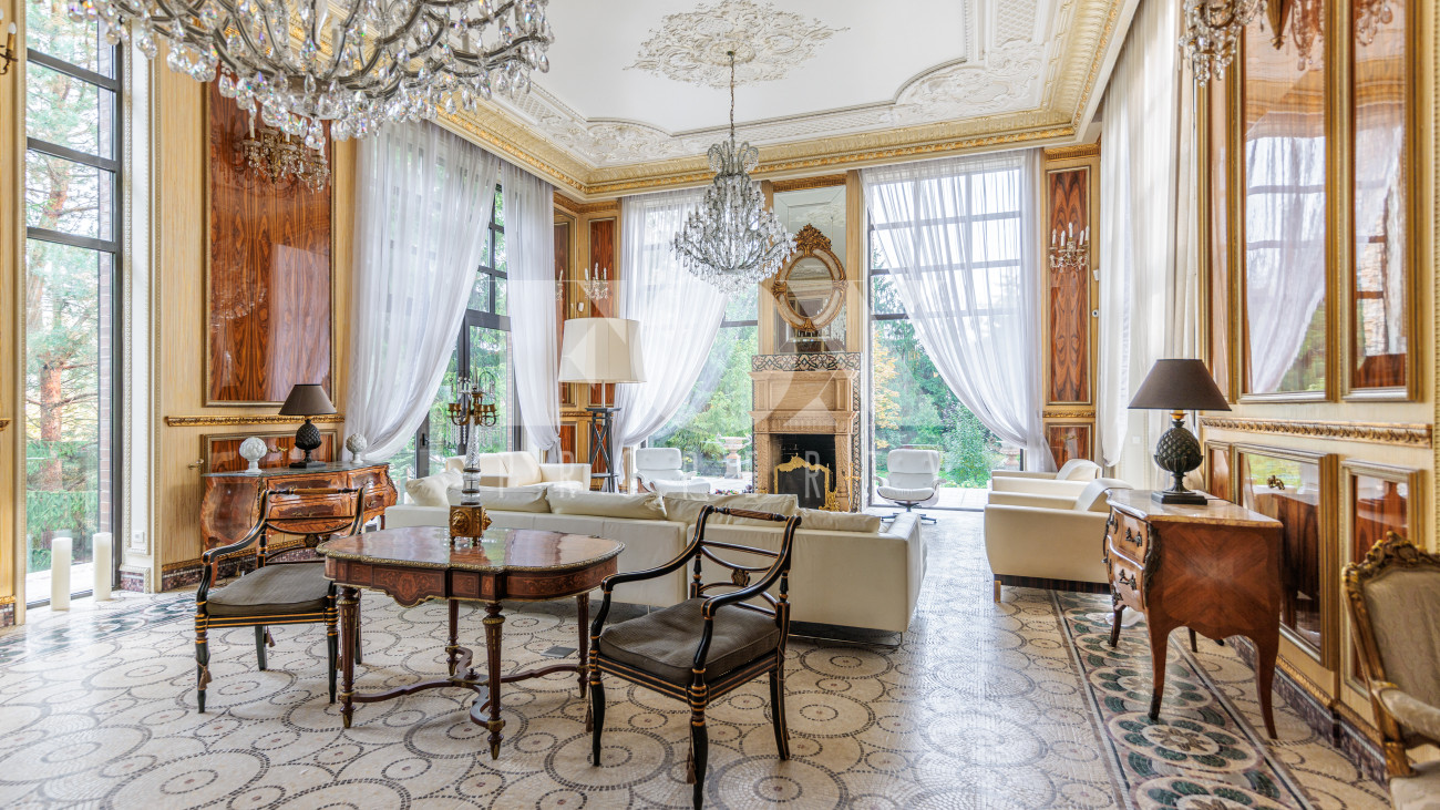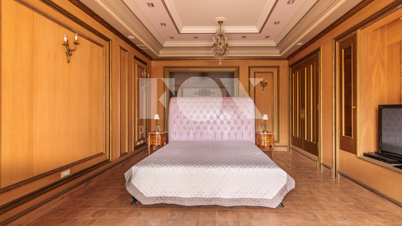 Дом площадью 860 кв.м + гараж с посещением для персонала на 2-м этаже площадью 140 кв.м Расположен на берегу Москвы-реки с великолепным видом на Лохин остров и заповедные ландшафты, на участке 35 соток, утопающем в соснах, фруктовых деревьях и зарослях гортензий. Интерьер дома погружает вас в аутентичную атмосферу мебели и предметов интерьера XVIII–XIX веков с элегантным мостиком к лучшим образцам итальянского дизайна в области мебели, создавая неповторимый ансамбль изысканности и уюта. Первый этаж дома включает просторную гостиную с камином, две кухни, два входа, бассейн, турецкую баню, отдельную комнату свободного назначения и лифт. На втором и третьем этажах расположены 7 комнат и 6 ванных комнат, а также 5 просторных гардеробных, которые могут быть использованы как спальни или для иных целей. Дом оборудован современной системой внутреннего видеонаблюдения, сигнализацией «Гольфстрим» и высокоскоростным оптоволоконным интернетом МГТС. На участке находится отдельный дом с гаражом на две машины, кухней и двумя спальнями, идеально подходящий для гостей или персонала.