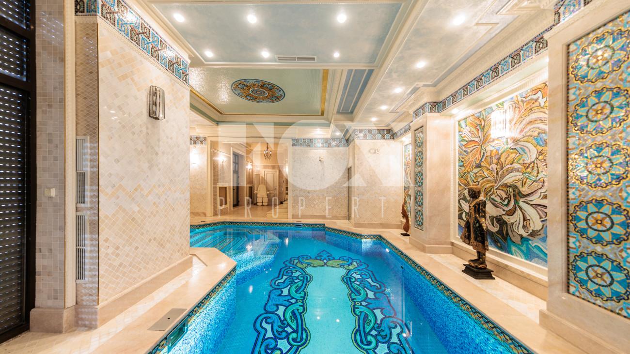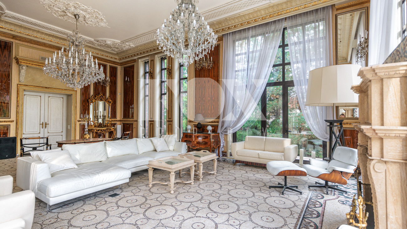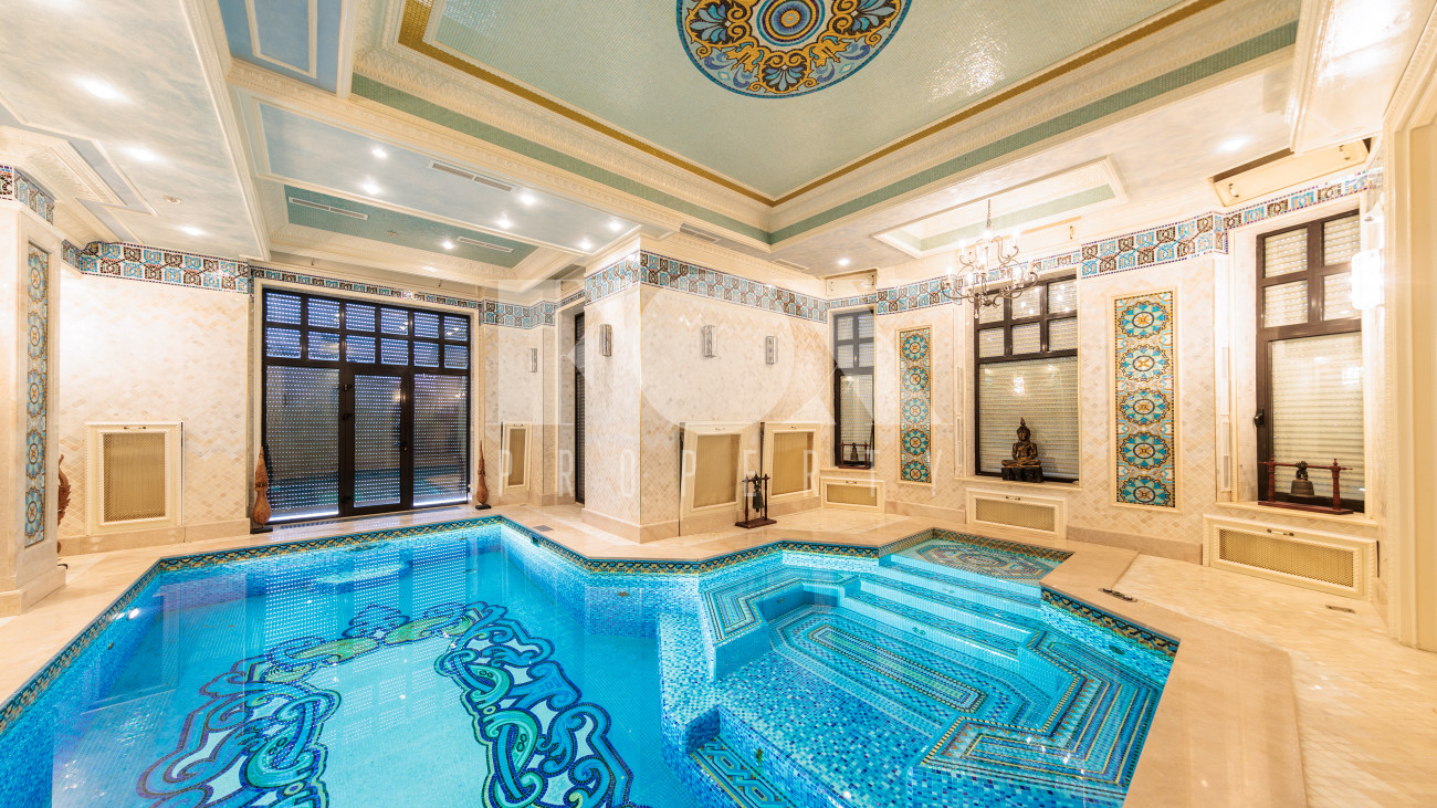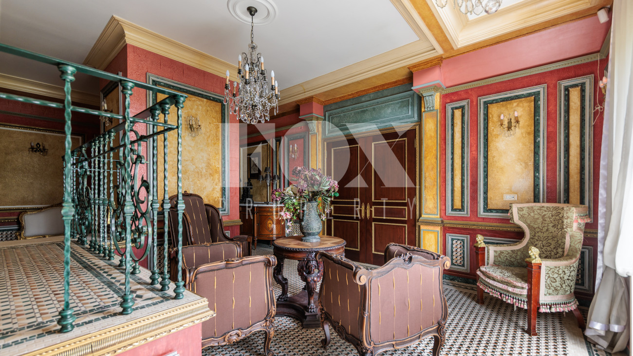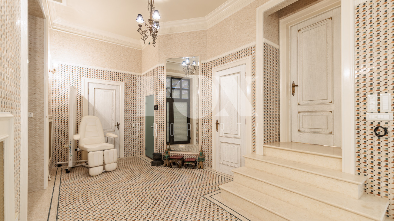 Дом площадью 860 кв.м + гараж с посещением для персонала на 2-м этаже площадью 140 кв.м Расположен на берегу Москвы-реки с великолепным видом на Лохин остров и заповедные ландшафты, на участке 35 соток, утопающем в соснах, фруктовых деревьях и зарослях гортензий. Интерьер дома погружает вас в аутентичную атмосферу мебели и предметов интерьера XVIII–XIX веков с элегантным мостиком к лучшим образцам итальянского дизайна в области мебели, создавая неповторимый ансамбль изысканности и уюта. Первый этаж дома включает просторную гостиную с камином, две кухни, два входа, бассейн, турецкую баню, отдельную комнату свободного назначения и лифт. На втором и третьем этажах расположены 7 комнат и 6 ванных комнат, а также 5 просторных гардеробных, которые могут быть использованы как спальни или для иных целей. Дом оборудован современной системой внутреннего видеонаблюдения, сигнализацией «Гольфстрим» и высокоскоростным оптоволоконным интернетом МГТС. На участке находится отдельный дом с гаражом на две машины, кухней и двумя спальнями, идеально подходящий для гостей или персонала.