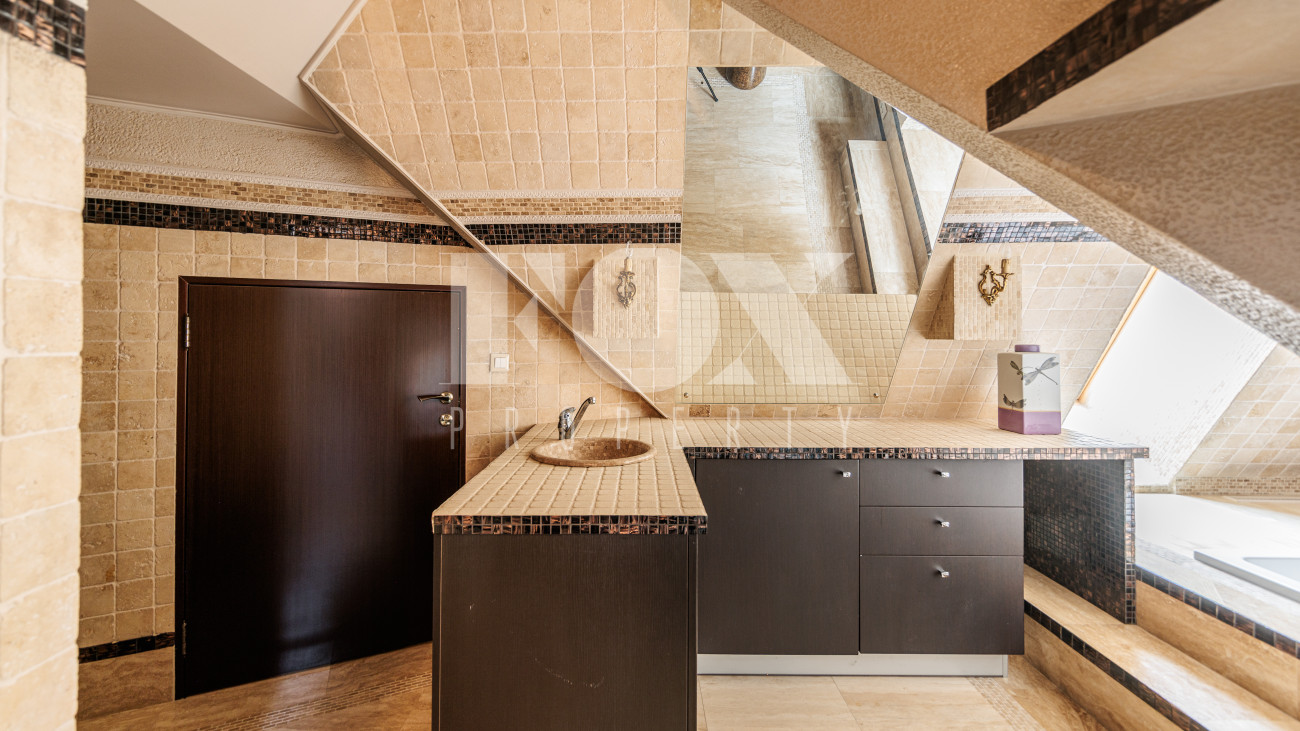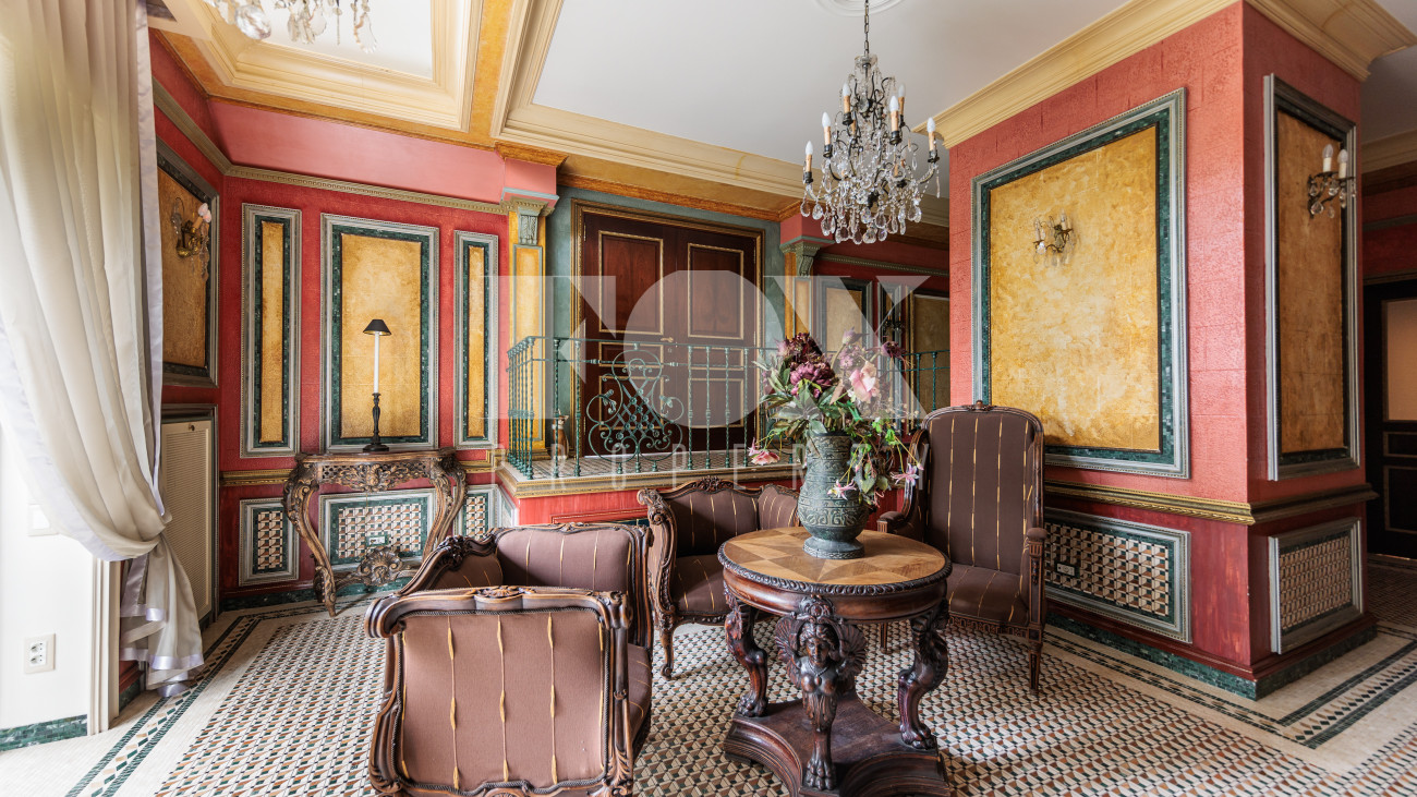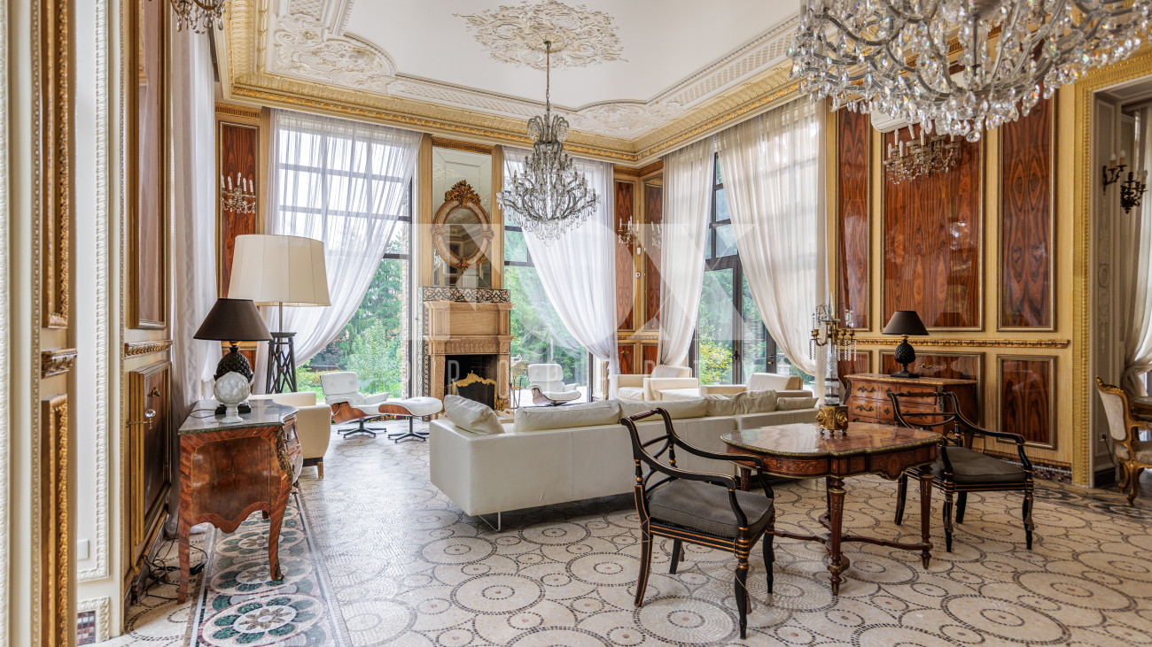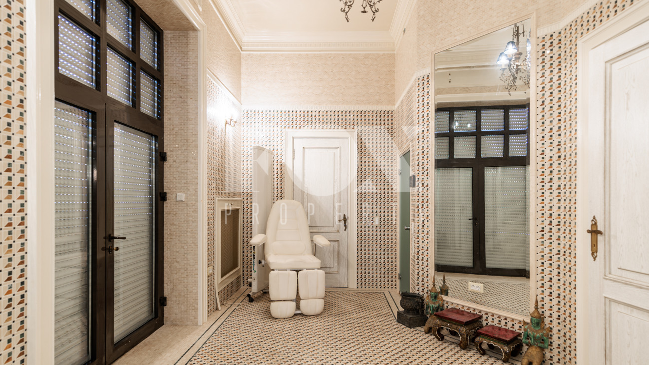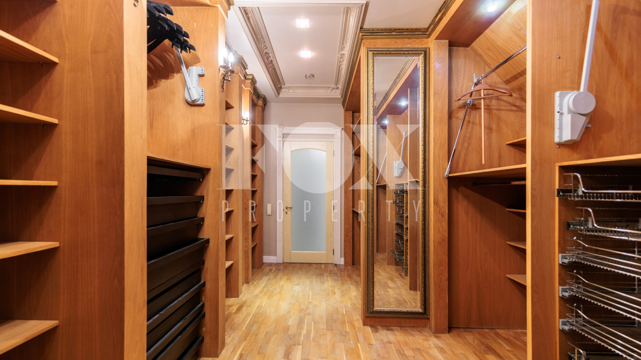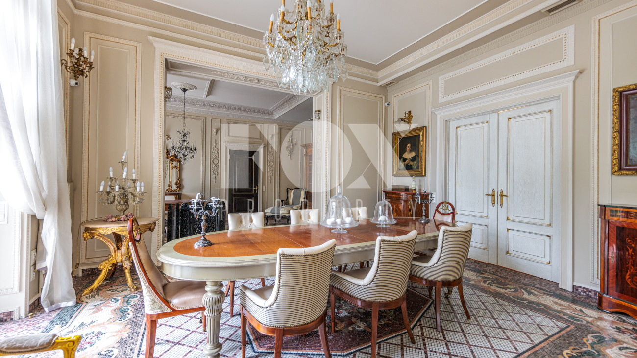 Дом площадью 860 кв.м + гараж с посещением для персонала на 2-м этаже площадью 140 кв.м Расположен на берегу Москвы-реки с великолепным видом на Лохин остров и заповедные ландшафты, на участке 35 соток, утопающем в соснах, фруктовых деревьях и зарослях гортензий. Интерьер дома погружает вас в аутентичную атмосферу мебели и предметов интерьера XVIII–XIX веков с элегантным мостиком к лучшим образцам итальянского дизайна в области мебели, создавая неповторимый ансамбль изысканности и уюта. Первый этаж дома включает просторную гостиную с камином, две кухни, два входа, бассейн, турецкую баню, отдельную комнату свободного назначения и лифт. На втором и третьем этажах расположены 7 комнат и 6 ванных комнат, а также 5 просторных гардеробных, которые могут быть использованы как спальни или для иных целей. Дом оборудован современной системой внутреннего видеонаблюдения, сигнализацией «Гольфстрим» и высокоскоростным оптоволоконным интернетом МГТС. На участке находится отдельный дом с гаражом на две машины, кухней и двумя спальнями, идеально подходящий для гостей или персонала.