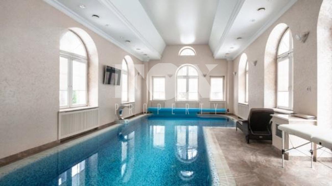 Конструктив дома - кирпич. Фасад оштукатурен. В планировке предусмотрены кинотеатр, бассейн (12х4м) с противотоком, установлена приточно-вытяжная вентиляция с встроенным кондиционированием.