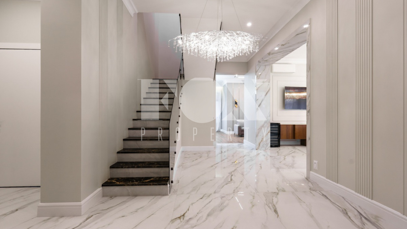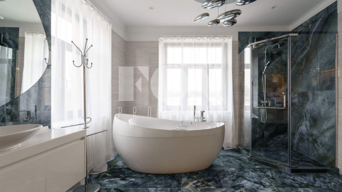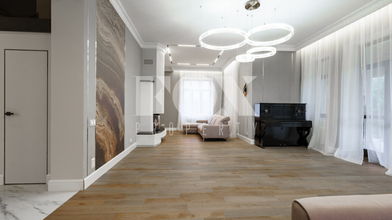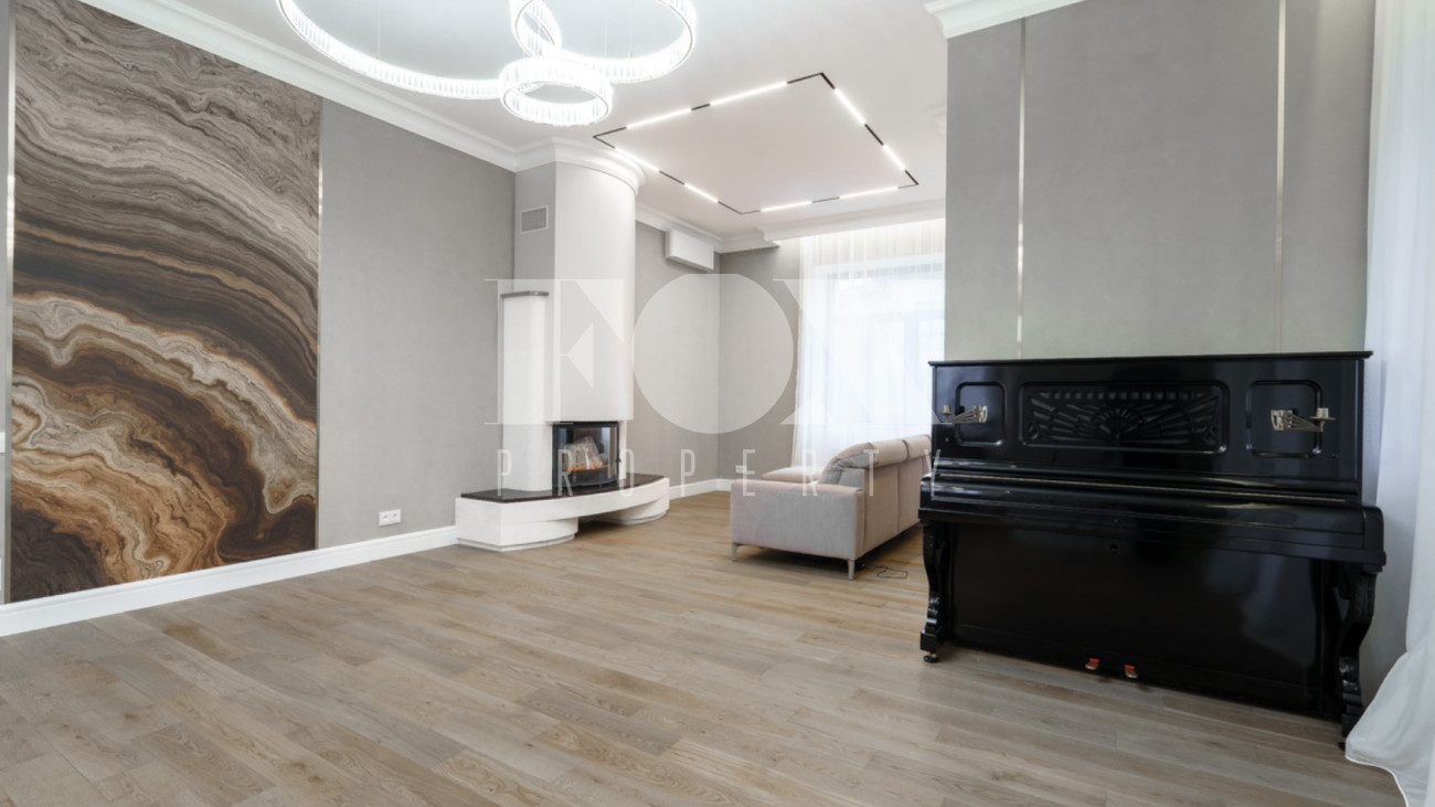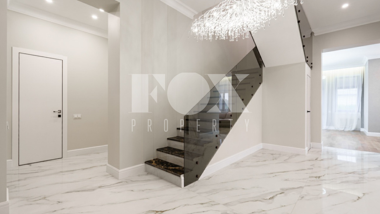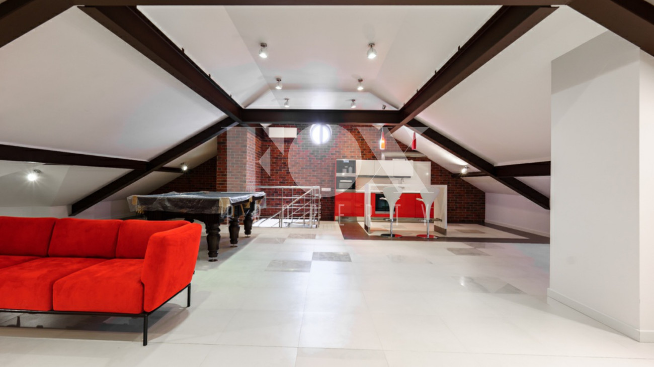 Загородный дом площадью 450 м² построен на полевом участке 18,3 сотки в охраняемом КП "Монтевиль". Внутри спланировали 3 спальни со своими гардеробными и санузлами, кабинет, просторную кухню- столовую, гостиную с камином и выходом на крытую террасу. В контуре дома предусмотрены гараж на 2 машины и котельная с отдельным входом. Рядом расположен навес на 2 машины и отдельно стоящая баня с купелью и комнатой отдыха.