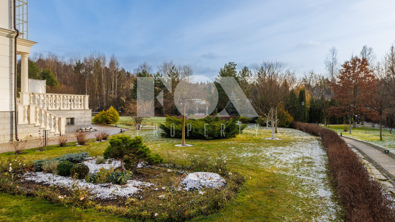 На участке выполнен ландшафтный дизайн в парковом стиле. Есть беседка.