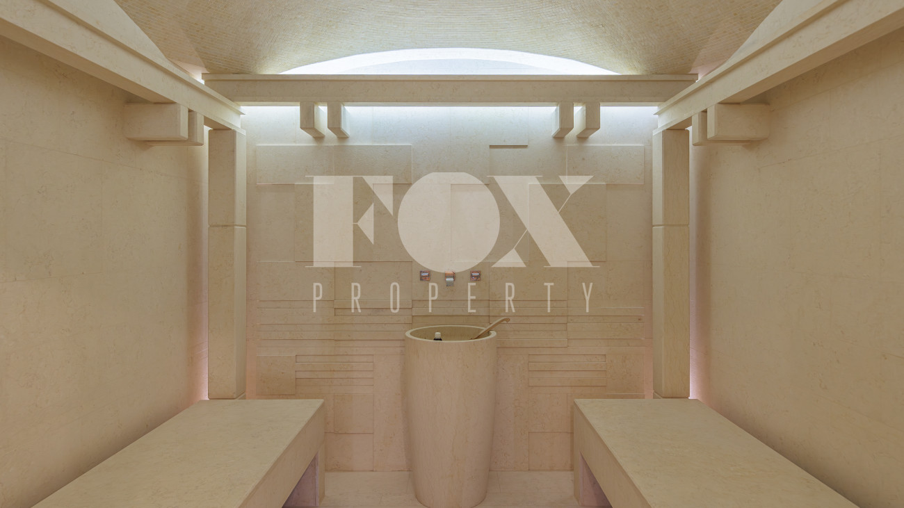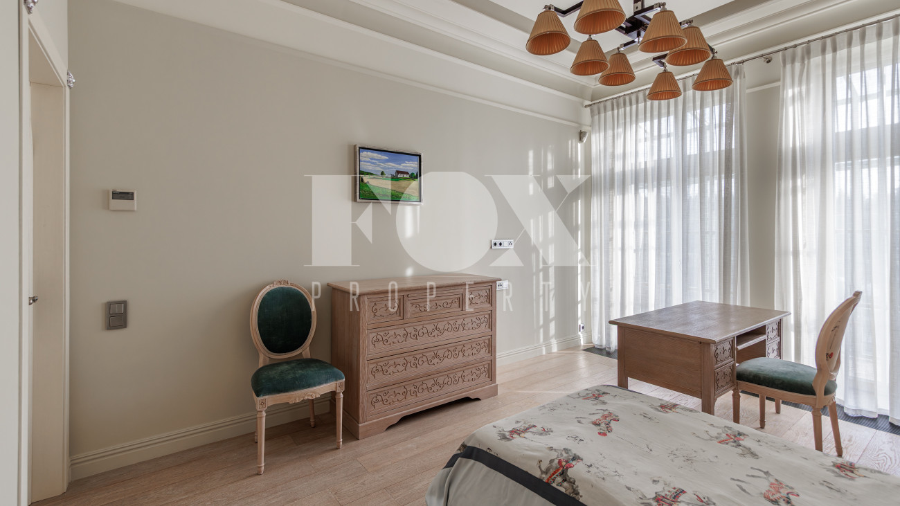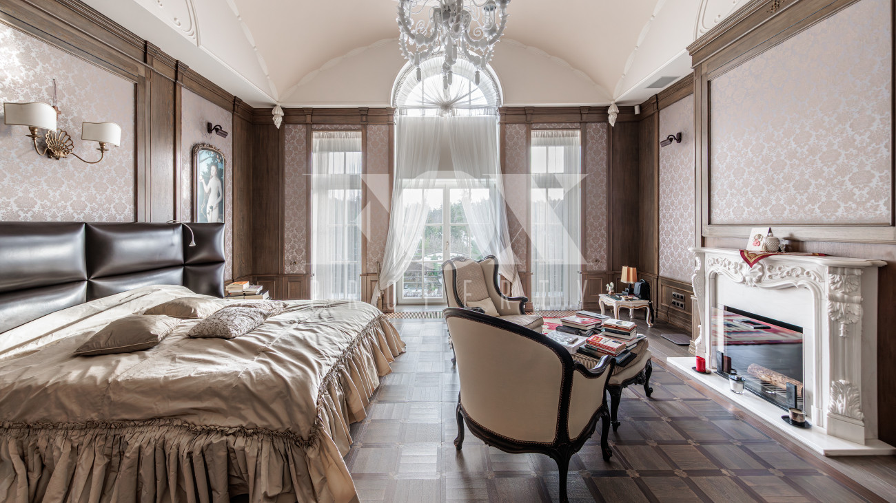 2 этаж: мастер-спальня с ванной комнатой и 2 гардеробными комнатами, 3 спальни с ванными комнатами и гардеробными, библиотека.