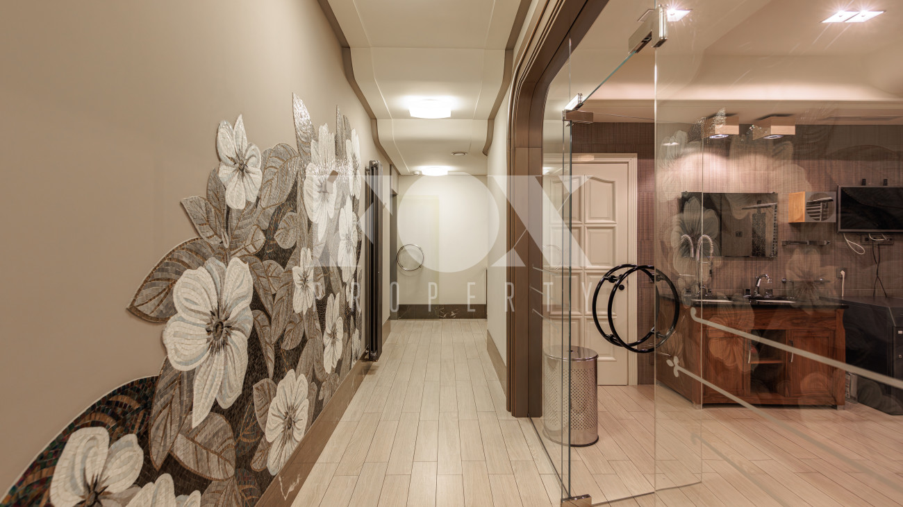 цоколь: СПА-зона с хаммамом, тренажерным залом и комнатой отдыха, пострирочная, зоны хранения.