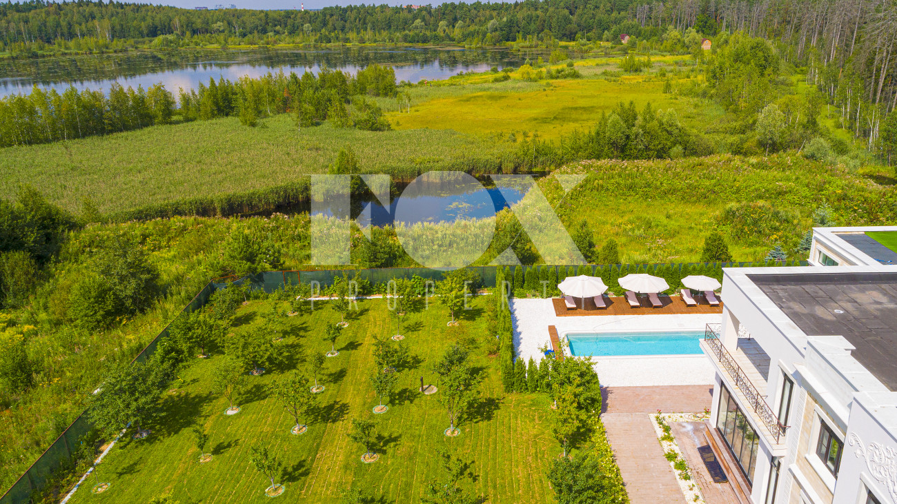 Загородная резиденция в три уровня площадью 1660 м² на 1-й линии от воды на шикарном видовом прилесном участке 25 соток с прекрасным ландшафтным дизайном и чудесным садом с плодовыми деревьями и кустарниками в приватной части охраняемого поселка «Усадьба СНТ». Идеальное состояние!