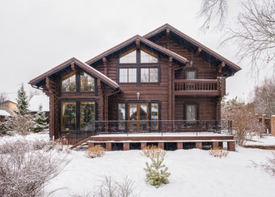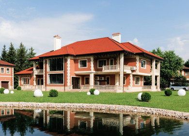 Дом площадью 425 кв.м на лесном участке 15 соток в старой части поселка на тупиковой улице. На участке выполнены ландшафтные работы: высажены крупномеры, декоративные деревья, разбит пруд с фонтаном, вымощены дорожки, установлено освещение. Отдельно на участке расположена беседка и зона барбекю, организован декоративный пруд с фонтаном. К дому примыкает гараж на 2 м/м