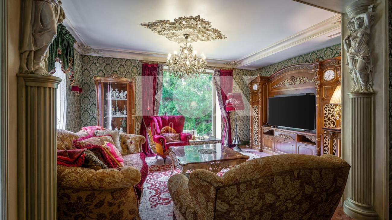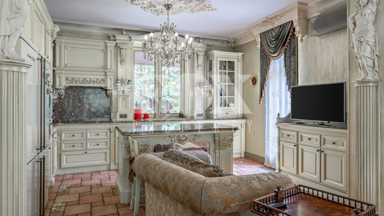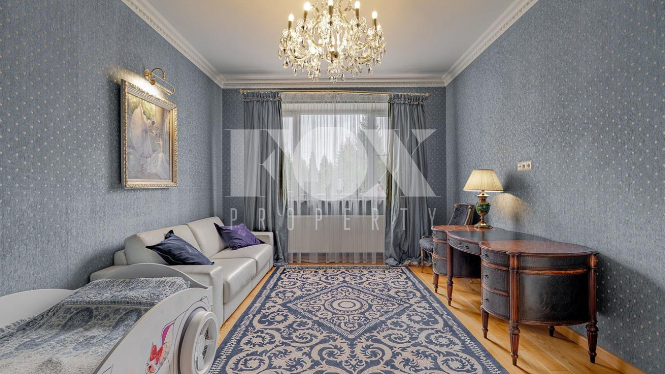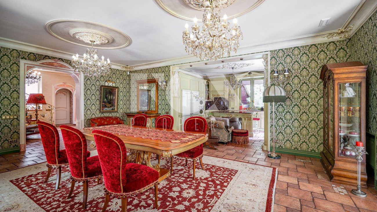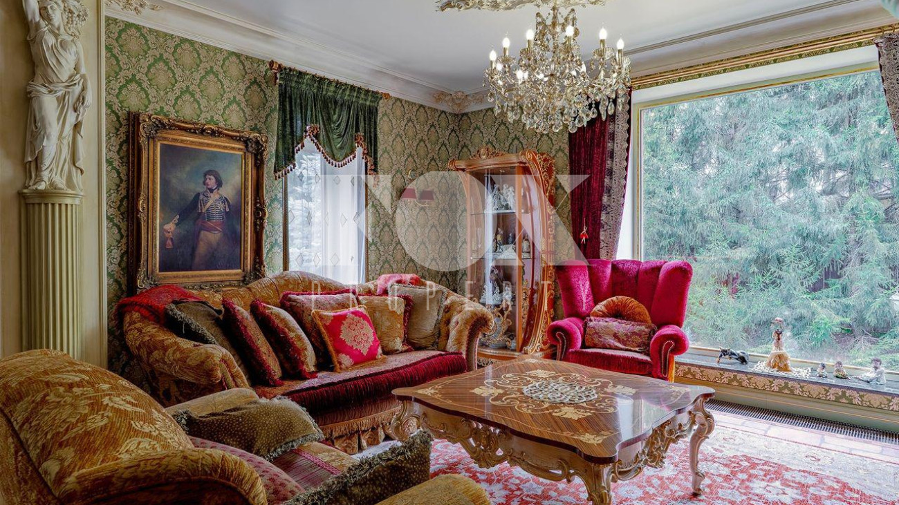 Дом в окружении хвойного леса — сочетание уединения, статуса и комфорта. Редкий дом, где стиль, масштаб и уединение соединены в одном пространстве. 1 этаж — кухня, столовая, гостиная и терраса. Просторное, залитое светом пространство объединяет кухню, обеденную зону, гостиную и террасу. Интерьер в духе европейской классики: лепнина, хрустальн люстры, антикварные акценты и ручная отделка. Кухня — мраморные поверхности, натуральные материалы, техника Smeg и Miele: большая посудомоечная машина, винный шкаф, двухкамерный холодильник и морозильник. Гостиная и столова оформлены в дворцовом стиле: бархатная мебель Provasi, колонны, богатый текстиль и панорамные окна с видом на са Терраса с остеклением — идеальное место для кофе и отдыха круглый год. Санузел — светлый, с позолотой и душе кабиной. Гардеробная — просторная, с мебелью на заказ. 2 этаж — спальни и библиотека. Лестница — арт-объект: кованые перила, керамические ступени, художественная роспись. На этаже — уютный холл с библиотекой и мягкой зоной отдыха Основная спальня с отдельным санузлом — ванна на львиных лапах, лепнина, хрустальная люстра. Три спальни в разны стилях объединены общей гардеробной и просторным санузлом с ручной росписью. 3 этаж — многофункциона пространство. Светлый этаж с окнами и потолочными светильниками. Один «карман» оборудован под хранение, второй — свободный, подходит для зимней экипировки или сезонных вещей. Главная зона открытая и универсальная — м использовать как спортзал, бильярдную, студию или кинозал. 1 этаж — технический и хозяйственный уровень. Полностью оборудован для персонала и хозяйственных нужд. На этаже — кладовая за раздвижной дверью, отдельная кухня, комната отдыха, большая гардеробная для сезонных вещей и просторное помещение, которое можно обустроить по усмотрению — спортзал, мастерская, винная или комната отдыха. Техническое помещение оснащено совреме системами отопления и водоподготовки, всё регулярно обслуживается. Придомовая территория. Участок утопает в зелени: ели и туи высотой до 12 метров создают эффект собственного леса и полную приватность. Дорожки и терраса выложен итальянским гранитом. На участке — зона отдыха с профессиональным мангалом и тандыром, садовая мебель, навес на 2 автомобиля и парковка ещё на 2. Территория ухожена и приватна.