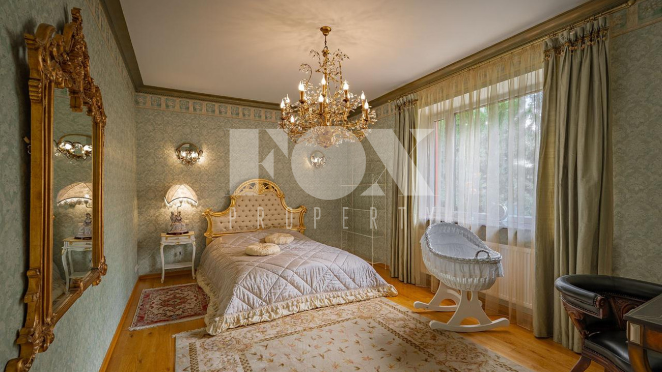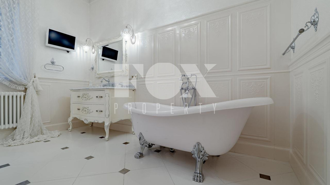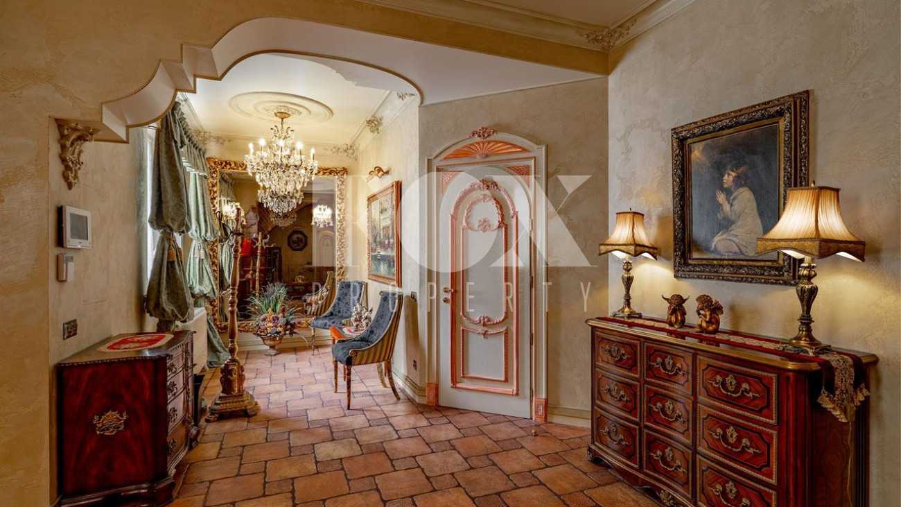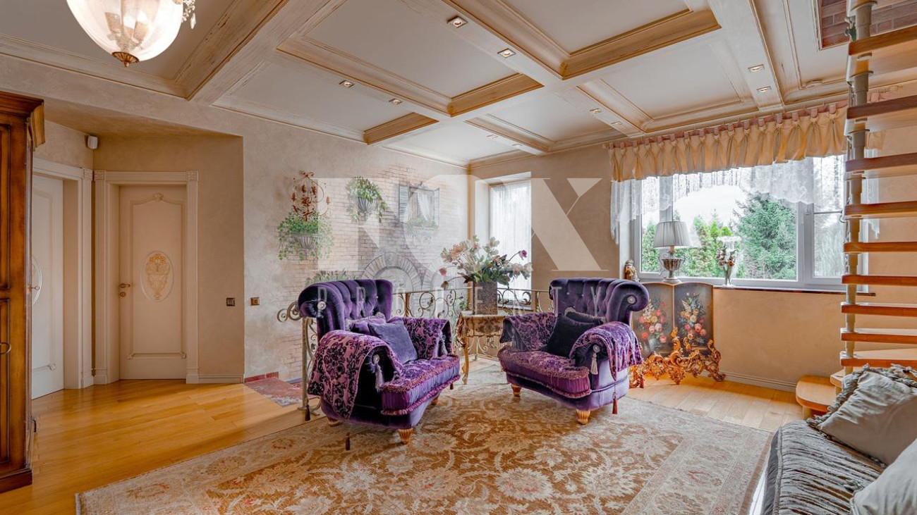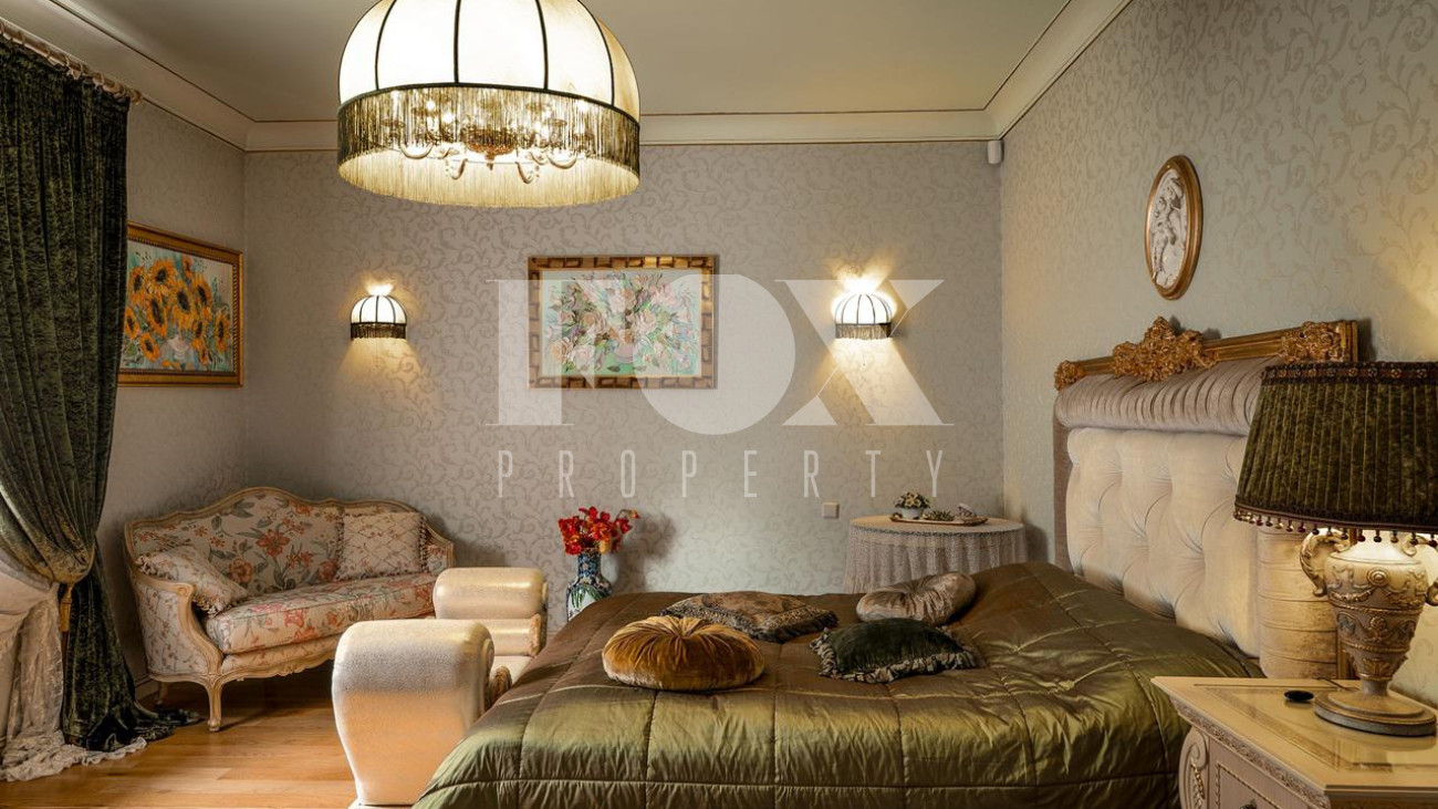 Дом в окружении хвойного леса — сочетание уединения, статуса и комфорта. Редкий дом, где стиль, масштаб и уединение соединены в одном пространстве. 1 этаж — кухня, столовая, гостиная и терраса. Просторное, залитое светом пространство объединяет кухню, обеденную зону, гостиную и террасу. Интерьер в духе европейской классики: лепнина, хрустальн люстры, антикварные акценты и ручная отделка. Кухня — мраморные поверхности, натуральные материалы, техника Smeg и Miele: большая посудомоечная машина, винный шкаф, двухкамерный холодильник и морозильник. Гостиная и столова оформлены в дворцовом стиле: бархатная мебель Provasi, колонны, богатый текстиль и панорамные окна с видом на са Терраса с остеклением — идеальное место для кофе и отдыха круглый год. Санузел — светлый, с позолотой и душе кабиной. Гардеробная — просторная, с мебелью на заказ. 2 этаж — спальни и библиотека. Лестница — арт-объект: кованые перила, керамические ступени, художественная роспись. На этаже — уютный холл с библиотекой и мягкой зоной отдыха Основная спальня с отдельным санузлом — ванна на львиных лапах, лепнина, хрустальная люстра. Три спальни в разны стилях объединены общей гардеробной и просторным санузлом с ручной росписью. 3 этаж — многофункциона пространство. Светлый этаж с окнами и потолочными светильниками. Один «карман» оборудован под хранение, второй — свободный, подходит для зимней экипировки или сезонных вещей. Главная зона открытая и универсальная — м использовать как спортзал, бильярдную, студию или кинозал. 1 этаж — технический и хозяйственный уровень. Полностью оборудован для персонала и хозяйственных нужд. На этаже — кладовая за раздвижной дверью, отдельная кухня, комната отдыха, большая гардеробная для сезонных вещей и просторное помещение, которое можно обустроить по усмотрению — спортзал, мастерская, винная или комната отдыха. Техническое помещение оснащено совреме системами отопления и водоподготовки, всё регулярно обслуживается. Придомовая территория. Участок утопает в зелени: ели и туи высотой до 12 метров создают эффект собственного леса и полную приватность. Дорожки и терраса выложен итальянским гранитом. На участке — зона отдыха с профессиональным мангалом и тандыром, садовая мебель, навес на 2 автомобиля и парковка ещё на 2. Территория ухожена и приватна.