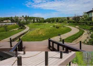 На благоустроенной территории поселка имеются красивые парковые зоны, спортивные и игровые площадки, высажены цветники и клумбы, проложены автомобильные дороги, в темное время суток работает уличное освещение. Рядом расположены живописные пруды, которые отлично подходят для рыбалки и отдыха на свежем воздухе.