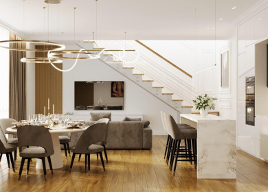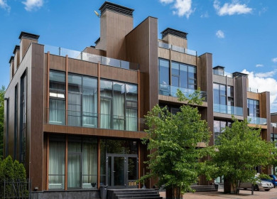 Таунхаусы представляют собой современные двух и трех-этажные апартаменты со свободной планировкой, эксплуатируемой кровлей и прилегающим участком.