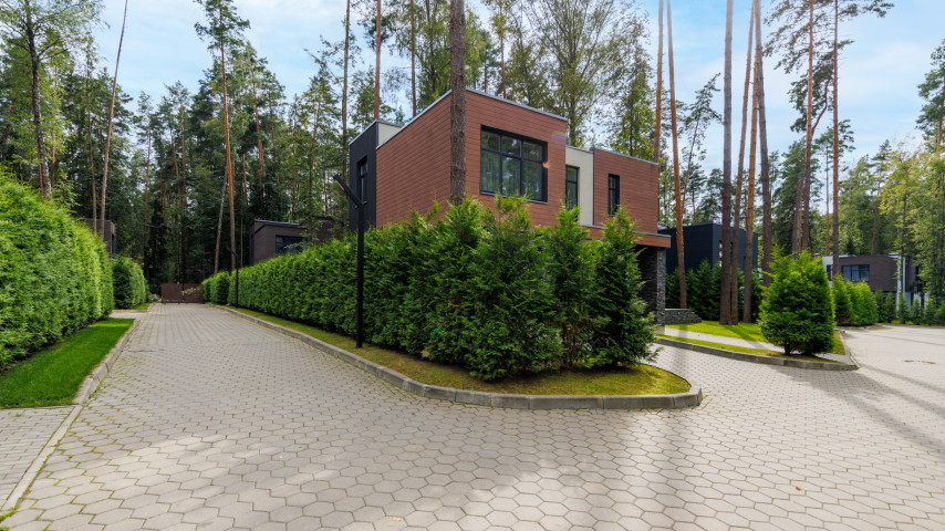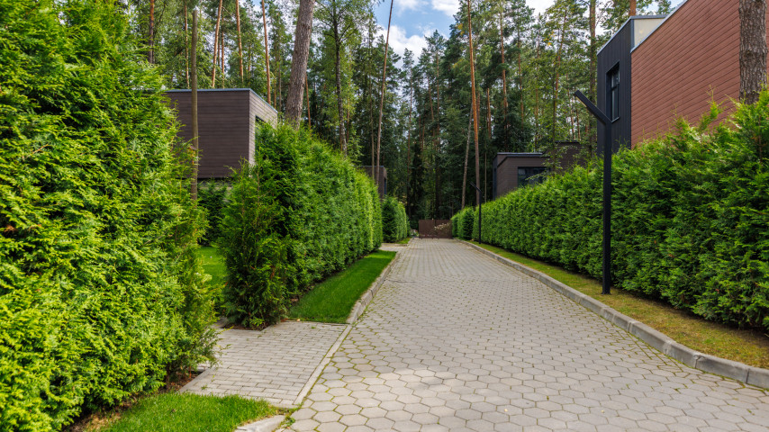 Уже на этапе строительства территория обнесена надежным забором, круглосуточно работает охранная служба. В зонах общего пользования выполняются работы по благоустройству. Во время возведения коттеджей бережно сохраняются вековые сосны. В дополнение к ним на территории высаживают декоративные кустарники и деревья. Внутренние проезды поселка уже вымощены плиткой.