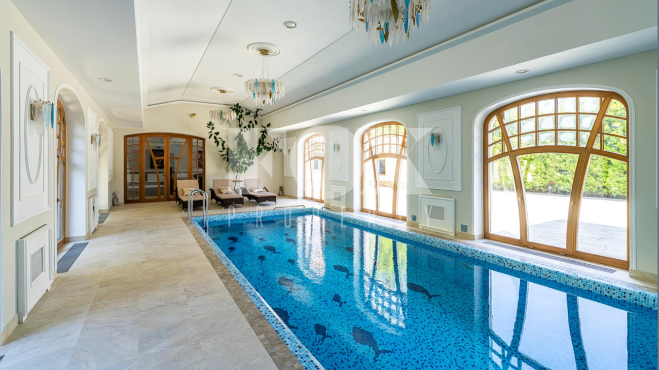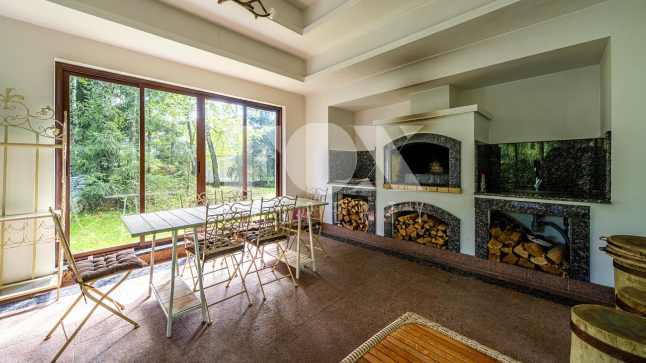 Установлено котельное оборудование фирмы Wiessmann, выполнена система приточно- вытяжной вентиляции, канальное кондиционирование. Охрана периметра Ajax с интеграцией в интерфейс включения света и других систем. Видеонаблюдение в доме и на участке.