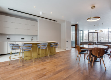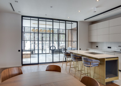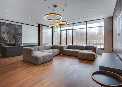 В каждой резиденции предусмотрено от трех до пяти спален со своими санузлами, просторная гостиная с установленным камином и панорамным остеклением, гардеробные комнаты, терраса и патио площадка с отдельным выходом на улицу, собственная котельная, гараж и уличная парковка. В резиденциях площадью от 487,7 кв.м. дополнительно расположены сауна с комнатой для отдыха, кабинет и помещения свободного назначения.