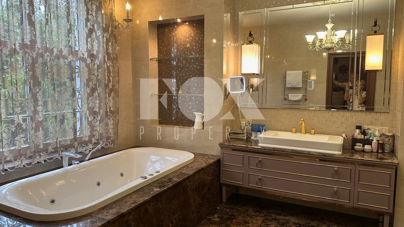 Таунхаус с дизайнерской отделкой расположен в самом престижном и тихом месте поселка. Полностью меблирован и готов к проживанию. При отделке использовались натуральные отделочные материалы и предметы интерьера ведущих производителей Италии. Участок благоустроен, по периметру высажены туи, имеется беседка с барбекю.