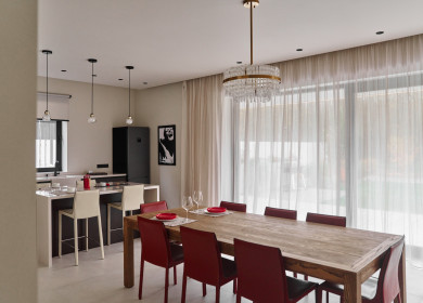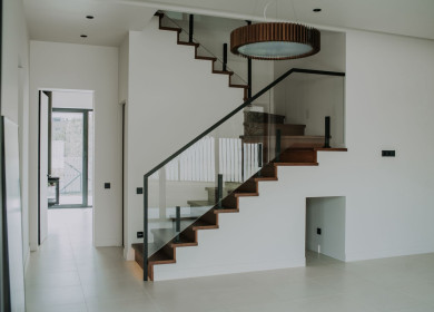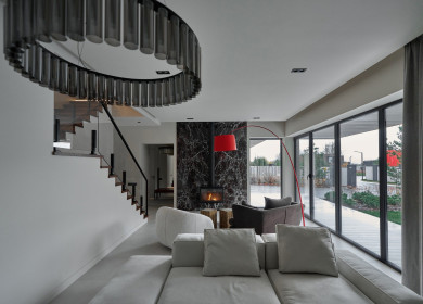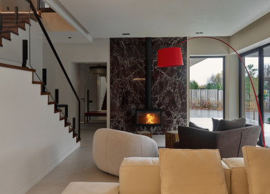 Основание строения ― утепленная шведская плита, стены сделаны из энергосберегающих материалов. Такие объекты экономят на обогреве и охлаждении до 40% от затрат обычного дома. На стадии предпродажной подготовки уже смонтирована система отопления и кондиционирования, которые дополняет настоящий камин. В планировке обязательно есть минимум три спальни, кухня-столовая, выступающий за границы фасада жилой эркер.