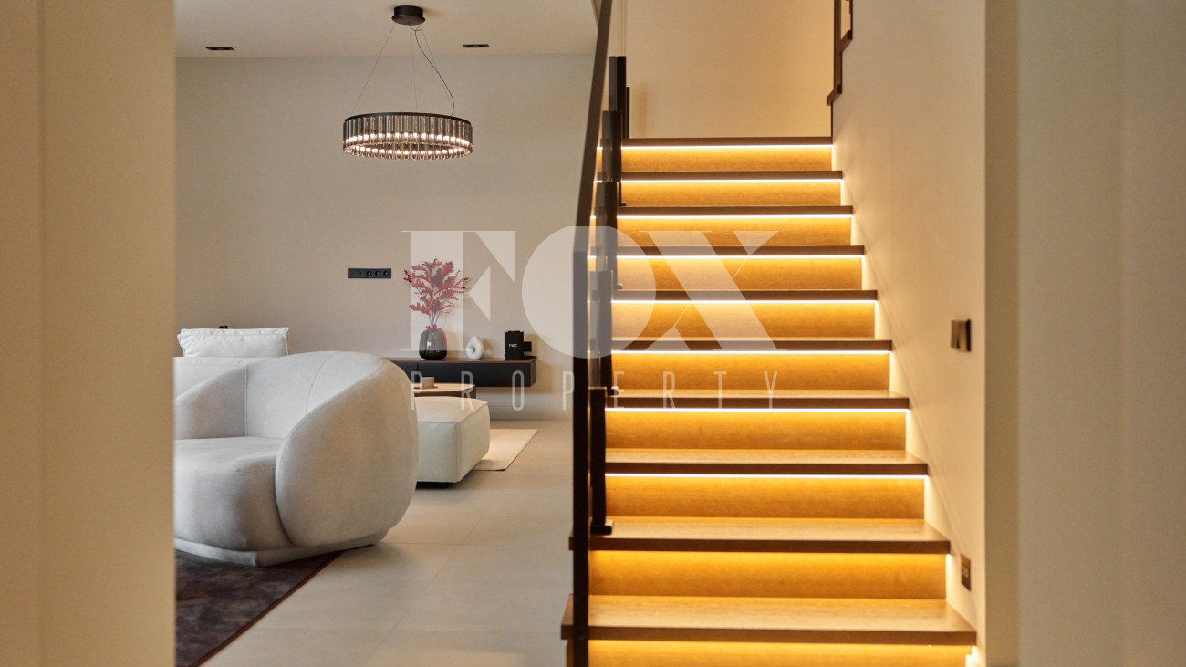 Идеальный вариант для большой семьи, которая хочет получить максимум от своего жилого пространства. Вместительный гардероб при входе, место для хранения в крытом гараже, гостевая спальня, хаммам, гостиная на втором этаже, которую можно использовать как спортзал, домашний кинотеатр или второй кабинет. Собственные санузлы в каждой детской.