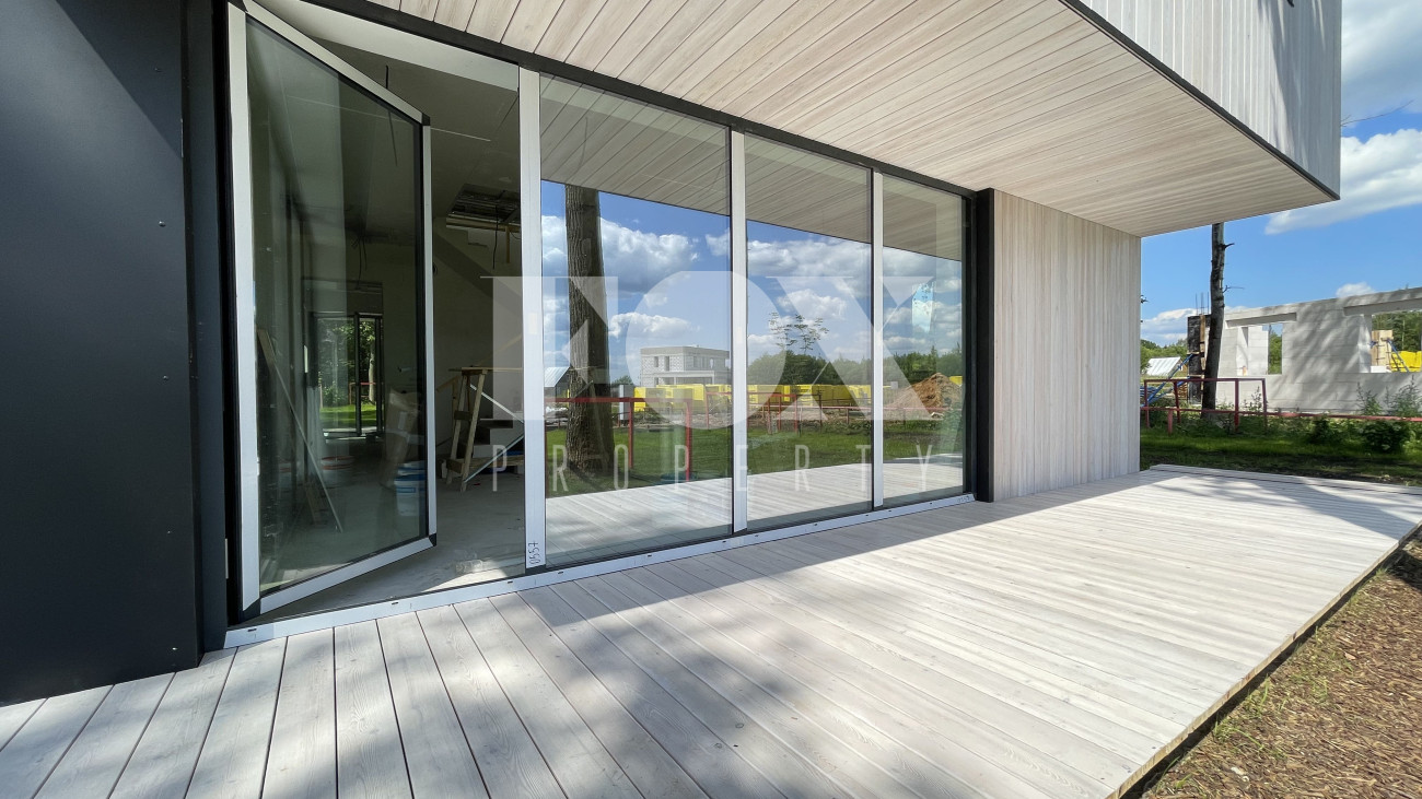 Функциональный вариант дома для небольшой семьи. Идеальный компромисс между загородным домом и городской квартирой. Просторный мастер-блок с собственной ванной и гардеробной, зона столовой, гостиная с камином, террасы и правильное количество мест для хранения.