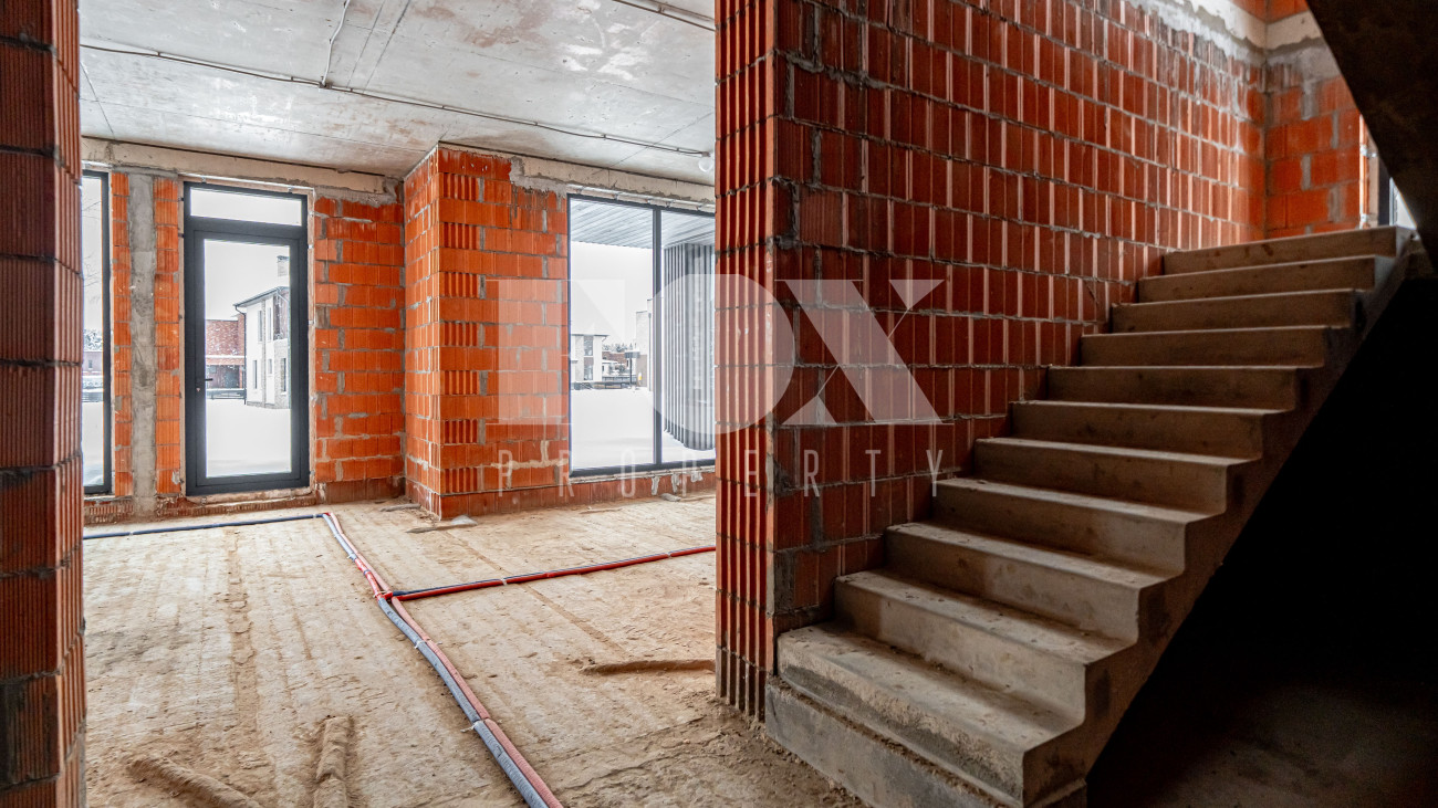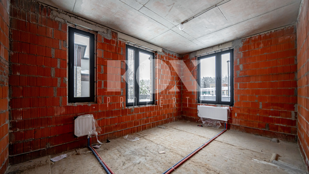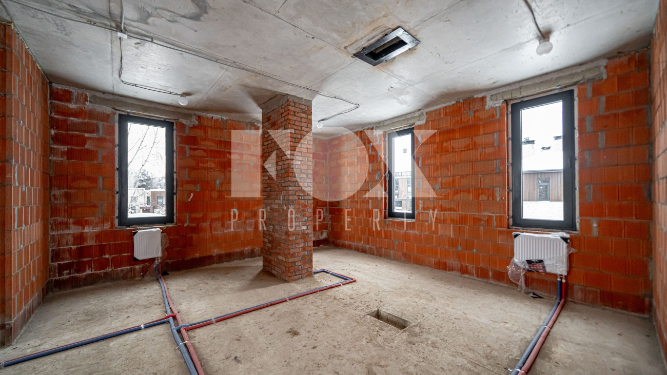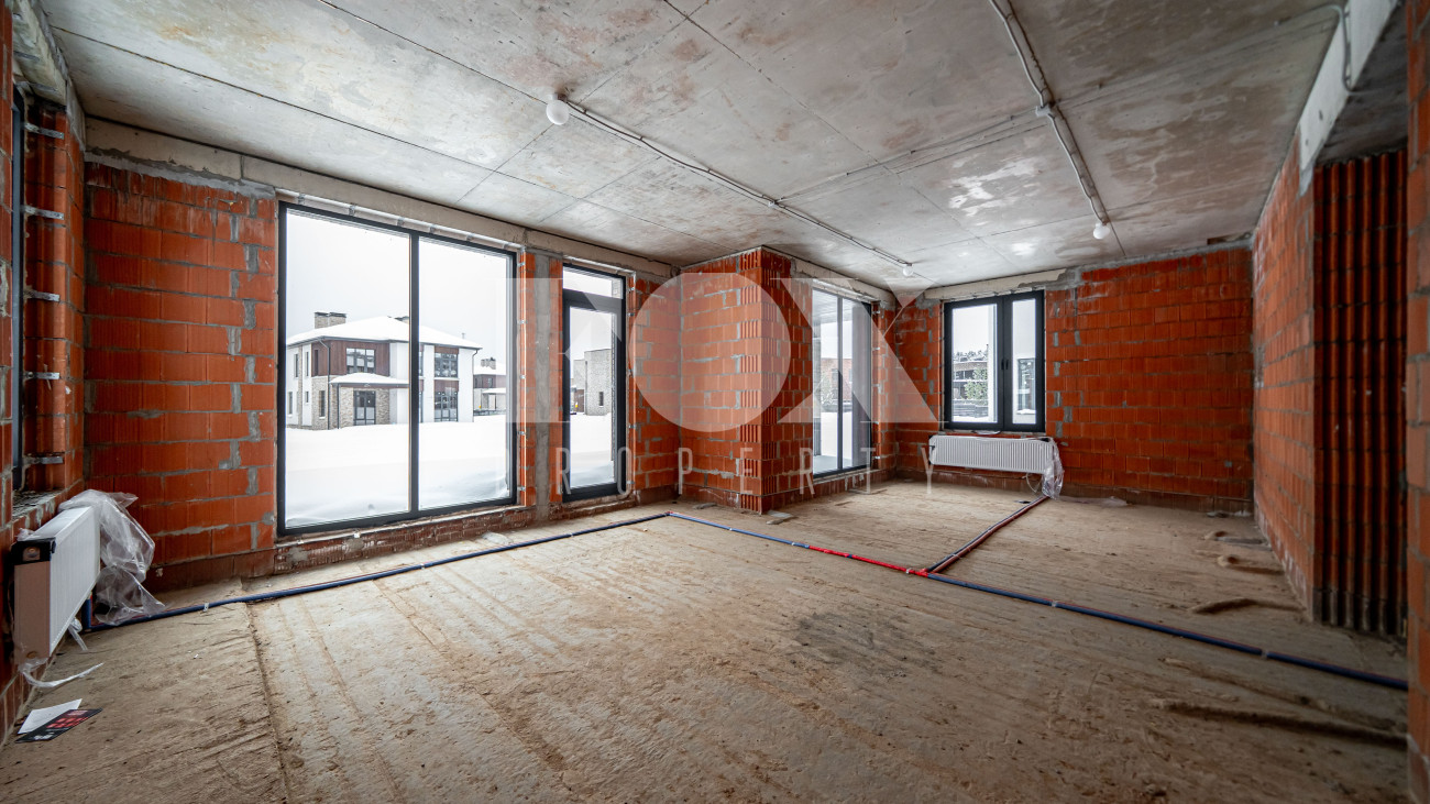 Дом построен из кирпича с использованием качественных конструктивных решений и представлен под отделку, что позволяет реализовать индивидуальное интерьерное решение без ограничений. В дом заведены все центральные коммуникации: магистральный газ, электричество, центральное водоснабжение и канализация.