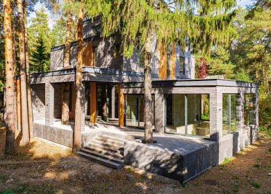 Гараж на 2 больших авто и квадроцикл, квартира для гостей (персонала) с двумя спальнями. Капитальная крытая беседка на большую компанию, с печью-мангалом, камином, водопроводом и освещением. Красивая архитектура, дорогие отделочные материалы, оборудование и мебель. Лесной участок с вековыми деревьями и ландшафтом.