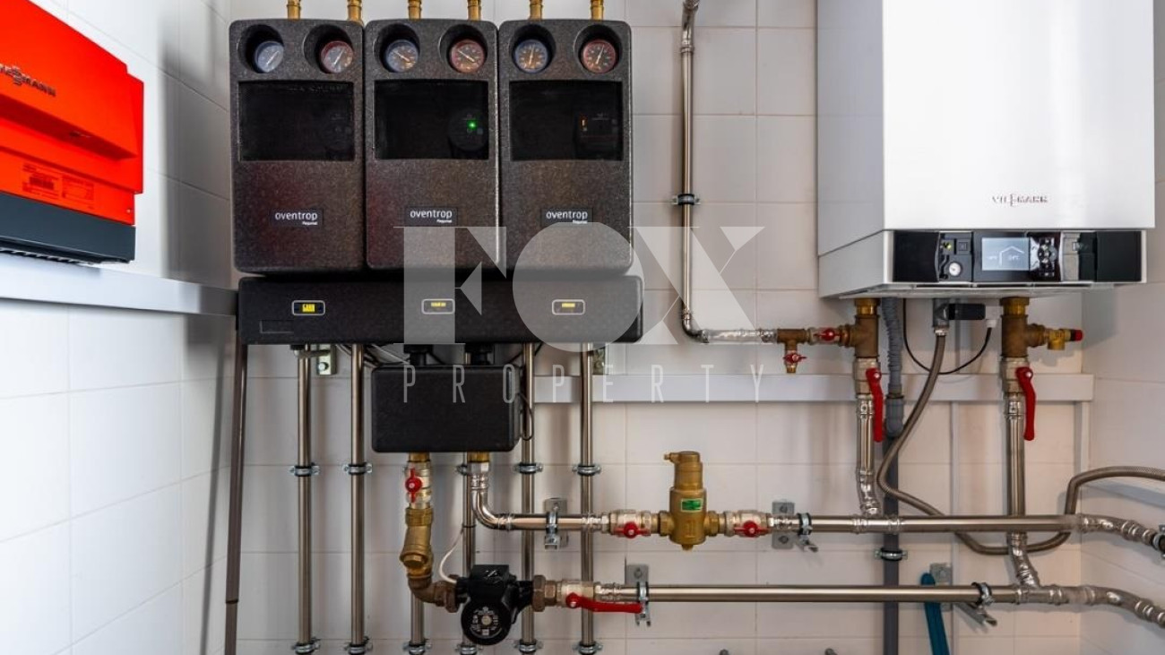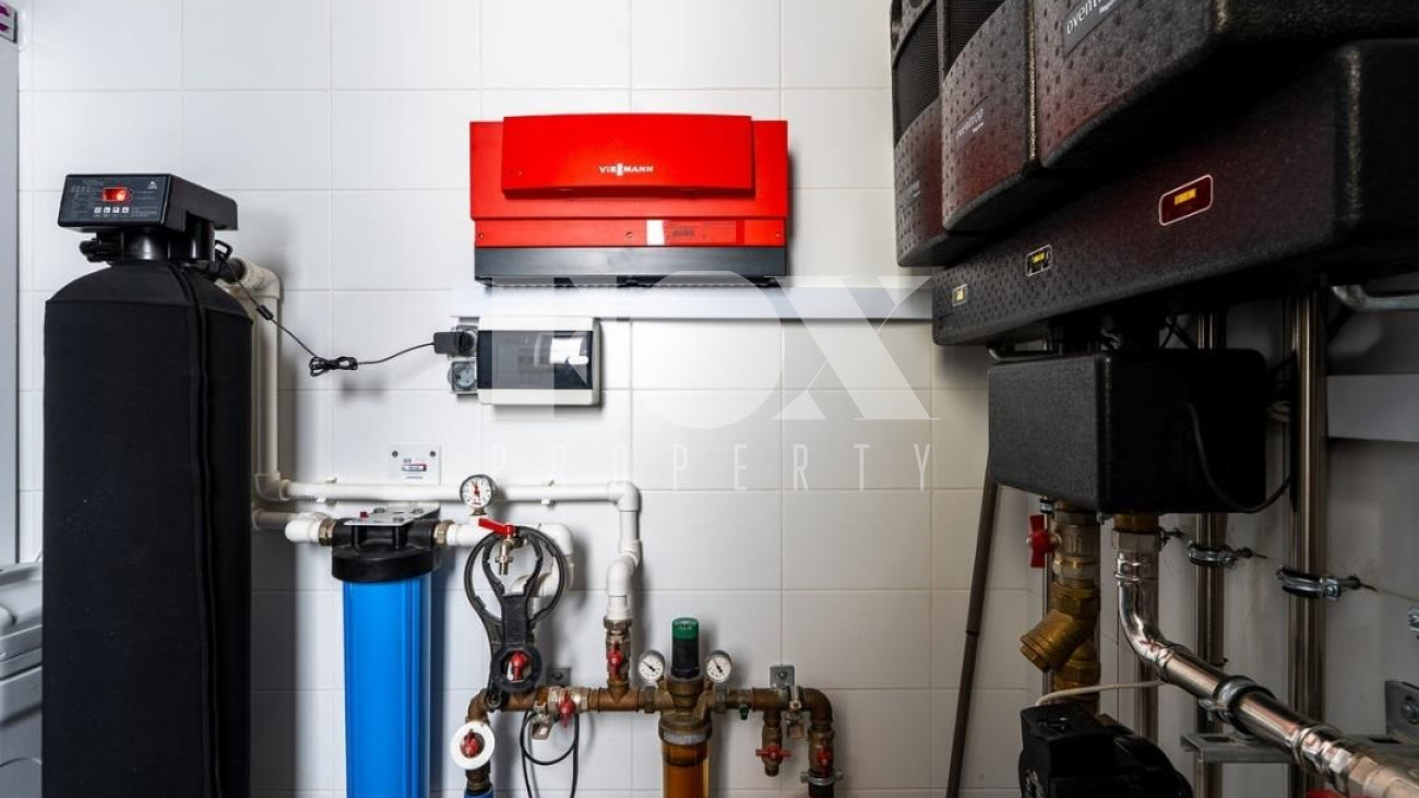 Натуральные материалы (дерево, камень), система подогрева полов, смягчение воды.