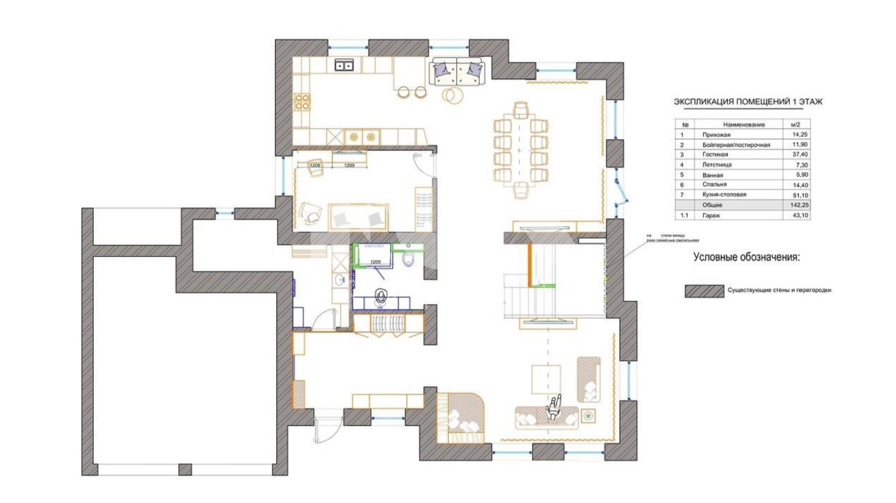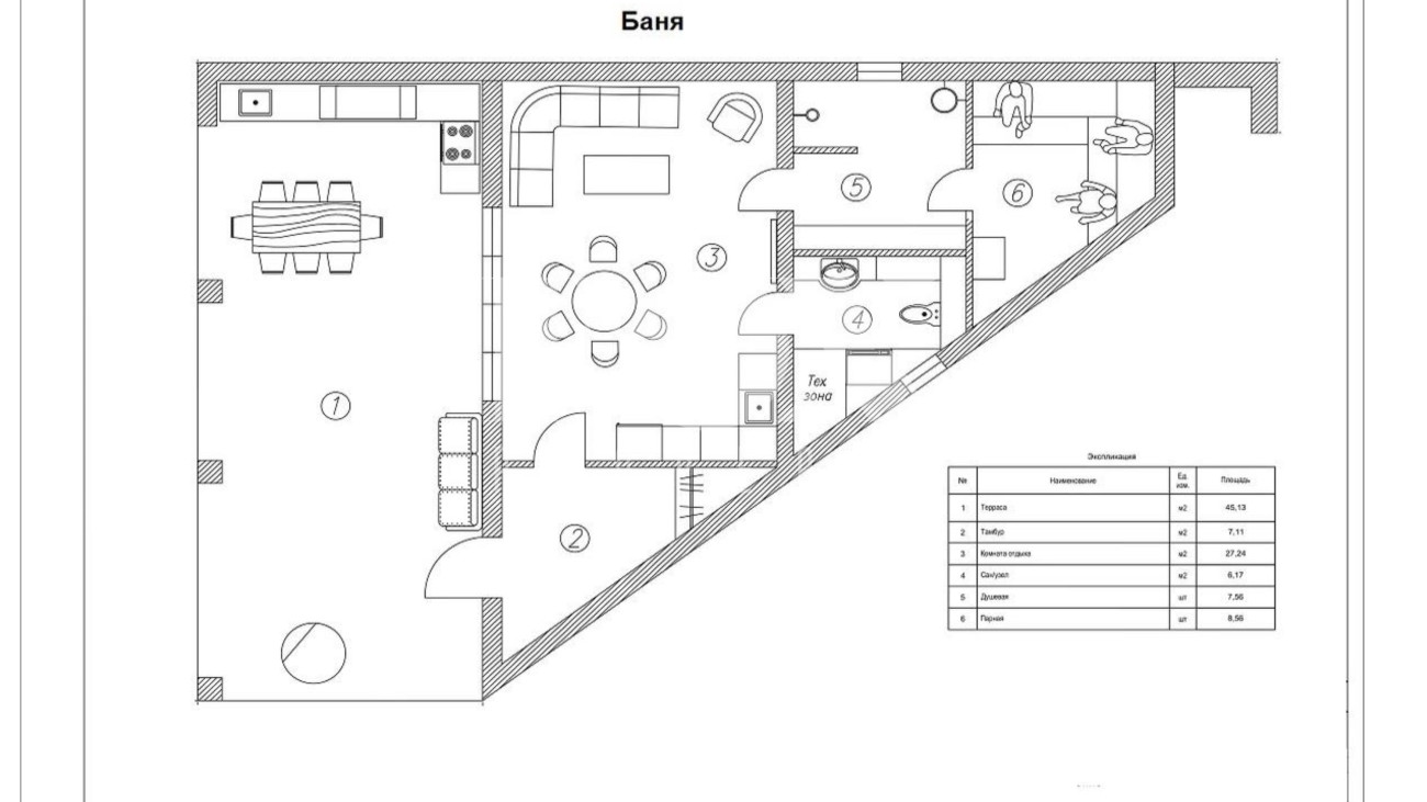 Зонирование для большой семьи (6 спален), гостей и хобби.
