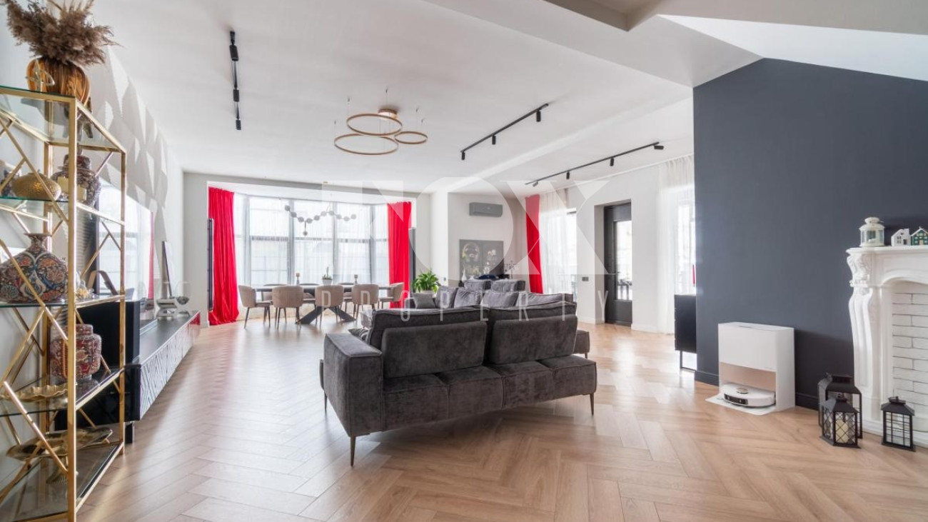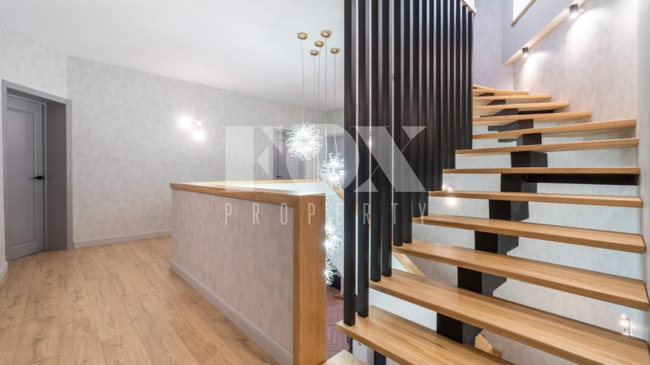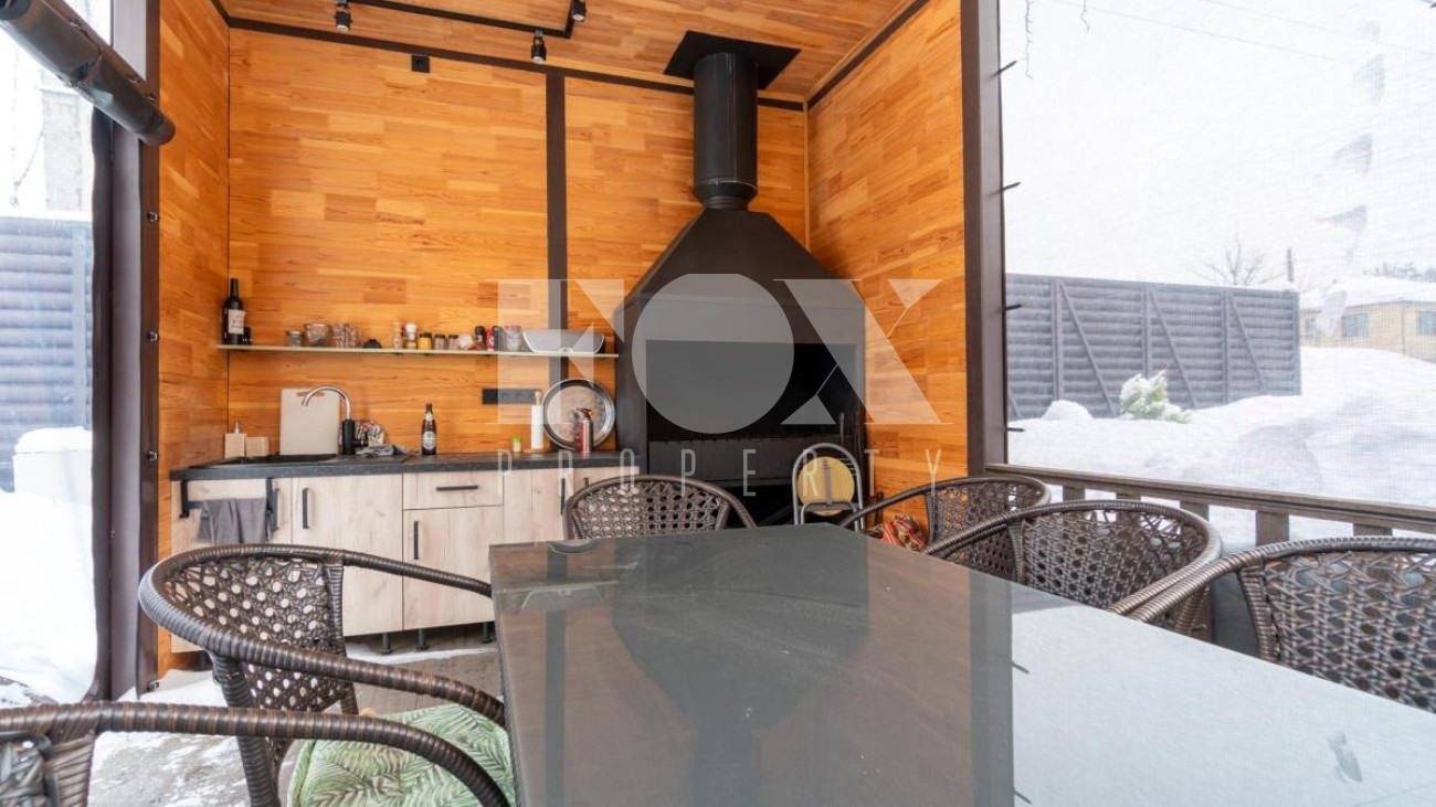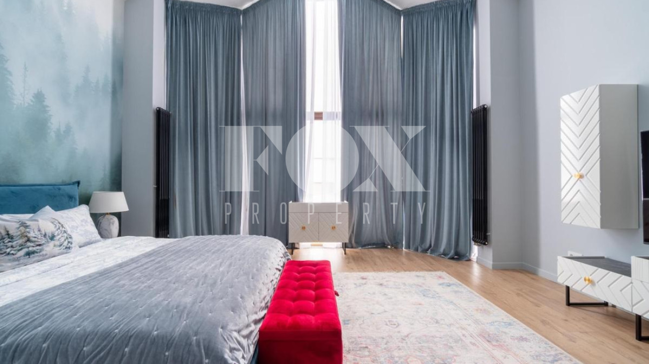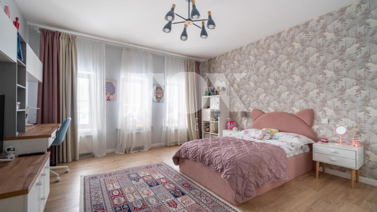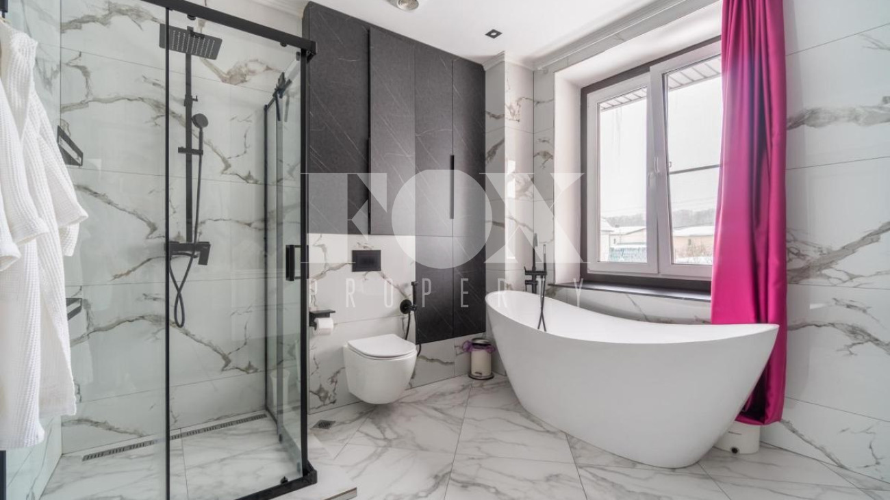 Меблированный кирпичный дом с привлекательной архитектурой в традициях альпийского шале и большой площадью остекления. Дом наполнен светом, в нём — просторные помещения, пять спален, одна из них – на первом этаже, жилые цокольный и мансардный этажи, мастер-спальня впечатляет высокими потолками. Интерьер в стиле эклектики с элементами ар-деко и лофта дополнен дизайнерскими предметами декора и мебели, декоративными фресками, 3D-панелями из ясеня, стильной удобной лестницей. Дом стоит на благоустроенном участке с высаженными туями, елями, цветочными композициями, тёплой беседкой барбекю.