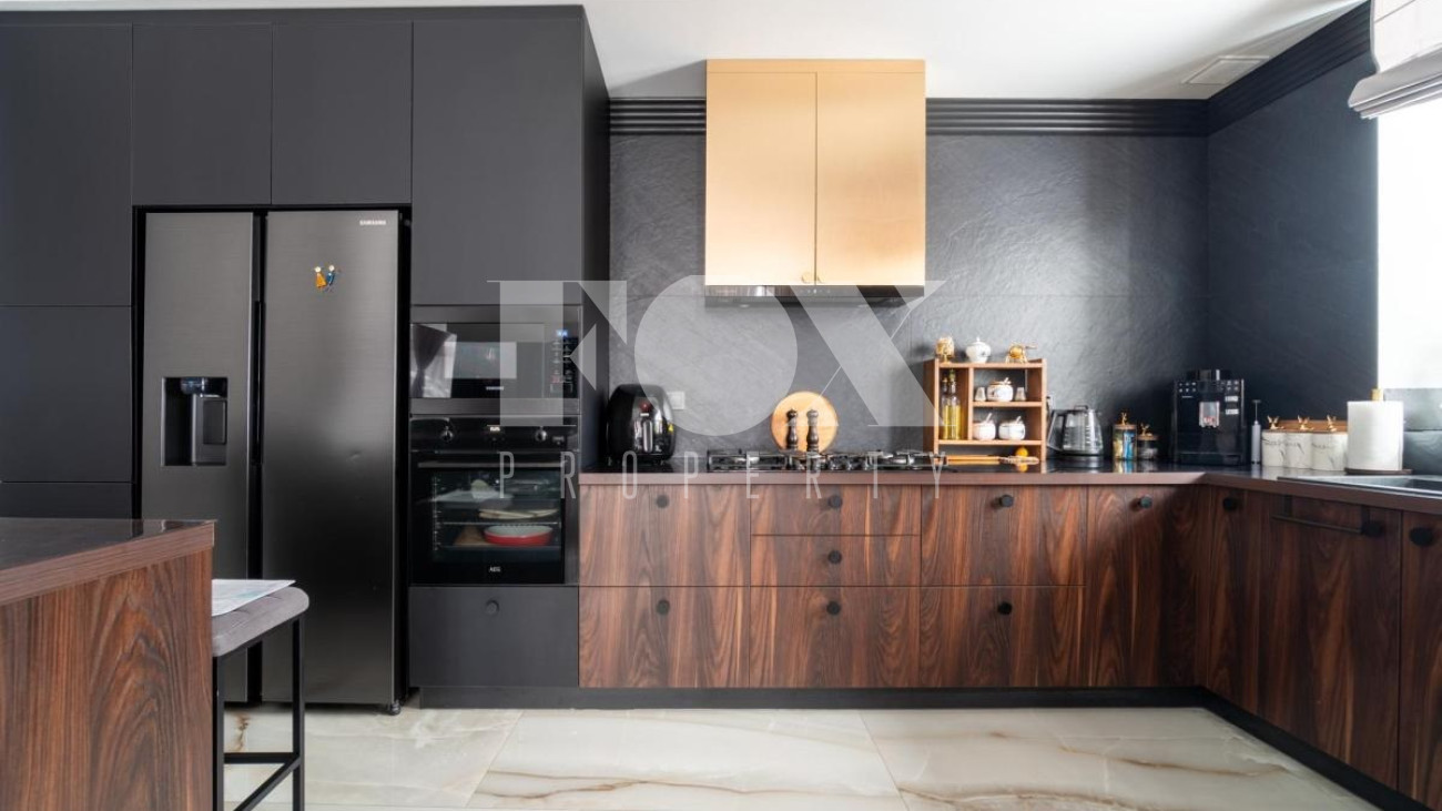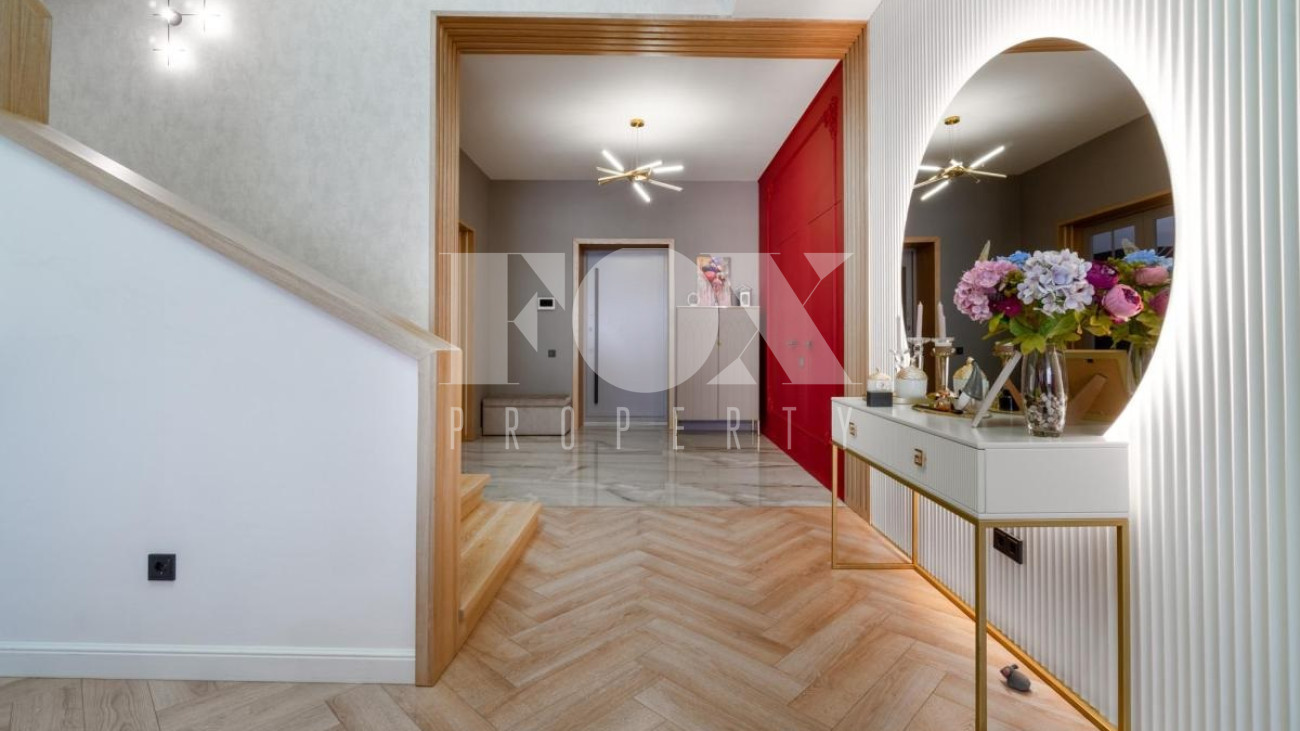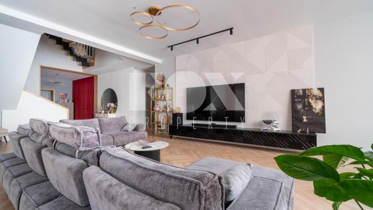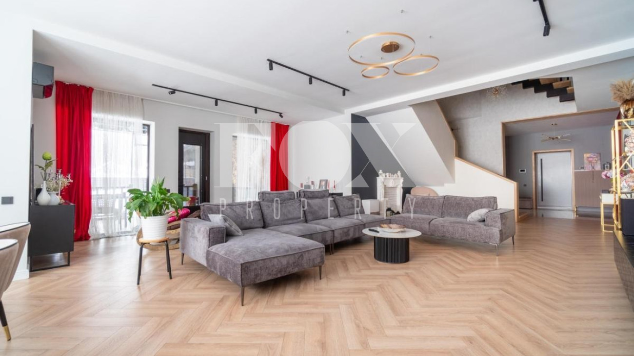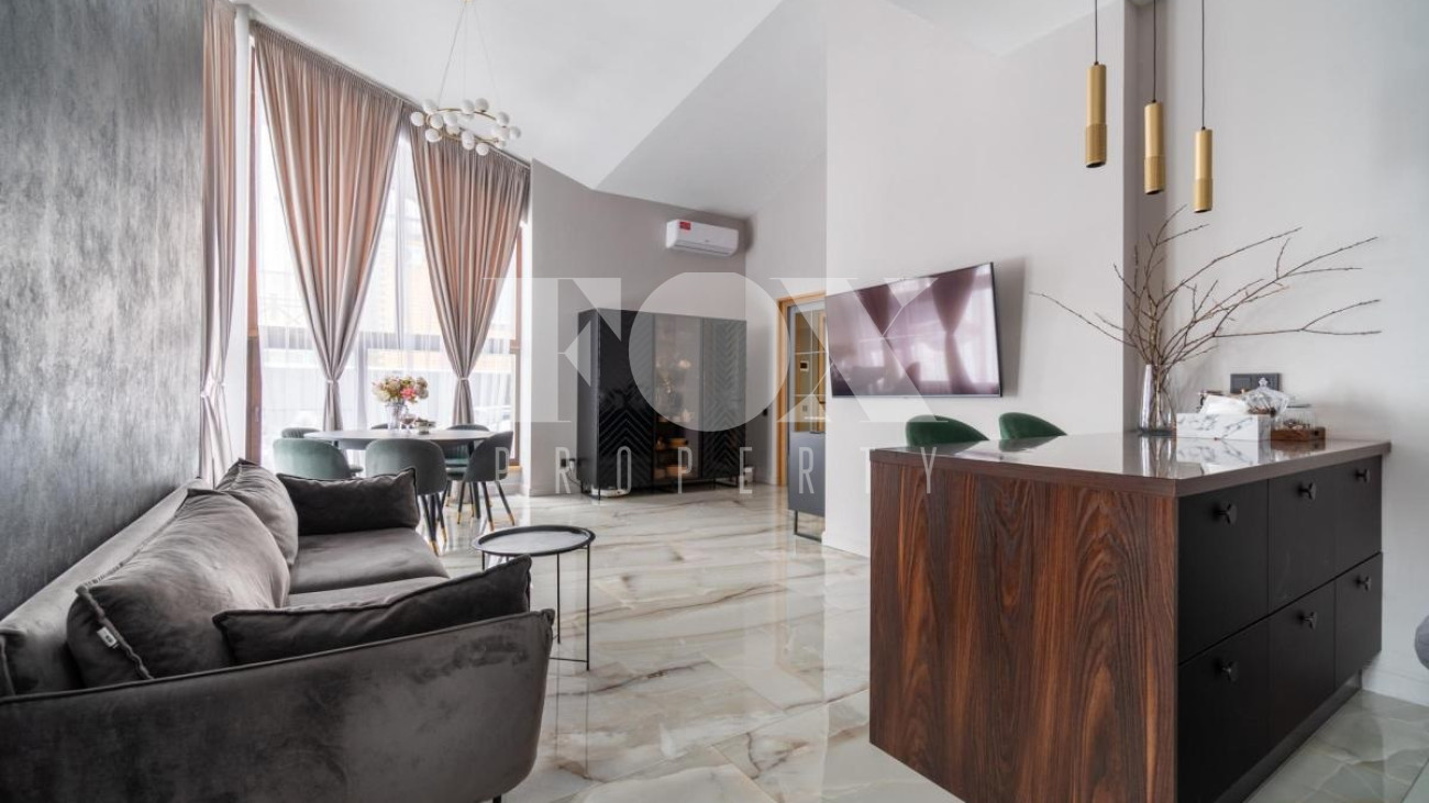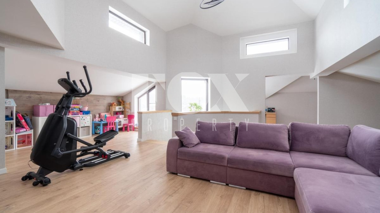 Меблированный кирпичный дом с привлекательной архитектурой в традициях альпийского шале и большой площадью остекления. Дом наполнен светом, в нём — просторные помещения, пять спален, одна из них – на первом этаже, жилые цокольный и мансардный этажи, мастер-спальня впечатляет высокими потолками. Интерьер в стиле эклектики с элементами ар-деко и лофта дополнен дизайнерскими предметами декора и мебели, декоративными фресками, 3D-панелями из ясеня, стильной удобной лестницей. Дом стоит на благоустроенном участке с высаженными туями, елями, цветочными композициями, тёплой беседкой барбекю.