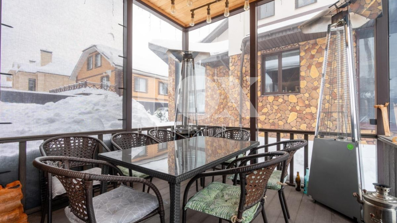 Меблированный кирпичный дом с привлекательной архитектурой в традициях альпийского шале