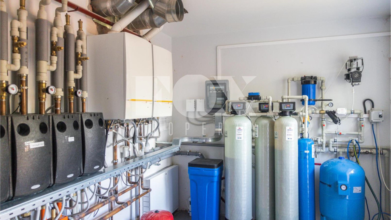 Инженерные системы смонтированы и запущены: Отопление обеспечивают два котла французской фирмы De Dietrich MCA 35, которые отслеживают внешнюю и внутреннюю температуру и регулируют климат помещений в автоматическом режиме. Бойлер косвенного нагрева воды De Dietrich.