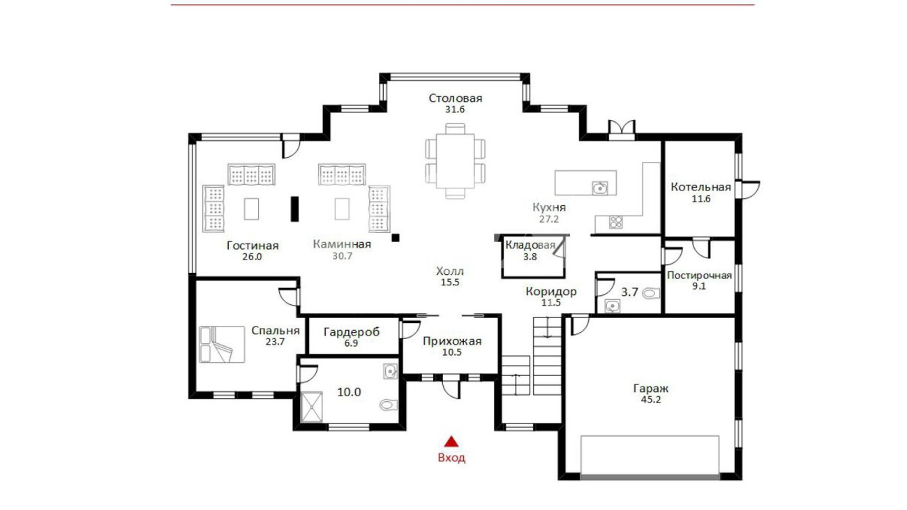 Шестиметровые окна гостиной позволят создать эксклюзивный, презентабельный дизайн помещений гостиной группы.