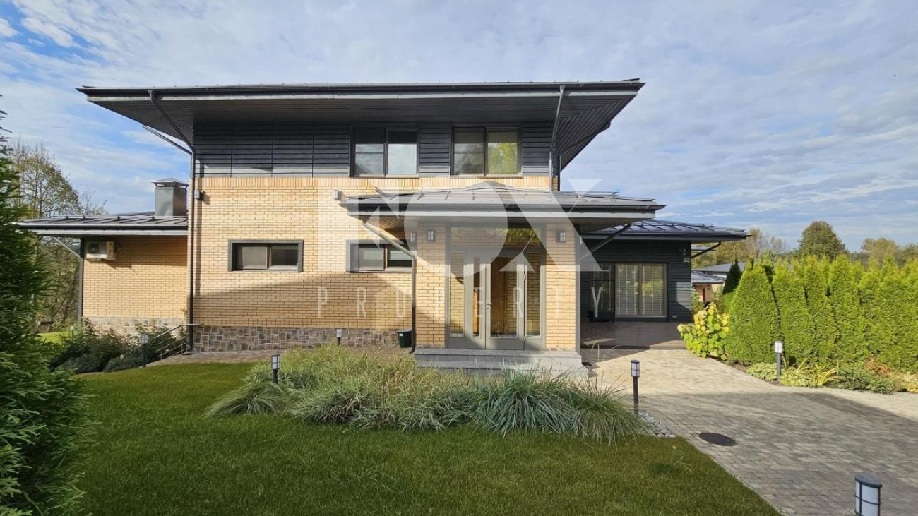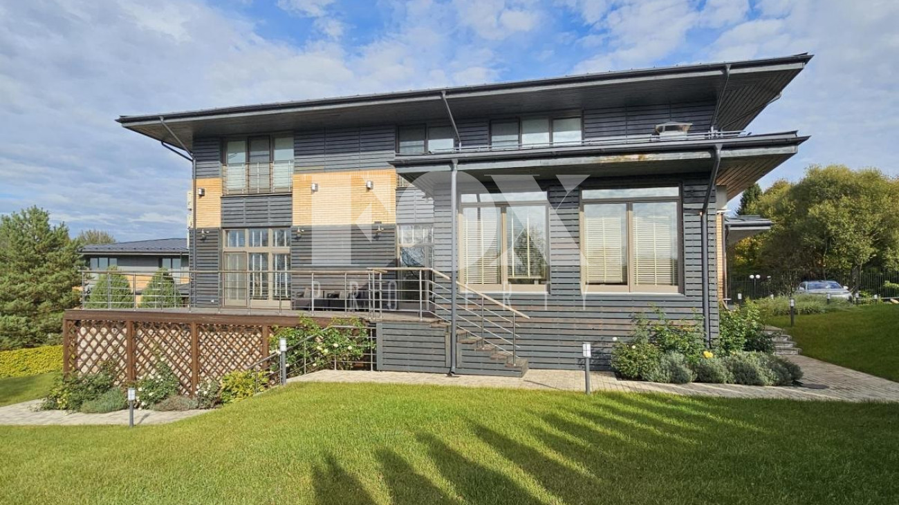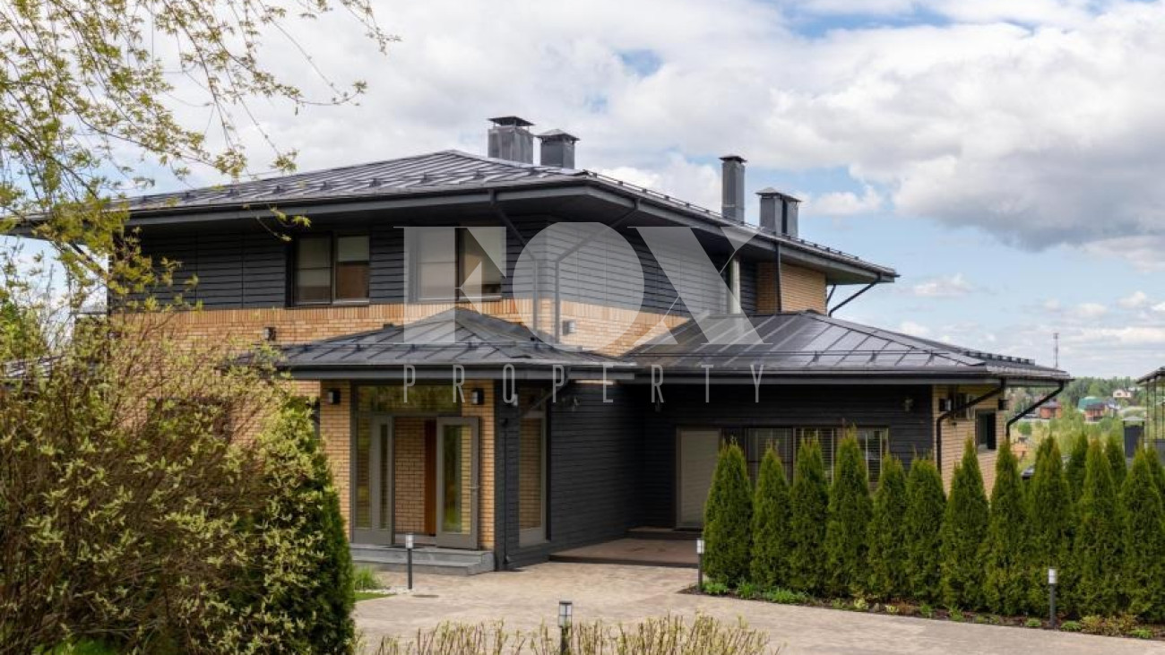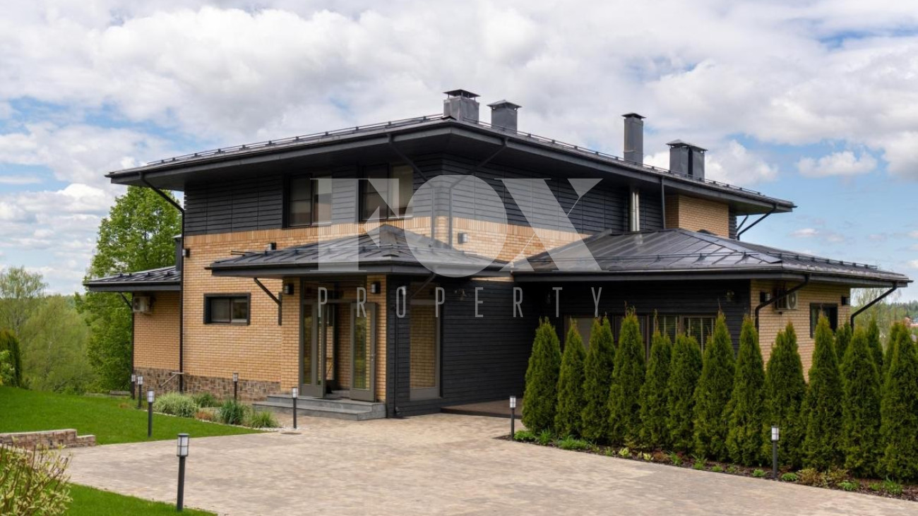 Новый элитный видовой дом на высоком берегу реки Пахра, архитектура в духе Фрэнка Ллойда Райта, с панорамными террасами: с одной из них открывается захватывающий вид на запад на несколько километров, создающий ощущение полёта. Дом сочетает высокое качество строительства, премиальные материалы, большие окна из лиственницы, все спальни со своими санузлами и гардеробными, есть гостевой блок, спа-зона, купель. Отделка и меблировка выполнены в скандинавском стиле в светлых тонах с природной эстетикой: в доме много света, натуральные дорогостоящие материалы, мебель из массива дерева. Дом стоит на просторном лесном двухуровневом участке с профессиональным ландшафтом, с выходом к реке, в клубном коттеджном посёлке премиум- класса с богатой собственной инфраструктурой.