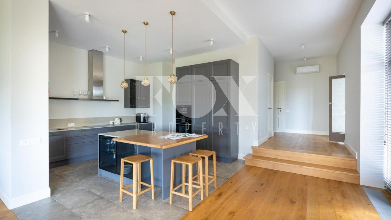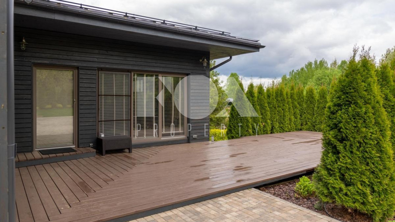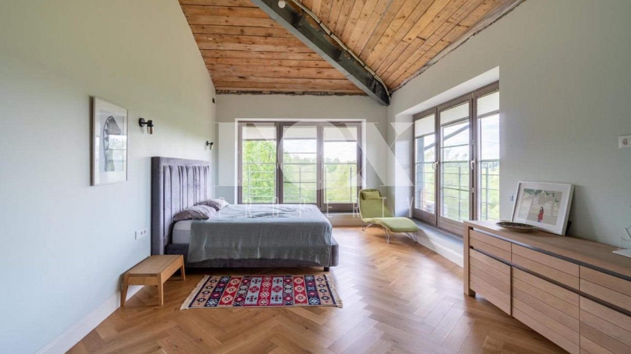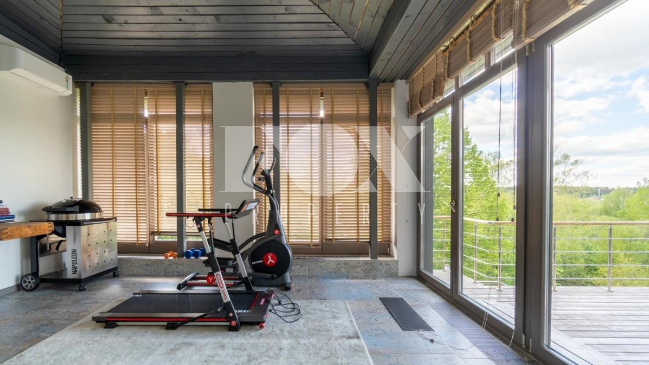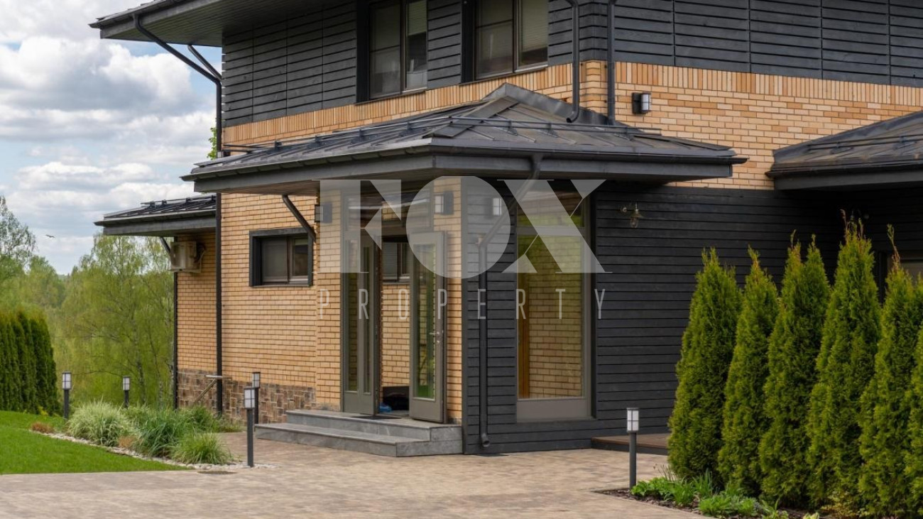 Новый элитный видовой дом на высоком берегу реки Пахра, архитектура в духе Фрэнка Ллойда Райта, с панорамными террасами: с одной из них открывается захватывающий вид на запад на несколько километров, создающий ощущение полёта. Дом сочетает высокое качество строительства, премиальные материалы, большие окна из лиственницы, все спальни со своими санузлами и гардеробными, есть гостевой блок, спа-зона, купель. Отделка и меблировка выполнены в скандинавском стиле в светлых тонах с природной эстетикой: в доме много света, натуральные дорогостоящие материалы, мебель из массива дерева. Дом стоит на просторном лесном двухуровневом участке с профессиональным ландшафтом, с выходом к реке, в клубном коттеджном посёлке премиум- класса с богатой собственной инфраструктурой.