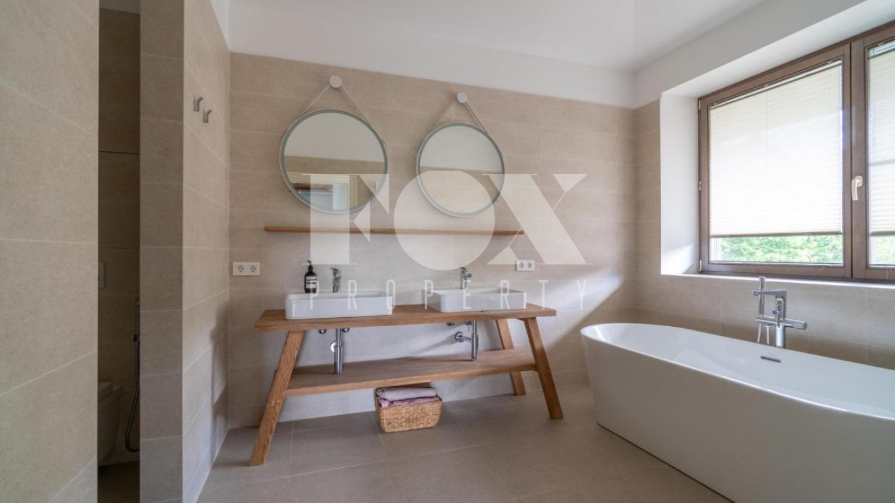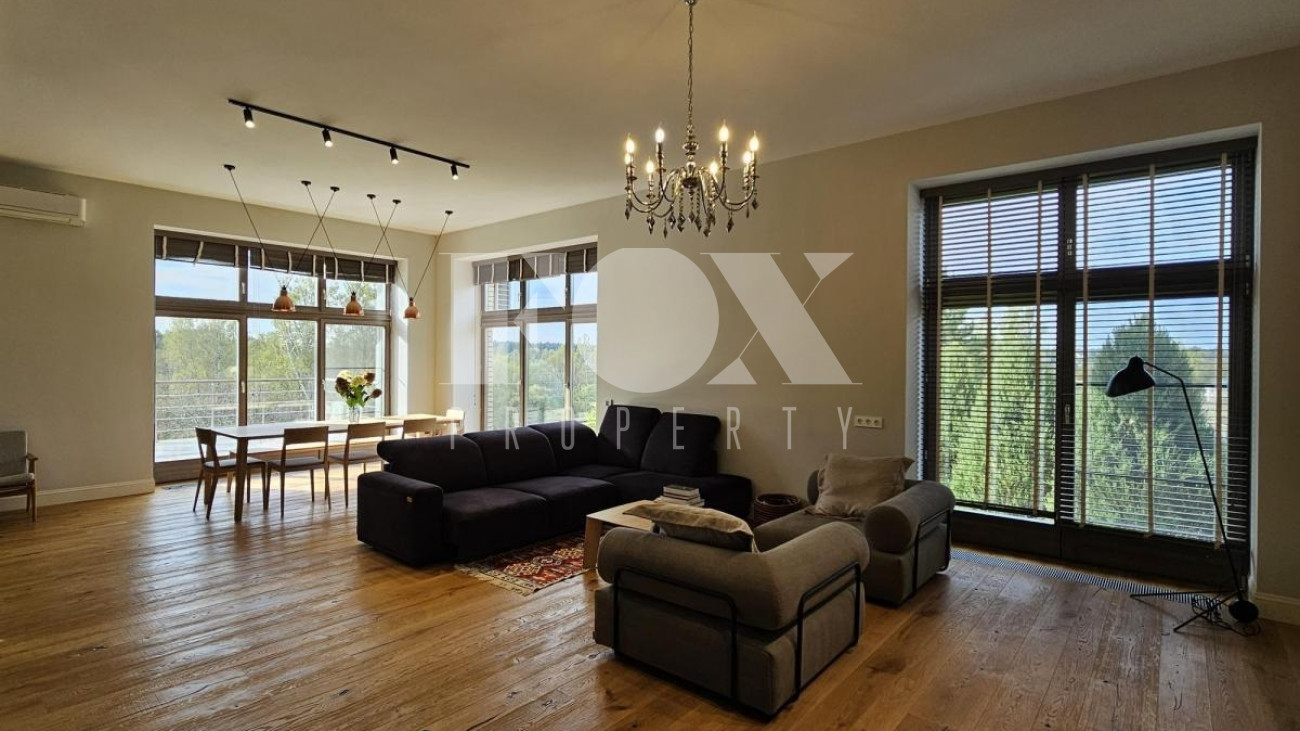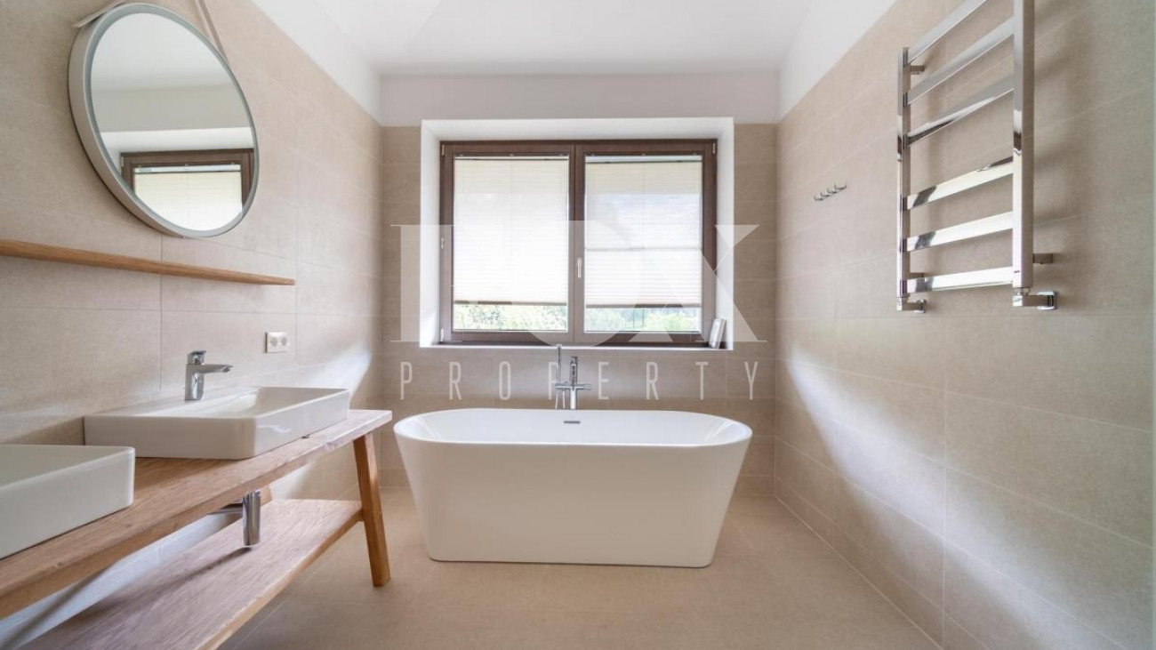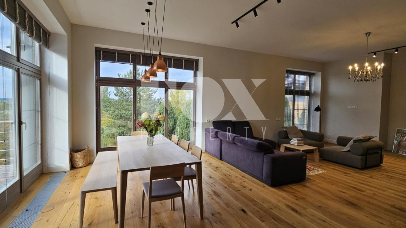 Новый элитный видовой дом на высоком берегу реки Пахра, архитектура в духе Фрэнка Ллойда Райта, с панорамными террасами: с одной из них открывается захватывающий вид на запад на несколько километров, создающий ощущение полёта. Дом сочетает высокое качество строительства, премиальные материалы, большие окна из лиственницы, все спальни со своими санузлами и гардеробными, есть гостевой блок, спа-зона, купель. Отделка и меблировка выполнены в скандинавском стиле в светлых тонах с природной эстетикой: в доме много света, натуральные дорогостоящие материалы, мебель из массива дерева. Дом стоит на просторном лесном двухуровневом участке с профессиональным ландшафтом, с выходом к реке, в клубном коттеджном посёлке премиум- класса с богатой собственной инфраструктурой.