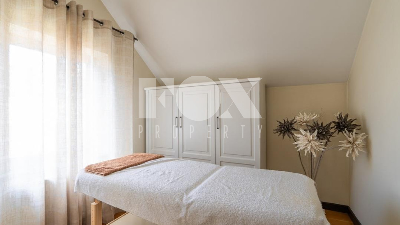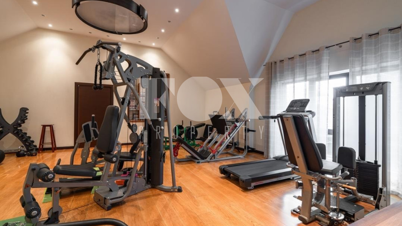 На втором этаже уютная комната для массажа, просторный тренажерный зал, вместительная гардеробная комната.