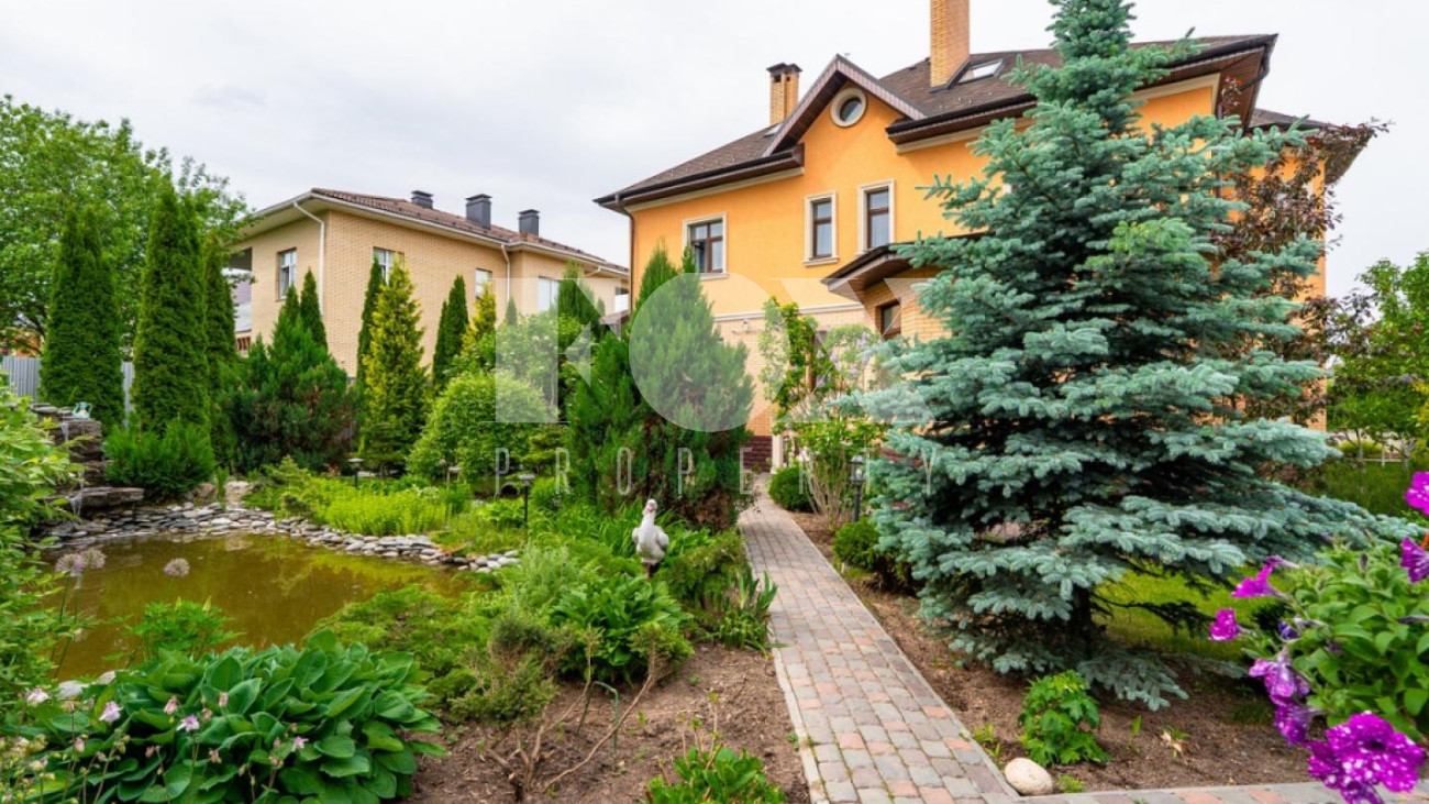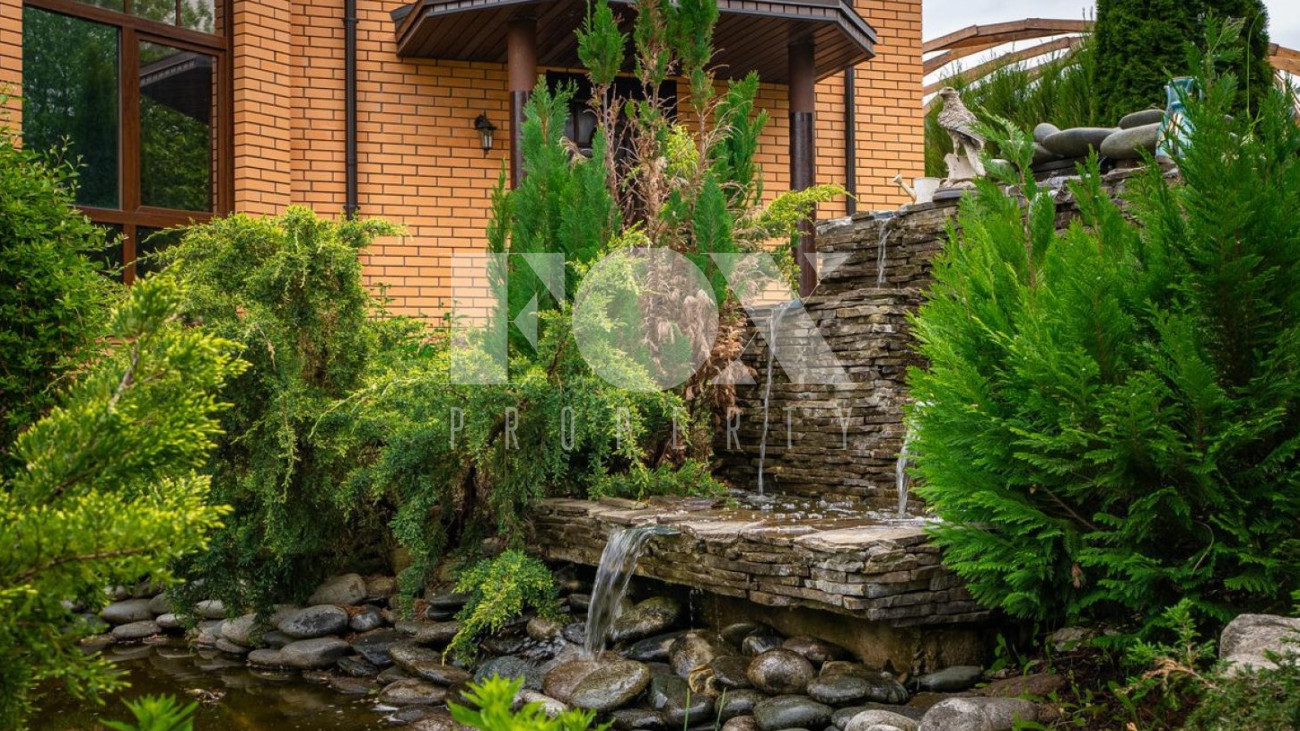 • Живописный ландшафтный дизайн со взрослыми туями, голубыми елями, плодовыми деревьями и кустарниками