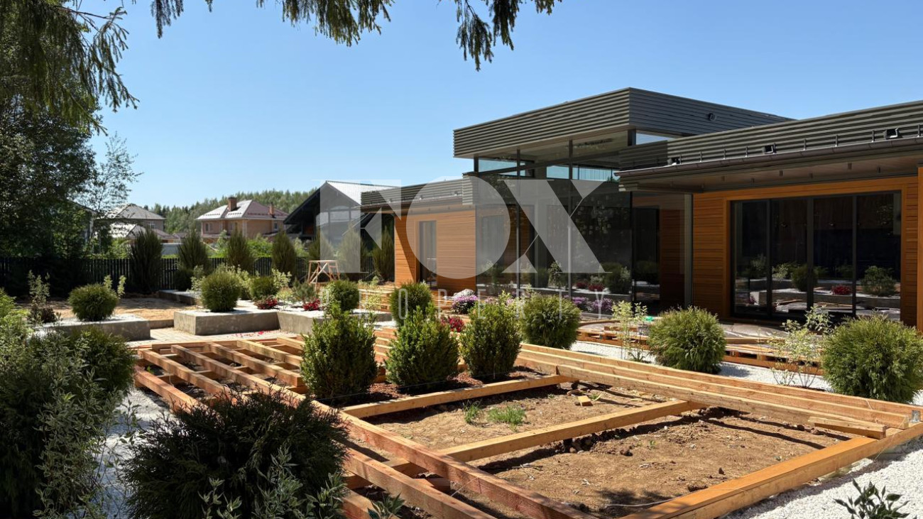 Современный одноэтажный дом на прилесном участке в поселке «Природный парк Каменка». Высокие потолки -до 4.8 м., большая площадь остекления. Дорогие отделочные материалы и техника ведущих мировых производителей.