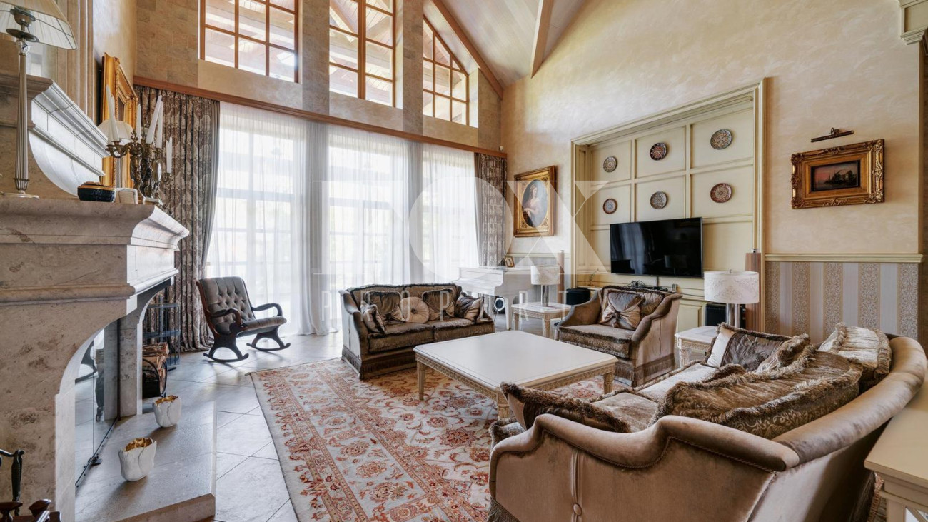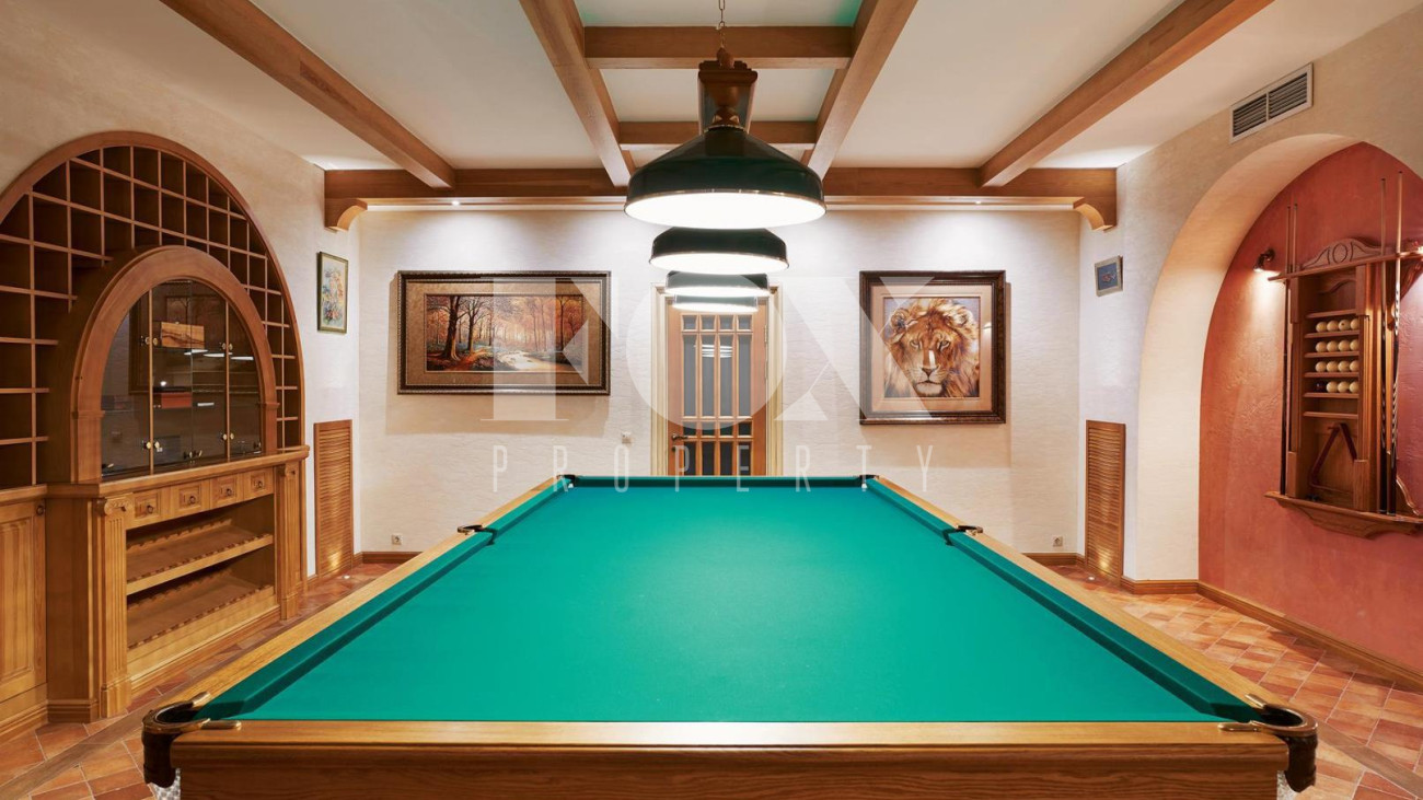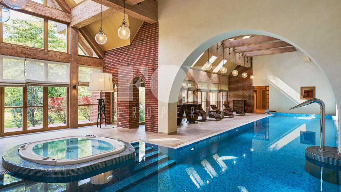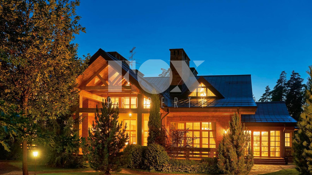 Расположенная на просторном участке 50 соток, загородная резиденция объединяет 4 архитектурных объекта в едином стиле швейцарского шале: трехуровневый жилой дом, двухуровневый SPA-комплекс, дом для персонала и гараж с постом охраны.