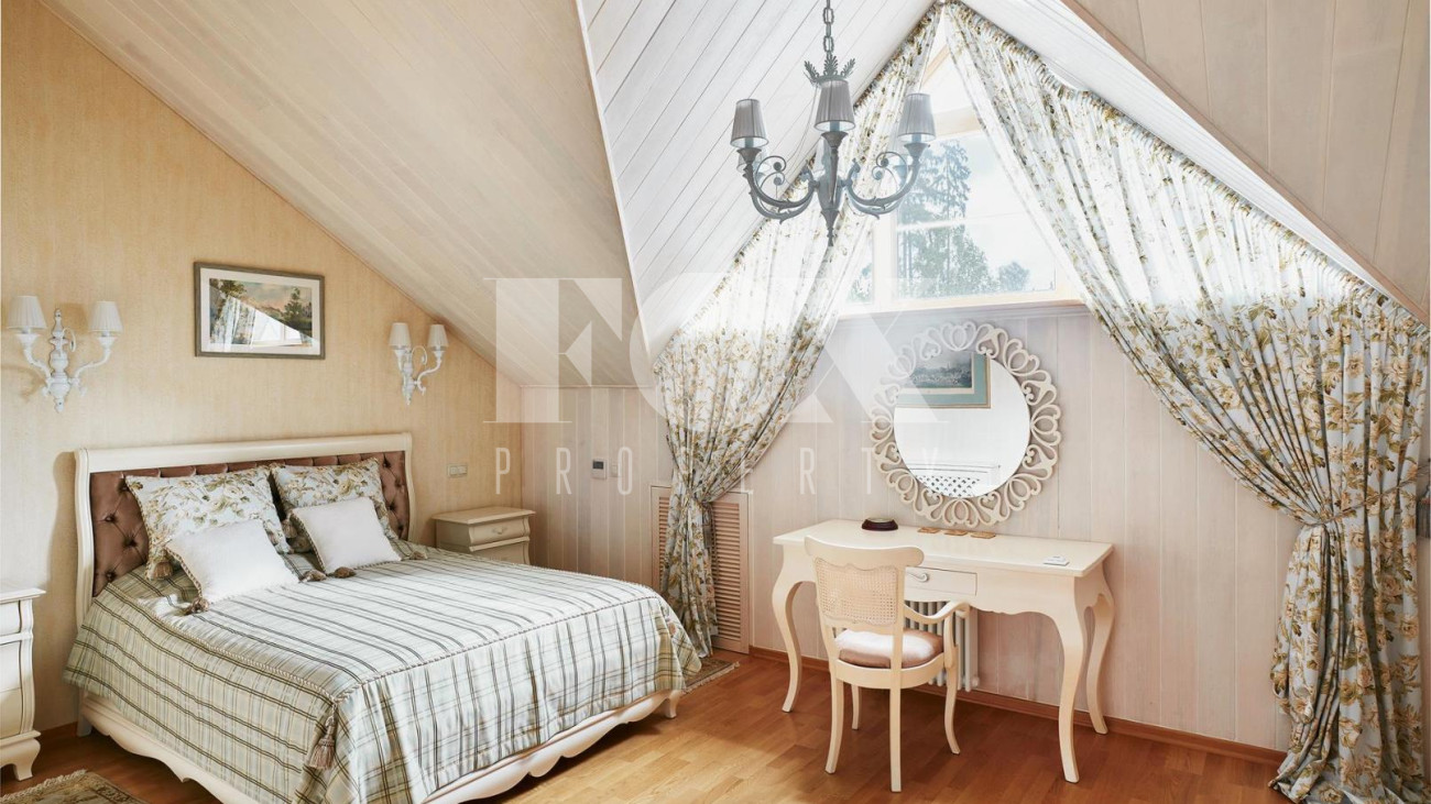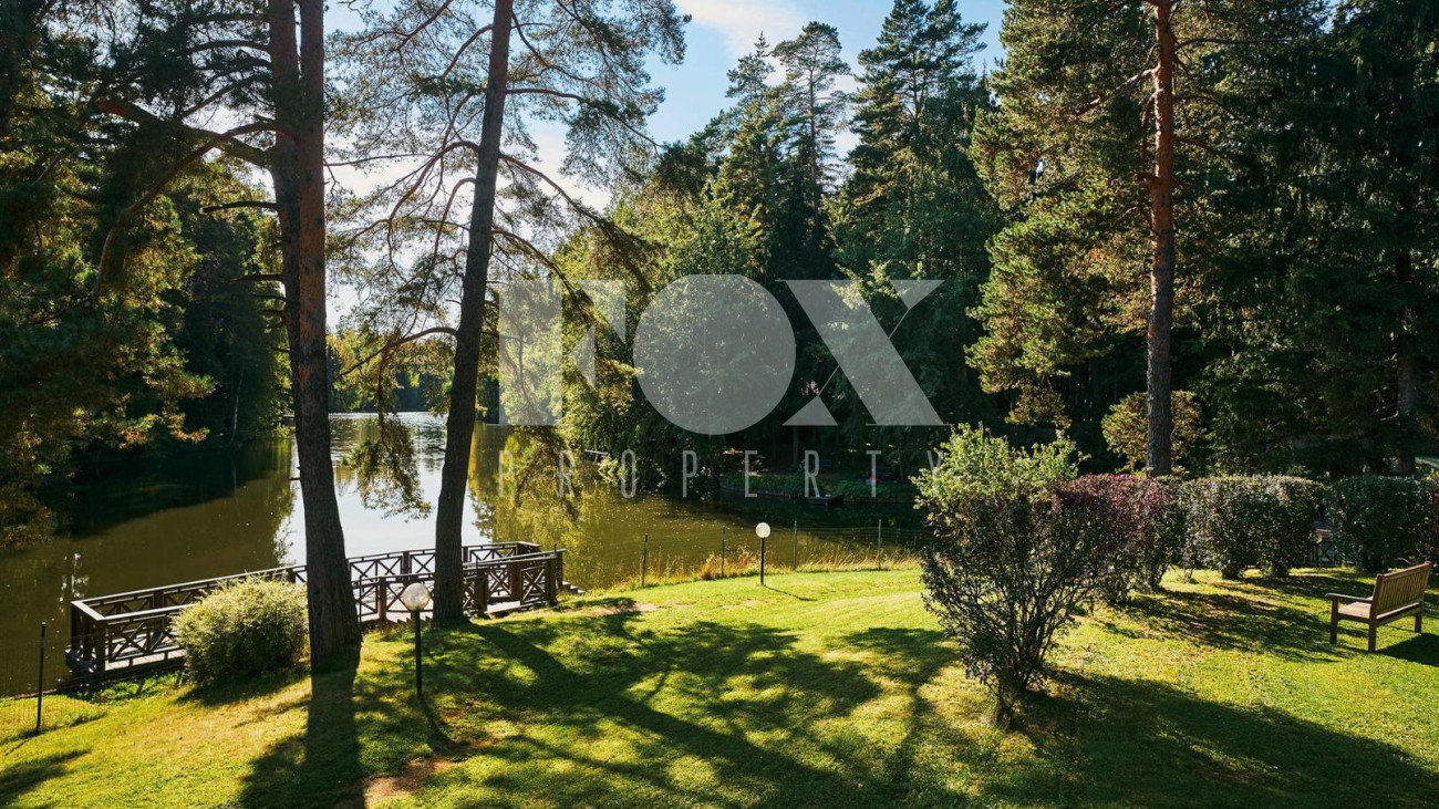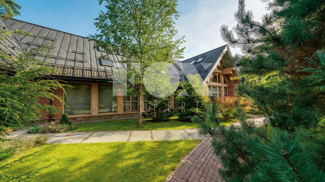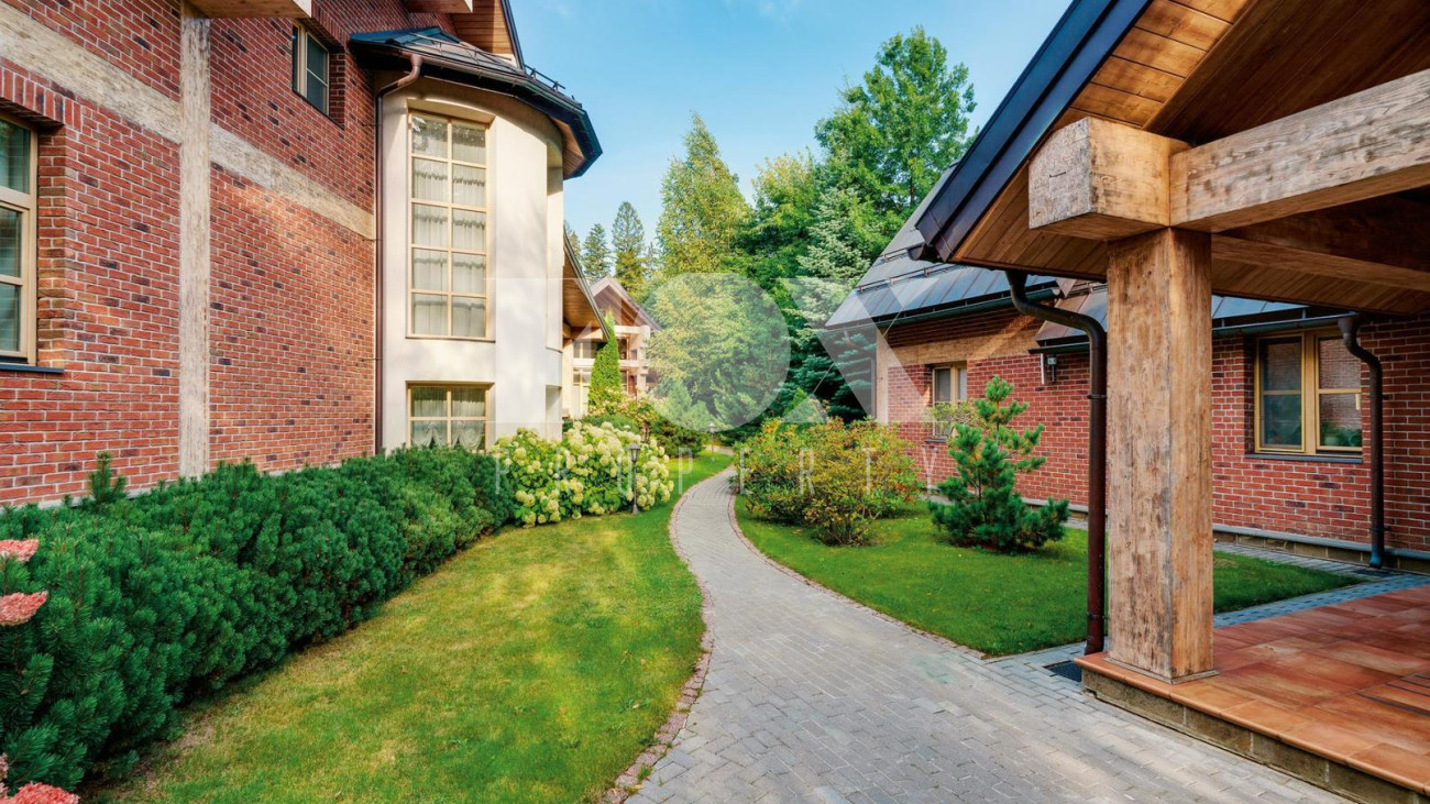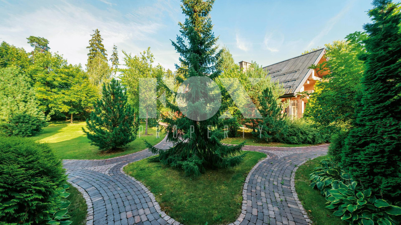 На обширном участке выполнен прекрасный ландшафтный дизайн - настоящий собственный парк, где всегда много солнечного света. Мощёные дорожки извиваются среди лужаек, многочисленных раскидистых деревьев и кустарников. Перед гаражом организована большая площадка для парковки.