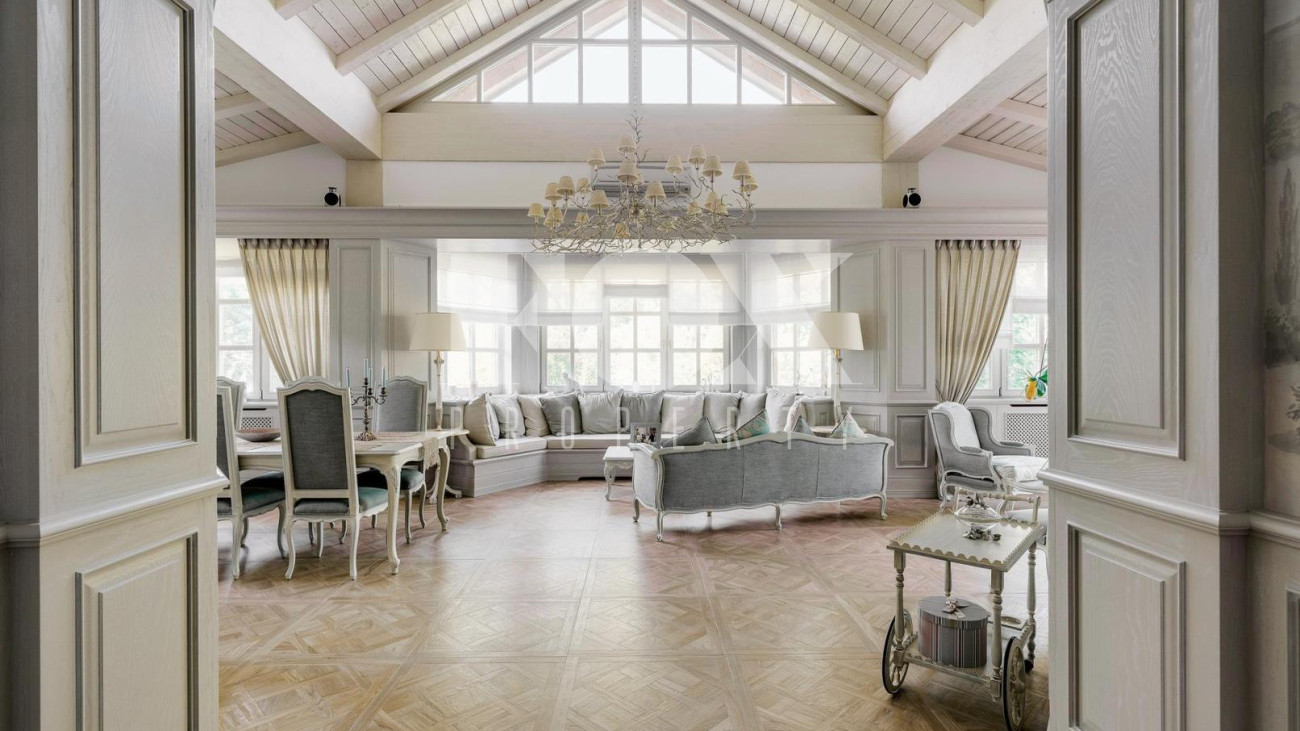 Жилой дом площадью 1185 м² наполнен естественным светом благодаря панорамным окнам, второму свету в гостиной и высоким потолкам.