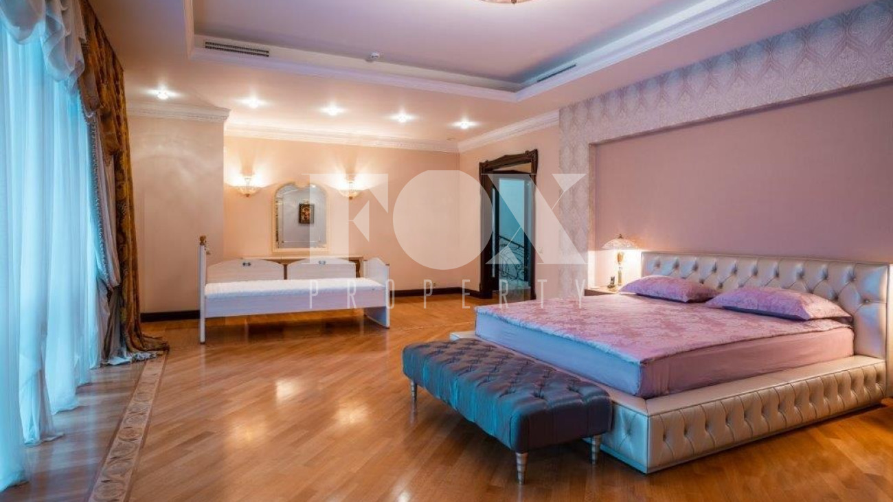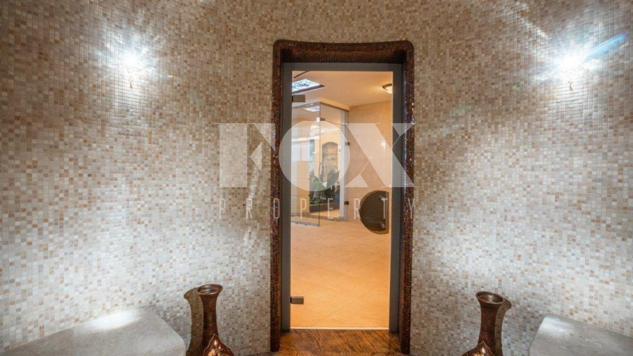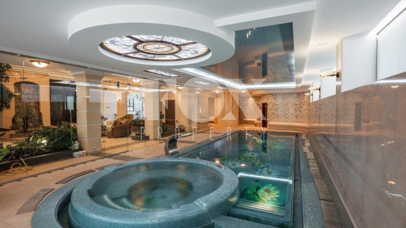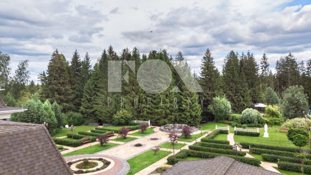К услугам жильцов и гостей 8 спален со своими санузлами, 5 отдельных санузлов, гостевая зона с камином, плавательный бассейн и хамам.