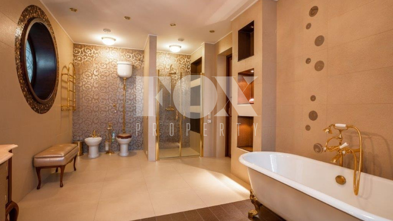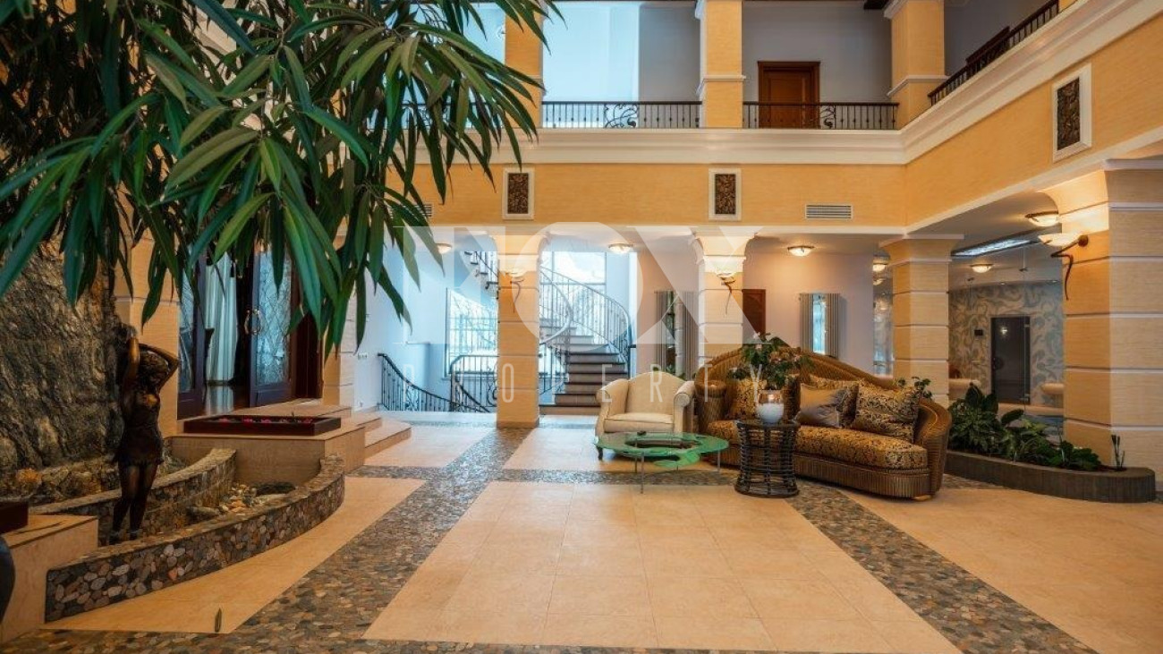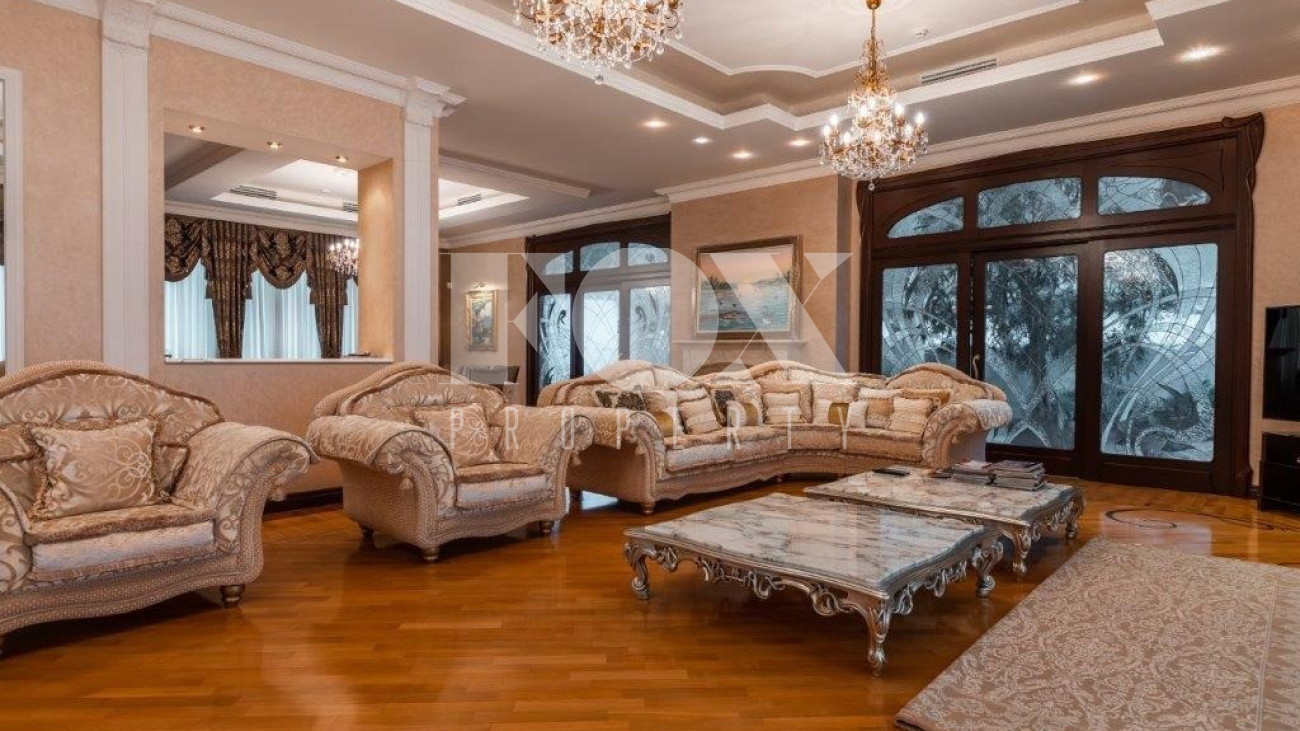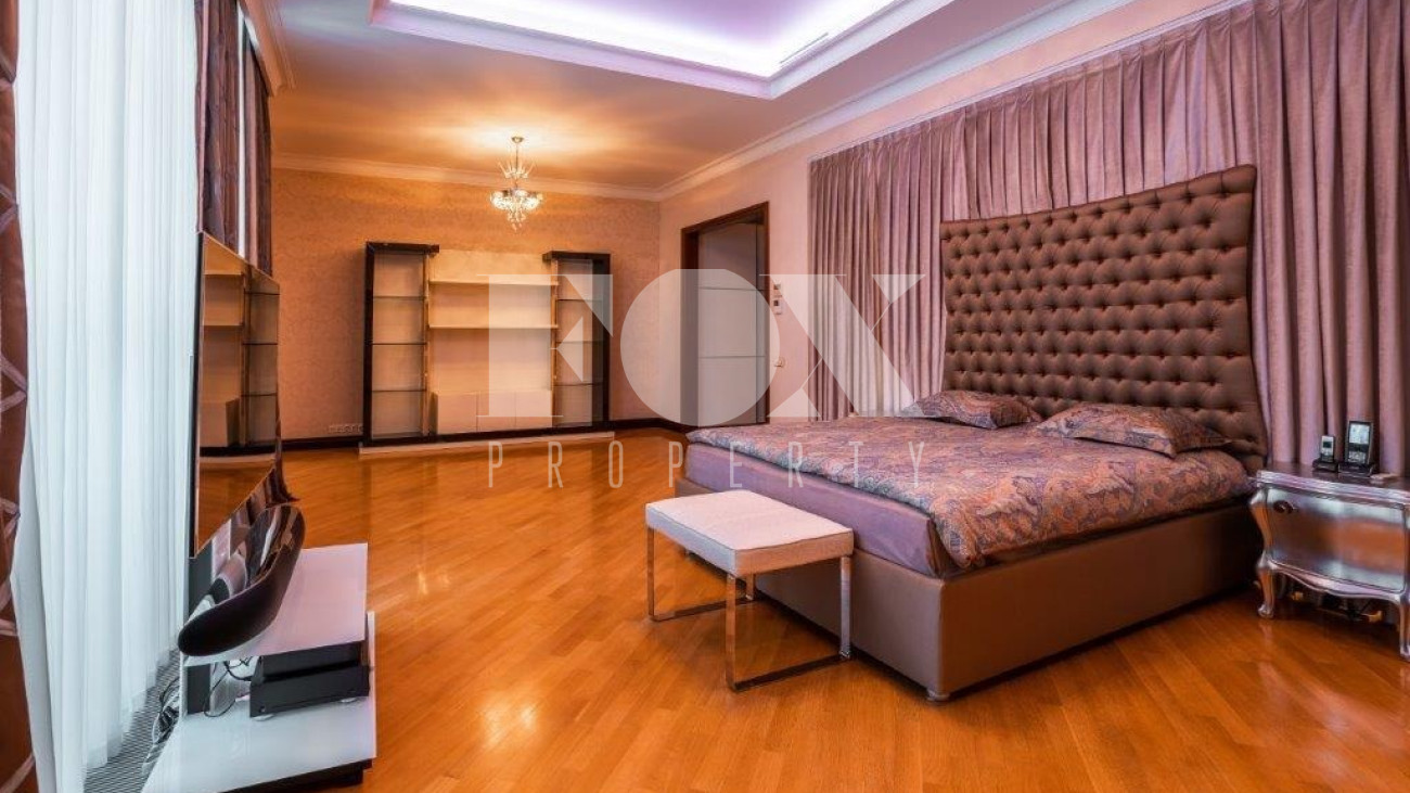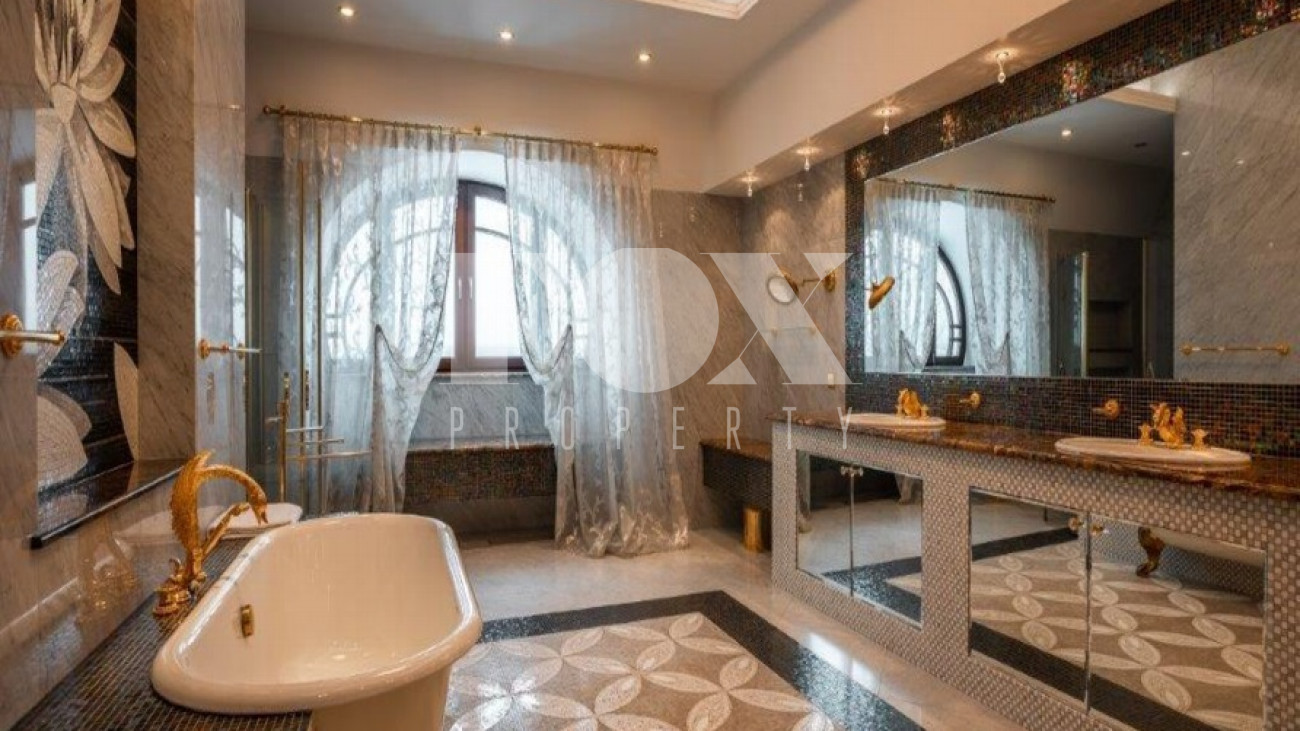 К услугам жильцов и гостей 8 спален со своими санузлами, 5 отдельных санузлов, гостевая зона с камином, плавательный бассейн и хамам.