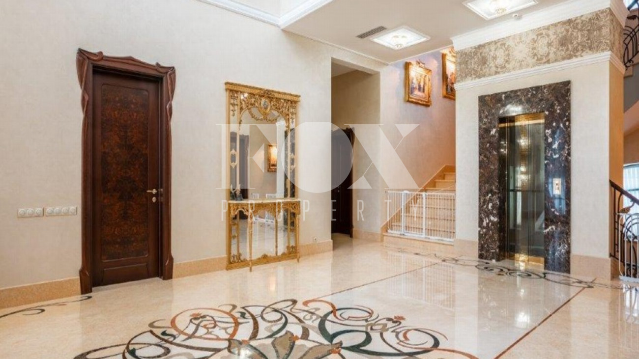 В отделке использованы только качественные и натуральные материалы • Внутренне пространство дома разделено на несколько объемов, связанных между собой кованной лестницей и стеклянным лифтом.