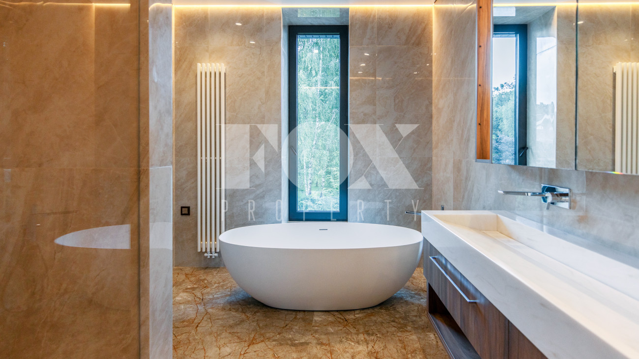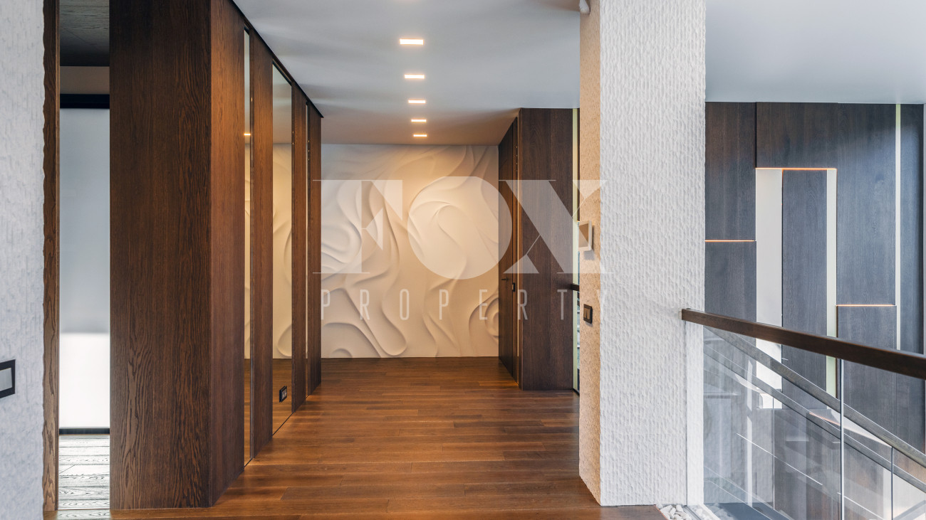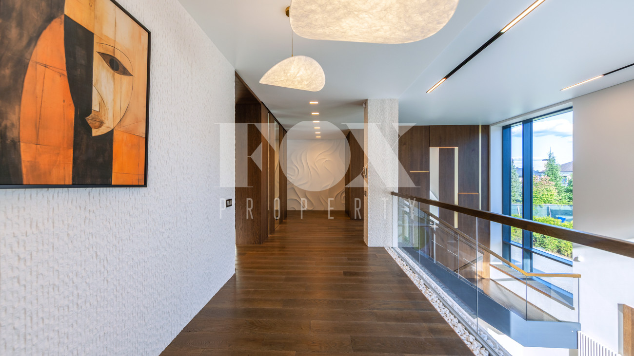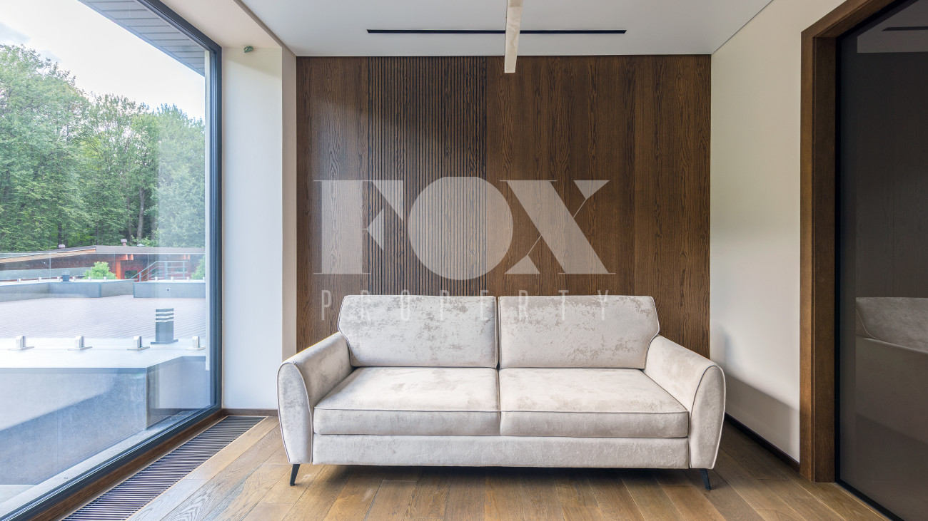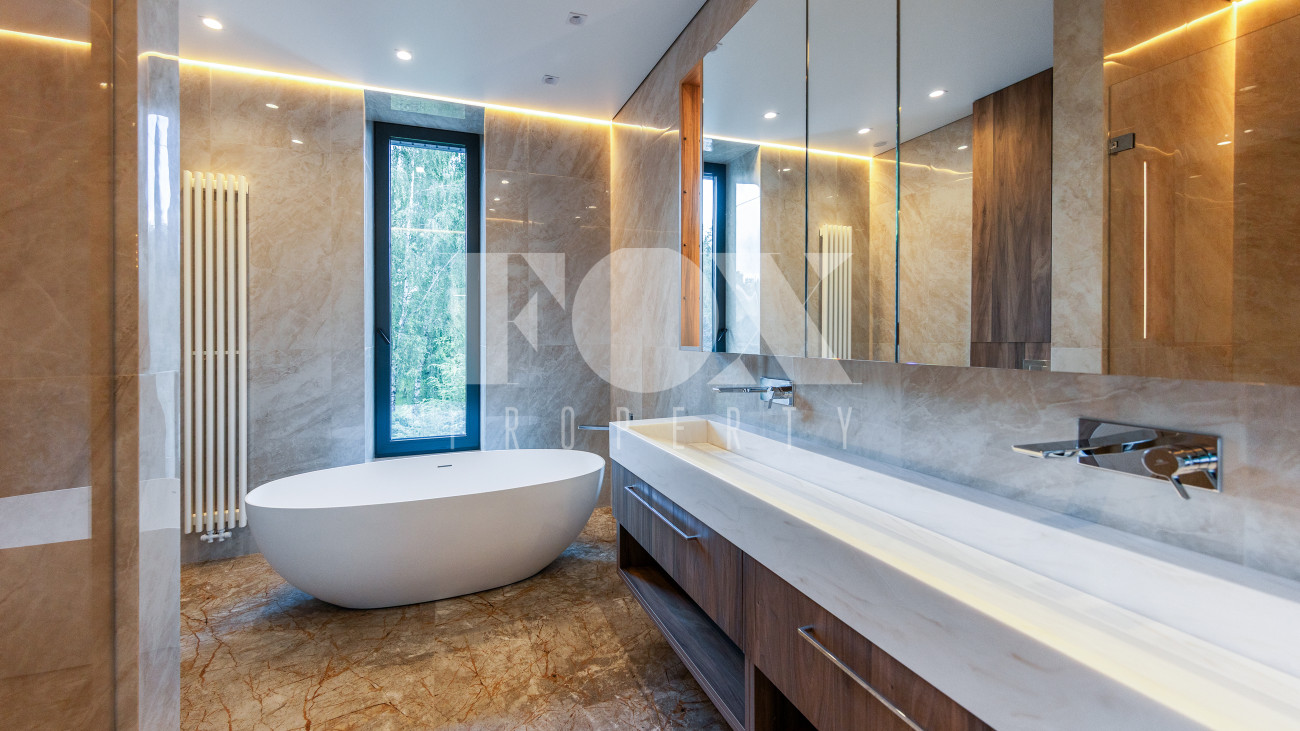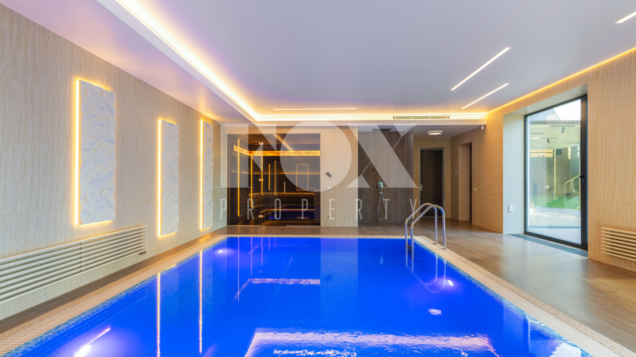 В доме имеется спа-зона, включающая в себя сауну и бассейн 7*4 с противотоком и подсветкой. Бассейн оснащен инновационной системой очистки NECON. Кристально чистая вода без хлора и химических запахов обеспечивает максимальную безопасность для всей семьи, а технология ионов меди и цинка сохраняет её прозрачность годами. Благодаря пролонгирующему эффекту и защите оборудования, бассейн требует минимального обслуживания.