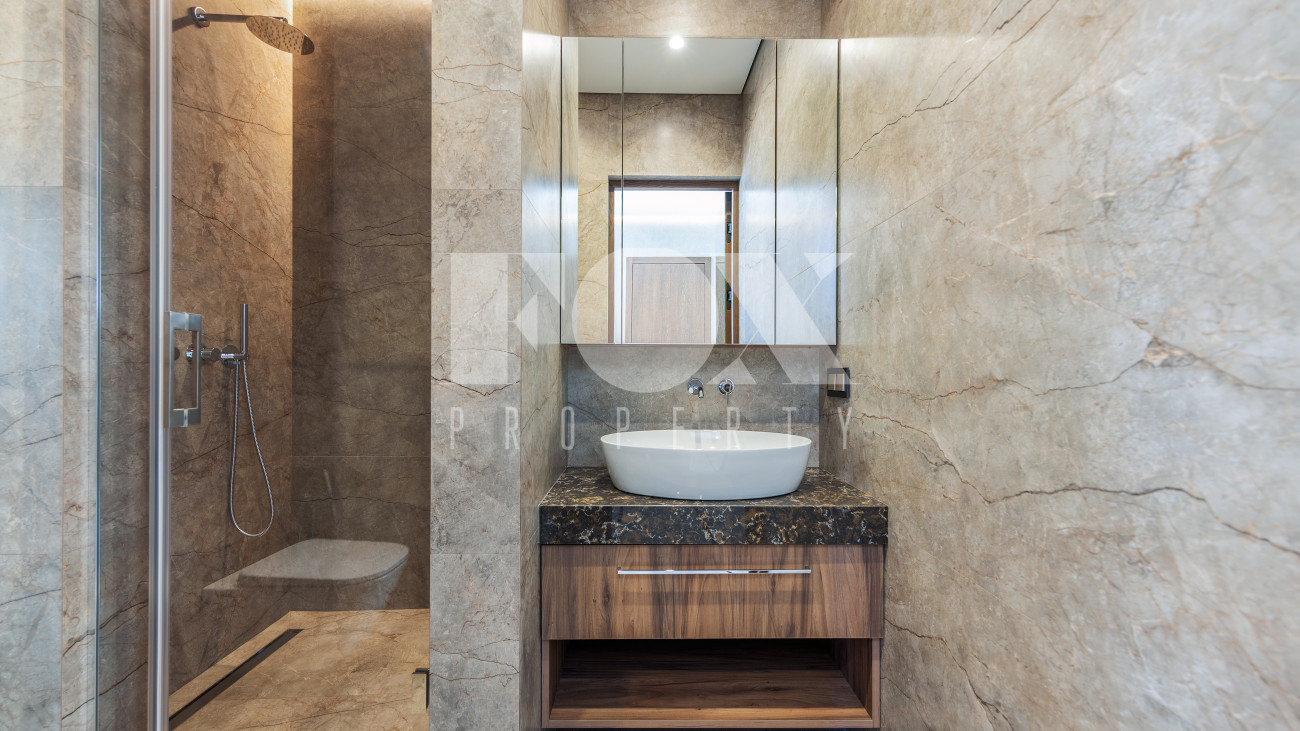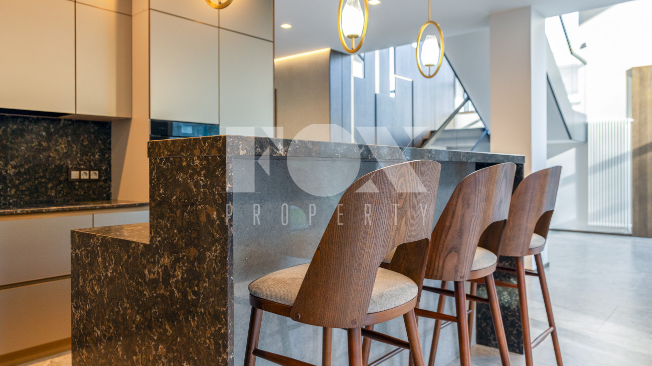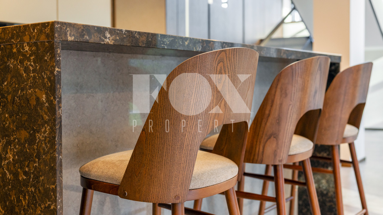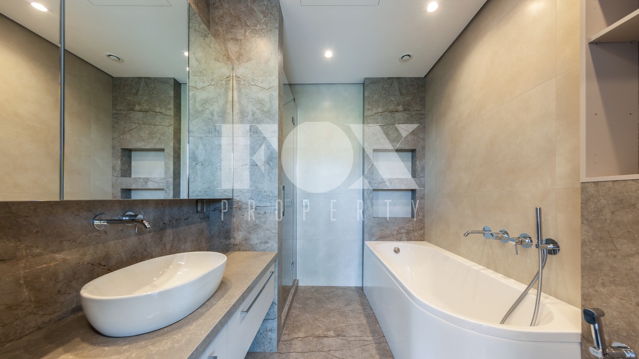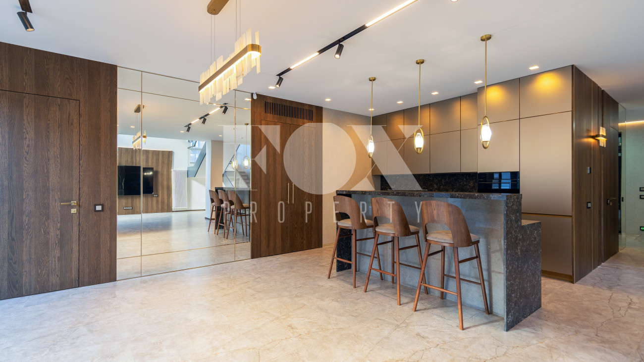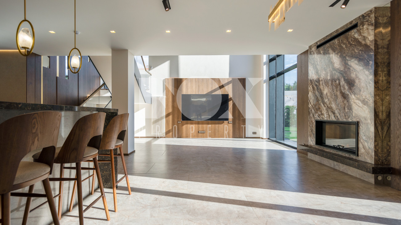 В доме имеется спа-зона, включающая в себя сауну и бассейн 7*4 с противотоком и подсветкой. Бассейн оснащен инновационной системой очистки NECON. Кристально чистая вода без хлора и химических запахов обеспечивает максимальную безопасность для всей семьи, а технология ионов меди и цинка сохраняет её прозрачность годами. Благодаря пролонгирующему эффекту и защите оборудования, бассейн требует минимального обслуживания.